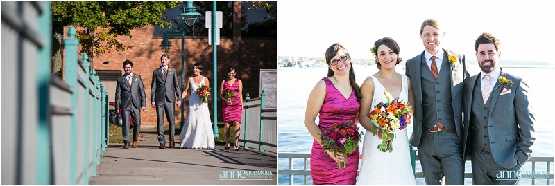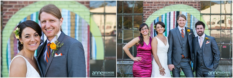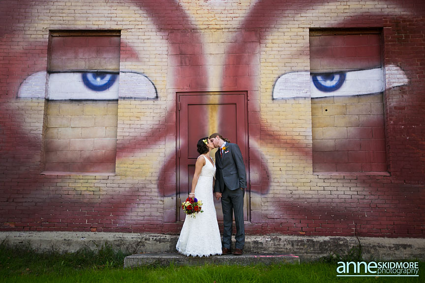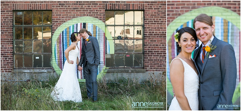 When Katherine contacted me about her wedding day, I was so excited I still had the date available! She shared with me her intimate and unique wedding details in Vermont and hoped I could capture her day as she loved my work! I’m so glad it worked for all of us, as I loved their wedding day! Katherine and Tom had their first look moment at the Hotel Vermont: a new modern, chic, and beautiful hotel right in downtown Burlington. We took a few portraits there and then hopped in our cars to take some fun portraits in downtown Burlington. We headed to Lake Champlain with the beautiful Adirondacks in the distance and a classic pier to walk out on. Near the lakeside, there were beautiful industrial buildings with fun brick textures and a fabulous wooden door for us to work with as our backdrop. Next, we headed to a couple cool murals tucked away on Burlington side streets. Wow, so different and sublime, a photographers dream to shoot at these spots! But wait, they needed to get married! After the mural photos we headed to the Intervale Community Farms for their ceremony. Their closest friends and family were gathered inside the beautiful red barn and watched Katherine’s mother and father walk her down the aisle to Tom. They had a sweet ceremony inside the barn and sealed it with a kiss! Family portraits followed and a fun group photo of everyone as well! Soon it was time to head back to Hotel Vermont for the reception. On our way back we swung by Lake Champlain for a few stunning sunset portraits and, when we arrived at the hotel, we took a couple of portraits in Hotel Vermont’s contemporary designed interior. At the reception there were lovely toasts, sweet first dances and fun dancing with everyone! Thank you so much for having me capture your day Katherine & Tom, I enjoyed every moment of it! It is definitely a favorite from the 2013 season!
