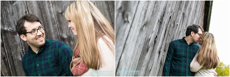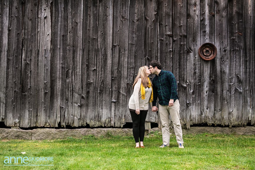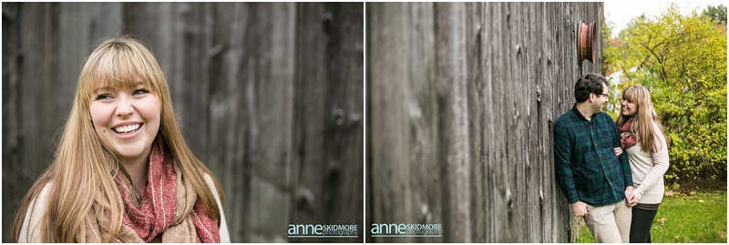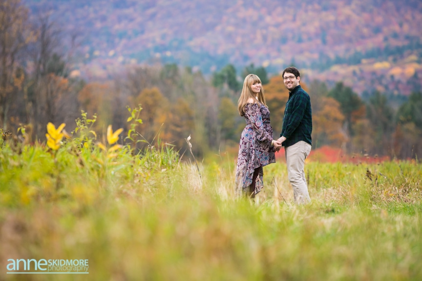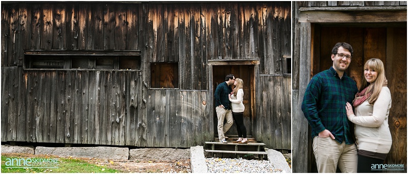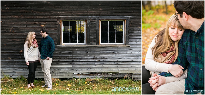 I met Kristen and Adam at the tail end of peak foliage this October. I love this couple! They are absolutely adorable! Kristen has her own Etsy shop where she showcases her jewelry and Adam has a strong passion for photography. With this connection to the arts they chose to get married next year at one of my favorite venues, the Stone Mountain Arts Center! I had a feeling their engagement session was going to be something special, and it was beautiful! We started their shoot at a classic rustic barn in downtown North Conway and also found a beautiful spot there where all the leaves had fallen to the ground. Gorgeous! Next we headed to one of my favorite scenic spots here in North Conway with beautiful fields that have the most stunning views of Whitehorse Ledge, Cathedral Ledge and the Moat Mountain Range. Kristen slipped into a lovely bohemian dress for this location, which added just a touch more of romance to the images. So pretty and fun! We photographed there as the sun was setting on this partly overcast day, and then snapped a few dusk portraits right at the end! Thank you Kristen and Adam! You made it so hard to pick these finals because there were so many beautiful images! Can’t wait for your wedding day at the Stone Mountain Arts Center next year!