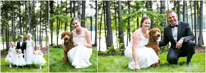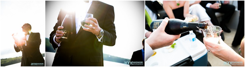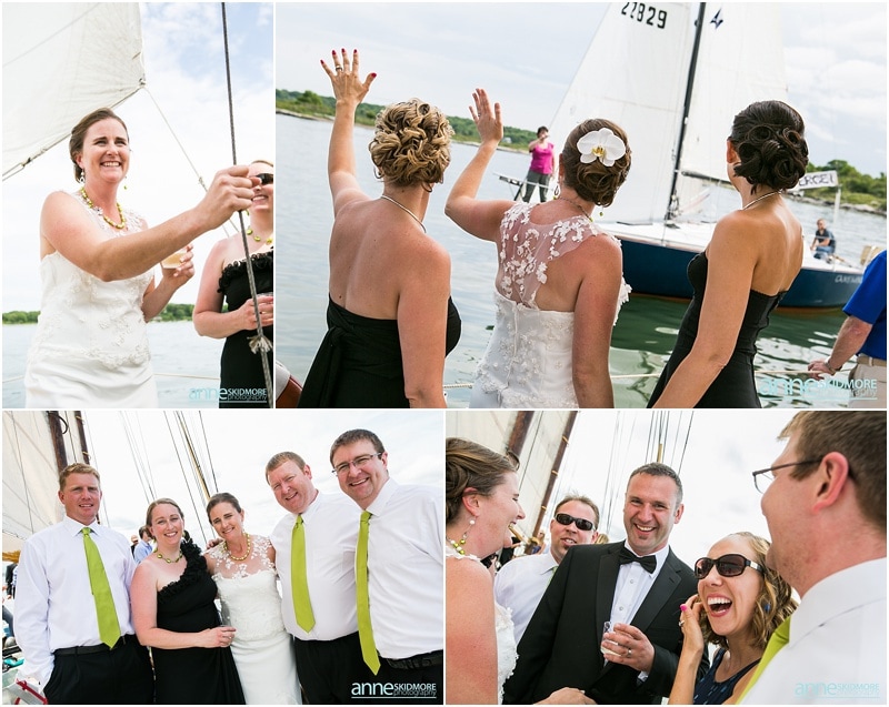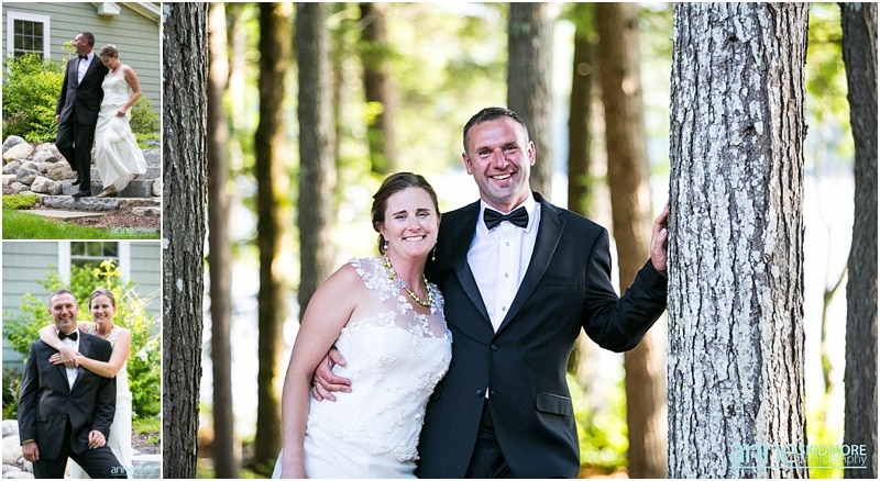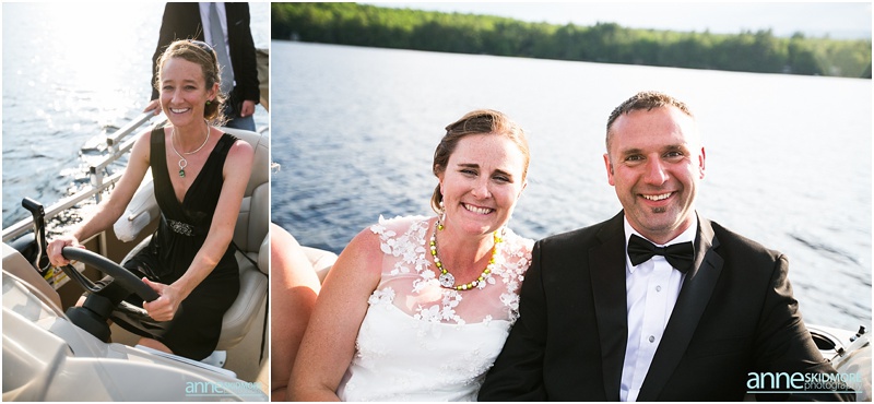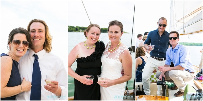 This wedding was such a fun and unique one! Sergei and Shayna wed on June 14th, and their wedding day started in the beautiful city of Portland, Maine. Shayna, her bridesmaids, and her mother got ready at a friends house right in downtown Portland. Shayna’s mother helped her into her wedding dress, and this dress was a special one as Shayna’s mom was the one who made it! Once all the ladies were ready, everyone headed to Portland’s Old Port to the Portland Schooner Company. Forty of Shayna & Sergei’s nearest and dearest all boarded the schooner for a special sail on the “Bagheera”. Once the sails were raised and the boat was sailing, it was time for Shayna and Sergei to wed while surrounded by friends, family, the ocean, a couple of seals, and other fellow boaters. They had a sweet and simple ceremony, sealed it with a kiss and it was time to celebrate with champagne for the rest of the sail. What a gorgeous way to have your wedding ceremony! After the beautiful sailboat ride came to an end, we took a great group photo of everyone on the boat, and then it was time to head back to celebrate with even more friends and family! Where were we off to? Their home in Bridgton, Maine that was still being built right on Woods Pond. Before Shayna & Sergei went to their reception in their “to be” home, they hopped on a pontoon boat for a little ride around Woods Ponds. My oh, my was it pretty. Then it was time to celebrate with friends and family in their home “to be” (that they are building themselves)! What a special and beautiful day you had Shayna & Sergei, and thank you for choosing me to capture it! This is one I will never forget!