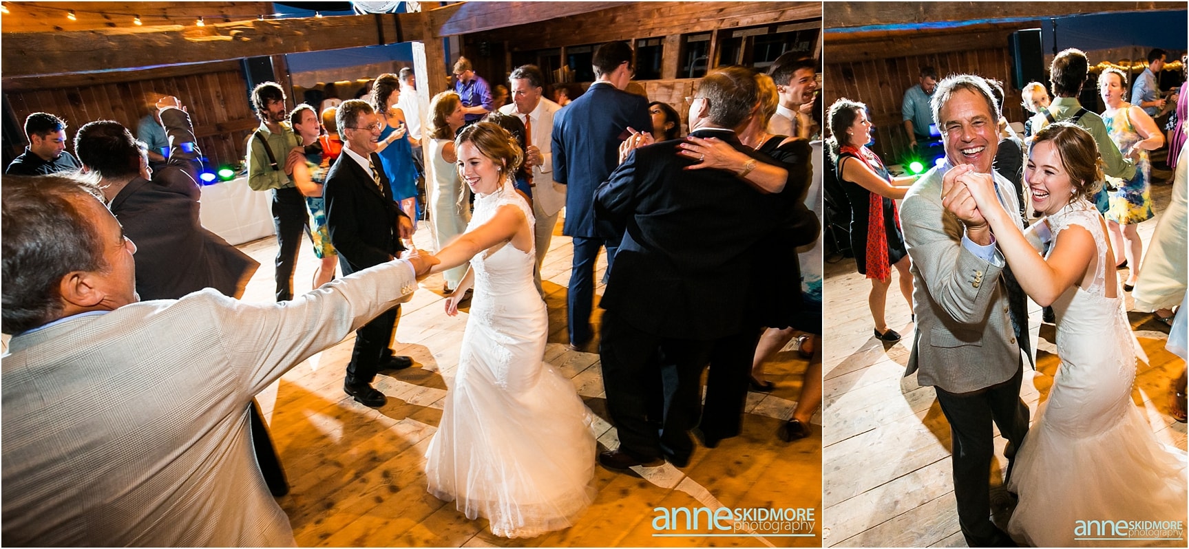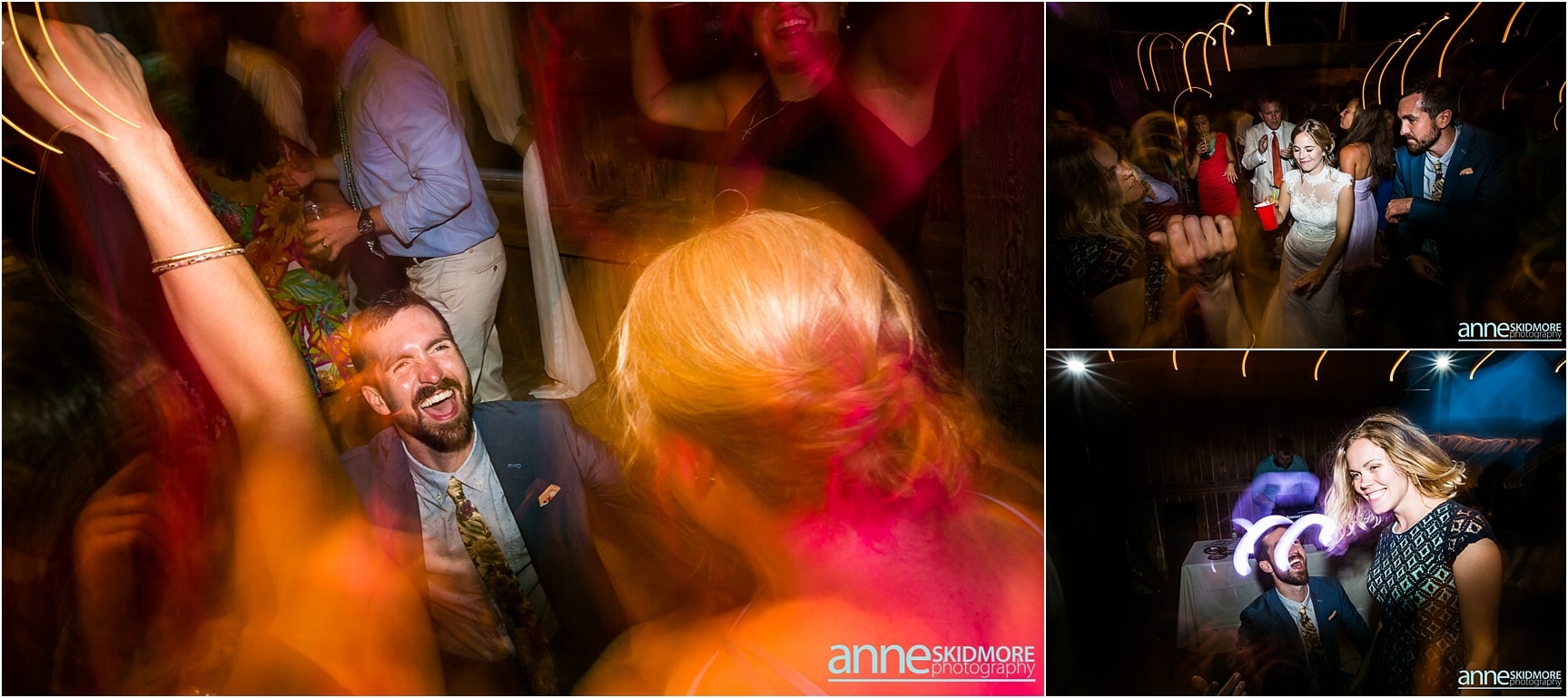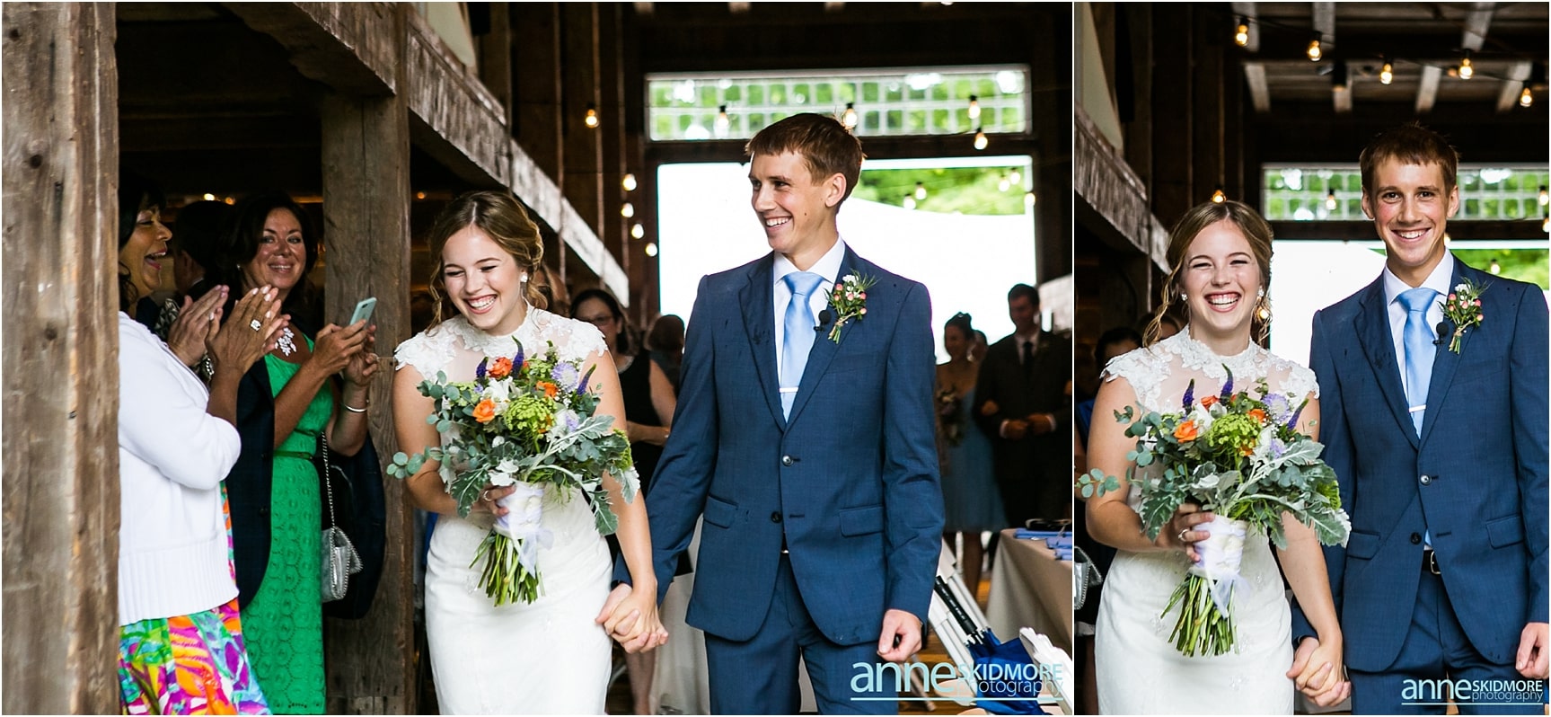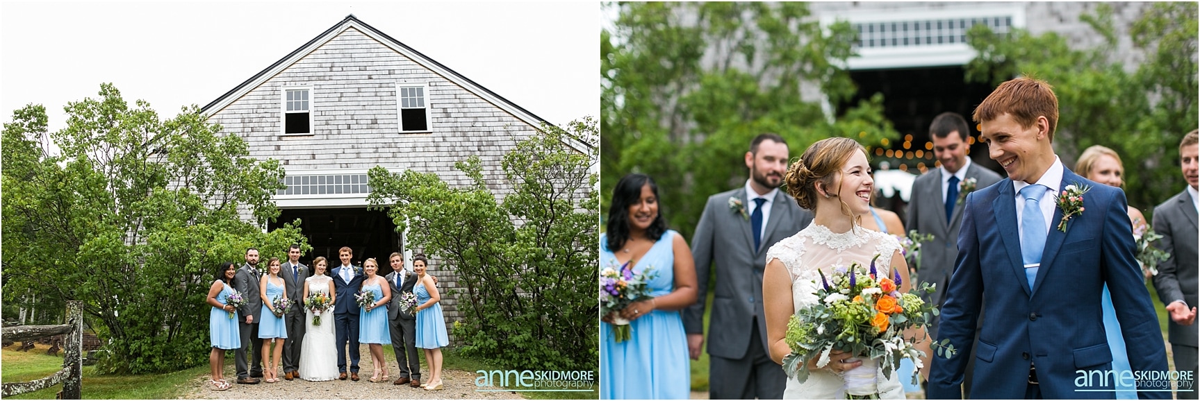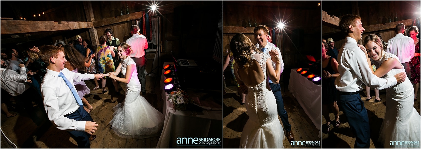 The Barn at Moody Mountain Farm is definitely a highlight of our summer when we get to photograph at this lovely venue.  We love it here!  Tucked into the fields of historic Wolfeboro, we can feel the history that lives with this place and it mixes a rustic barn (classic New Hampshire) wedding atmosphere with so much elegance.  We know Nick and Katrina because, not only are they locals to the Mount Washington Valley, but they are wonderful friends of ours and bring so much character and enthusiasm to our climbing community.  I’ve been chatting with Katrina all summer long at our evening cookouts getting the latest news on the details surrounding the wedding day.  I’ve been excited about this day since they booked last year!  Nick, being the goofy character of the two, brought so much fun and laughter to the day while Katrina was absolutely stunning and helped quite Nick up a bit with her looks.  The humor these two share is on another level.  They are one of those couples that are PERFECT for each other.  We lucked out with the rain holding off until the later evening hours and the misty foggy weather created a very cozy atmosphere.  The ceremony was moved into the barn and their friends and families casually lined the perimeter and cheered as they became husband and wife.  While guests enjoyed the cocktail hour on the back side of the barn, we were able to capture a ton of fun portraits of not only Nick and Katrina, but the bridal party and family as well.  Tuckerman Brewery filled many empty mason cups to the brim as well as some signature drinks.  The toasts were underway and dinner soon followed that in the barn.  Guests were free to roam the barn and the property and watch as the traditional watermelon was passed around outside to be perfectly carved into Nick’s crowning of the groom.  As the rain started to fall in the last evening minutes, Nick, Katrina, Austin (my awesome second photographer) and I all ran out into the rain to capture a few final portraits of the couple standing in the giant entrance to the barn.  We try our best to compensate for some fun portraits even if the sunset decides not to show that day.  There was so much dancing and it was so much fun to capture the party!  There is a tradition in Katrina’s family that at every wedding, they crown the groom with a custom watermelon helmet.  I’m so glad I was still around to document this craziness.  Katrina was even crowned with one too!  This was by far the funniest thing I’ve ever photographed at a wedding thus far.  You two are so lucky to have such fun families!  Keep on being you and we can’t wait to see your marriage and family grow!  You two are the best! xo!