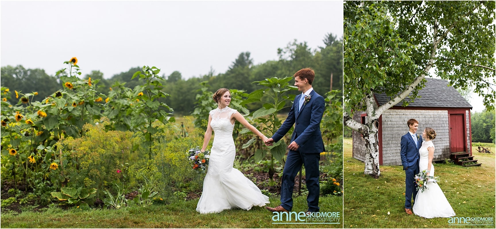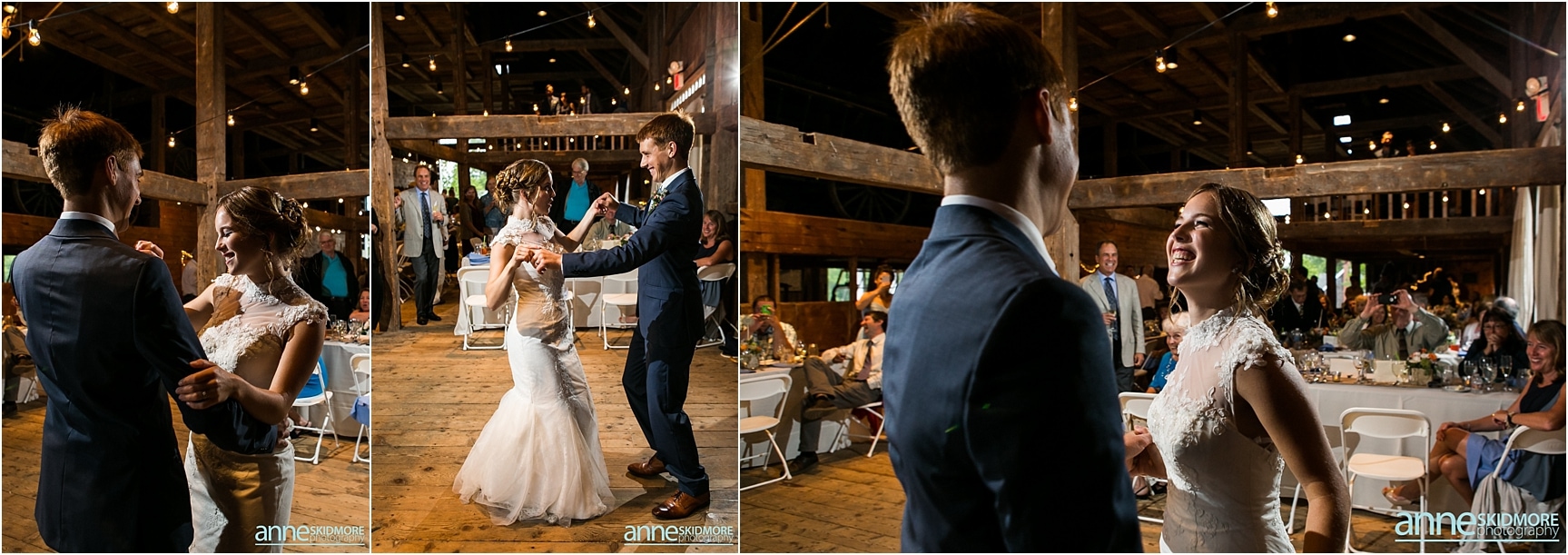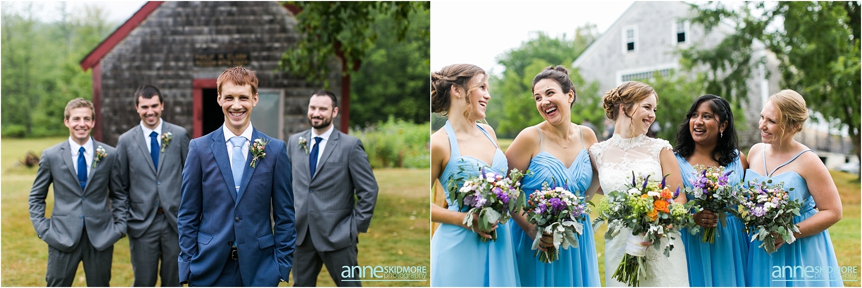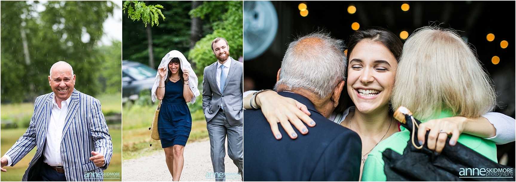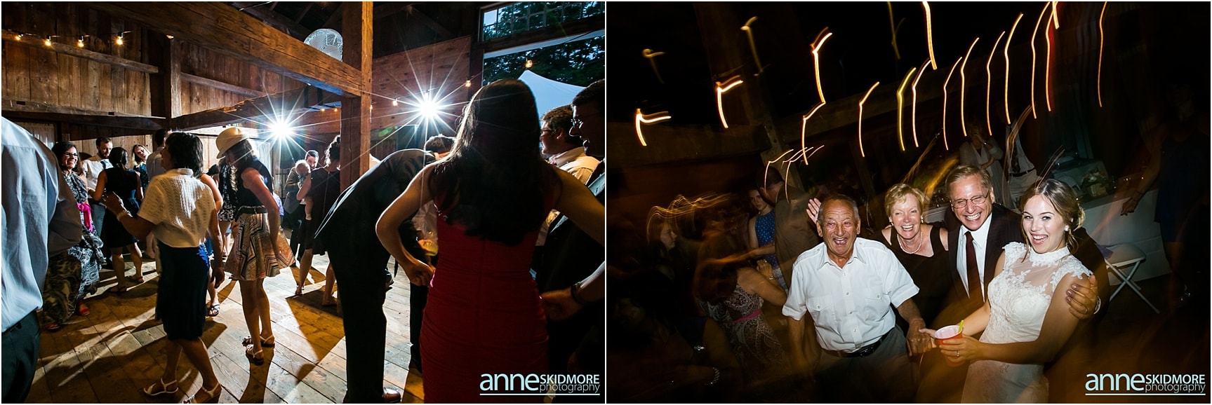 The Barn at Moody Mountain Farm is definitely a highlight of our summer when we get to photograph at this lovely venue.  We love it here!  Tucked into the fields of historic Wolfeboro, we can feel the history that lives with this place and it mixes a rustic barn (classic New Hampshire) wedding atmosphere with so much elegance.  We know Nick and Katrina because, not only are they locals to the Mount Washington Valley, but they are wonderful friends of ours and bring so much character and enthusiasm to our climbing community.  I’ve been chatting with Katrina all summer long at our evening cookouts getting the latest news on the details surrounding the wedding day.  I’ve been excited about this day since they booked last year!  Nick, being the goofy character of the two, brought so much fun and laughter to the day while Katrina was absolutely stunning and helped quite Nick up a bit with her looks.  The humor these two share is on another level.  They are one of those couples that are PERFECT for each other.  We lucked out with the rain holding off until the later evening hours and the misty foggy weather created a very cozy atmosphere.  The ceremony was moved into the barn and their friends and families casually lined the perimeter and cheered as they became husband and wife.  While guests enjoyed the cocktail hour on the back side of the barn, we were able to capture a ton of fun portraits of not only Nick and Katrina, but the bridal party and family as well.  Tuckerman Brewery filled many empty mason cups to the brim as well as some signature drinks.  The toasts were underway and dinner soon followed that in the barn.  Guests were free to roam the barn and the property and watch as the traditional watermelon was passed around outside to be perfectly carved into Nick’s crowning of the groom.  As the rain started to fall in the last evening minutes, Nick, Katrina, Austin (my awesome second photographer) and I all ran out into the rain to capture a few final portraits of the couple standing in the giant entrance to the barn.  We try our best to compensate for some fun portraits even if the sunset decides not to show that day.  There was so much dancing and it was so much fun to capture the party!  There is a tradition in Katrina’s family that at every wedding, they crown the groom with a custom watermelon helmet.  I’m so glad I was still around to document this craziness.  Katrina was even crowned with one too!  This was by far the funniest thing I’ve ever photographed at a wedding thus far.  You two are so lucky to have such fun families!  Keep on being you and we can’t wait to see your marriage and family grow!  You two are the best! xo!