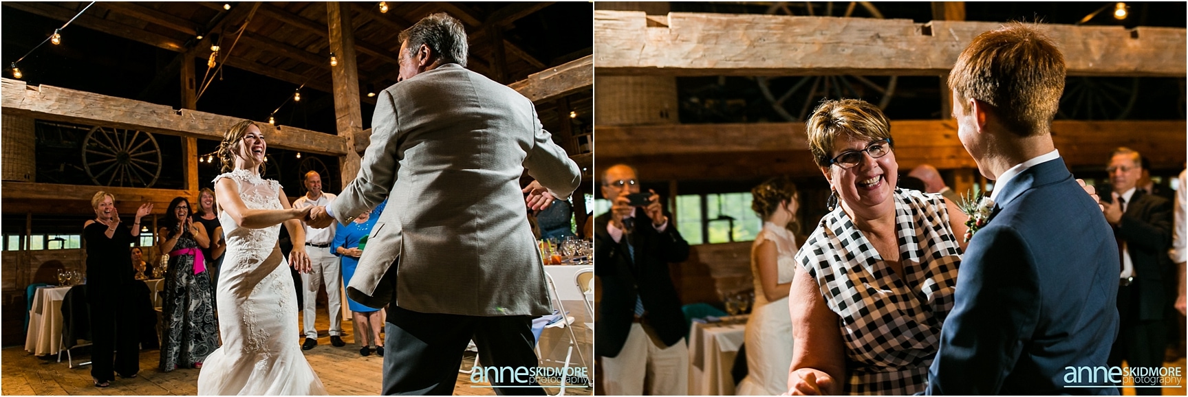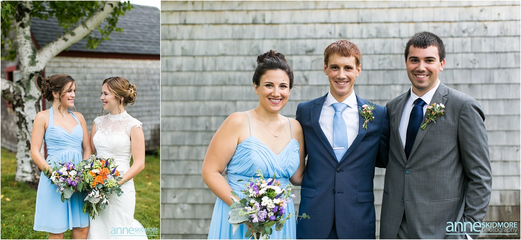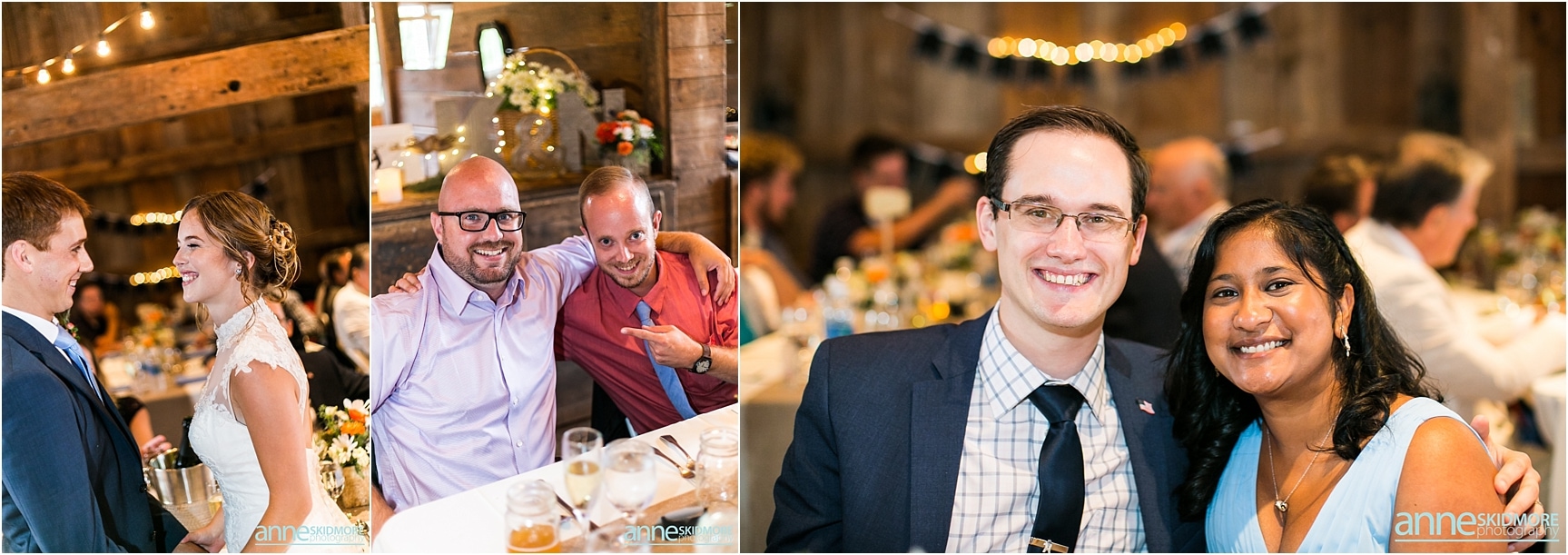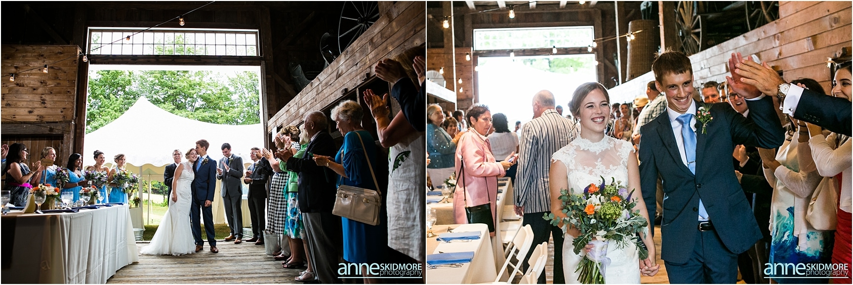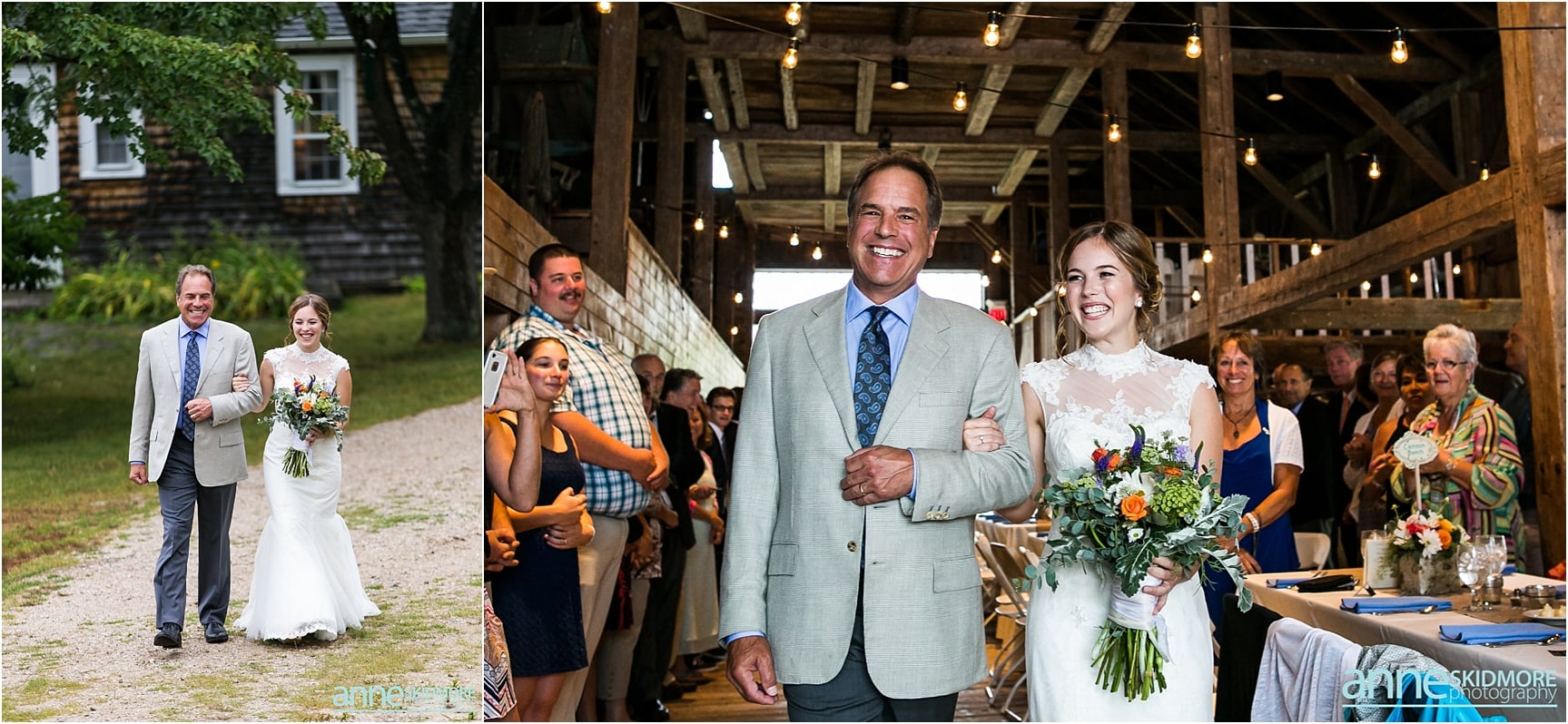 The Barn at Moody Mountain Farm is definitely a highlight of our summer when we get to photograph at this lovely venue.  We love it here!  Tucked into the fields of historic Wolfeboro, we can feel the history that lives with this place and it mixes a rustic barn (classic New Hampshire) wedding atmosphere with so much elegance.  We know Nick and Katrina because, not only are they locals to the Mount Washington Valley, but they are wonderful friends of ours and bring so much character and enthusiasm to our climbing community.  I’ve been chatting with Katrina all summer long at our evening cookouts getting the latest news on the details surrounding the wedding day.  I’ve been excited about this day since they booked last year!  Nick, being the goofy character of the two, brought so much fun and laughter to the day while Katrina was absolutely stunning and helped quite Nick up a bit with her looks.  The humor these two share is on another level.  They are one of those couples that are PERFECT for each other.  We lucked out with the rain holding off until the later evening hours and the misty foggy weather created a very cozy atmosphere.  The ceremony was moved into the barn and their friends and families casually lined the perimeter and cheered as they became husband and wife.  While guests enjoyed the cocktail hour on the back side of the barn, we were able to capture a ton of fun portraits of not only Nick and Katrina, but the bridal party and family as well.  Tuckerman Brewery filled many empty mason cups to the brim as well as some signature drinks.  The toasts were underway and dinner soon followed that in the barn.  Guests were free to roam the barn and the property and watch as the traditional watermelon was passed around outside to be perfectly carved into Nick’s crowning of the groom.  As the rain started to fall in the last evening minutes, Nick, Katrina, Austin (my awesome second photographer) and I all ran out into the rain to capture a few final portraits of the couple standing in the giant entrance to the barn.  We try our best to compensate for some fun portraits even if the sunset decides not to show that day.  There was so much dancing and it was so much fun to capture the party!  There is a tradition in Katrina’s family that at every wedding, they crown the groom with a custom watermelon helmet.  I’m so glad I was still around to document this craziness.  Katrina was even crowned with one too!  This was by far the funniest thing I’ve ever photographed at a wedding thus far.  You two are so lucky to have such fun families!  Keep on being you and we can’t wait to see your marriage and family grow!  You two are the best! xo!