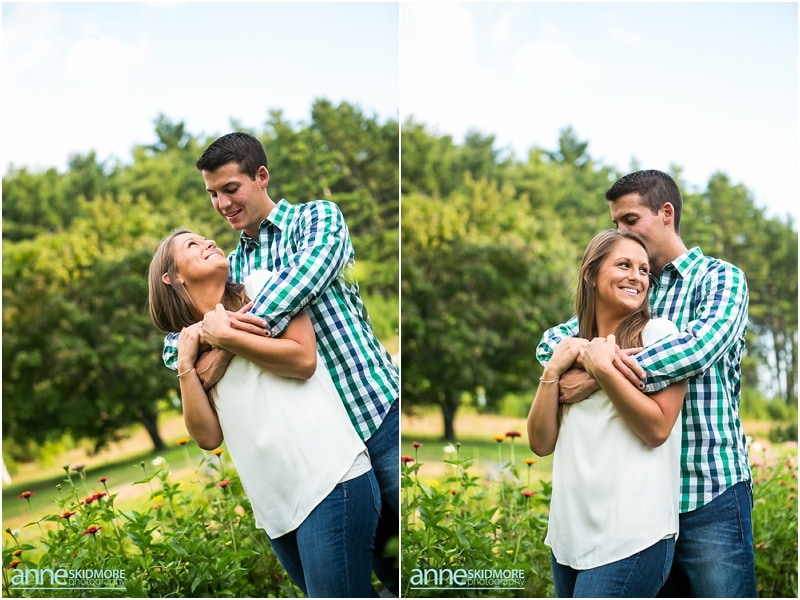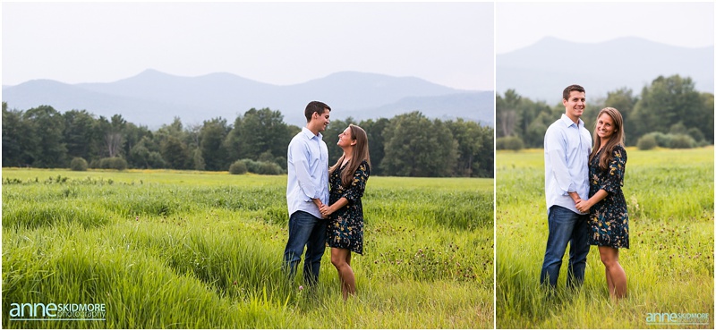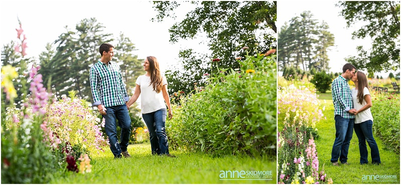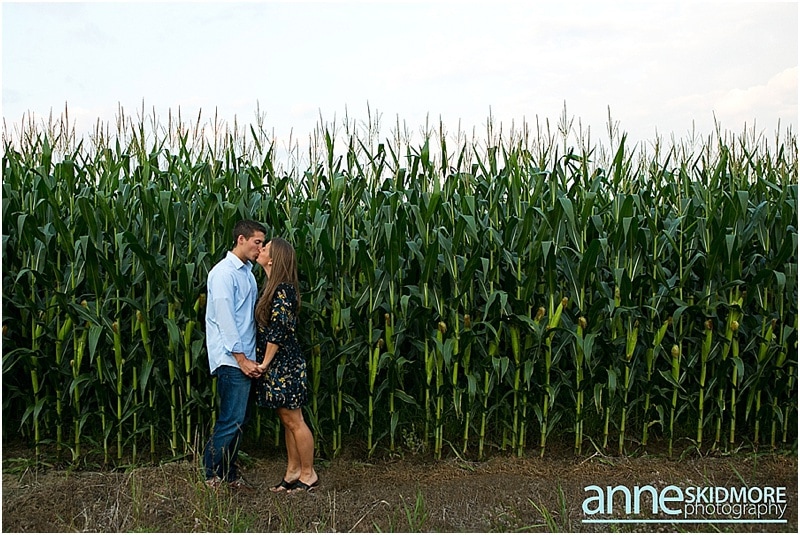 Oh I had such a fun engagement shoot with Mike and Kim! In August we met up on a Monday afternoon at a family owned farm in Fryeburg Maine known as Weston’s Farm. I love this place! They have beautiful gardens, produce, barn and they don’t use any GMO seed either, which I think is pretty special. Oh, and they make killer whoopie pies and pies! Thus, we started their engagement session there, just bopping around all the beautiful spots at the property. Next we headed over to the elegant and classic venue in Fryeburg known as The Hardy Farm. Their beautiful white barn never gets old to use in photos, and it’s the only one of it’s kind in the area! Kim slipped into a cute dress for this portion of the shoot, so cute! And the gardens at The Hardy Farm were just booming too! In addition, Mike & Kim have a passion for the White Mountains as they hike and ski here regularly, so we wanted be sure to get some mountain vistas in their photos too. We headed down the road to some fields, but along the way we stopped at some cornfields that I just couldn’t resist! Oh sweet summer corn, sweet young love! Perfect! We continued on to some fields down the road that are absolutely beautiful with the White Mountains in the distance. We wrapped up the shoot at dusk, and for their drive home I had bought them some whoopie pies and blueberries from Weston’s Farm to help them have energy for the drive home that evening. Yum! Congrats Mike & Kim! I cannot wait for you wedding next year at the Mount Washington Resort!