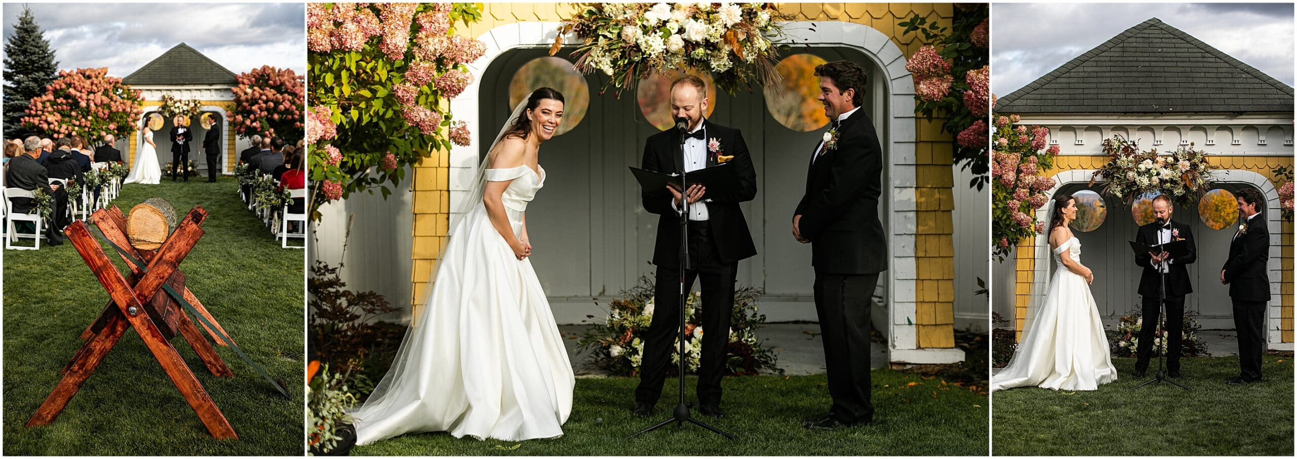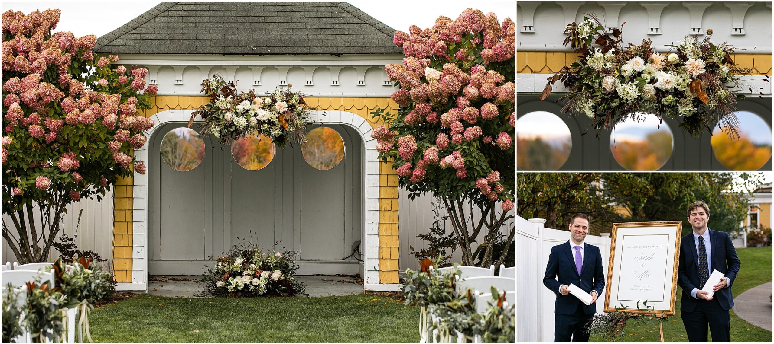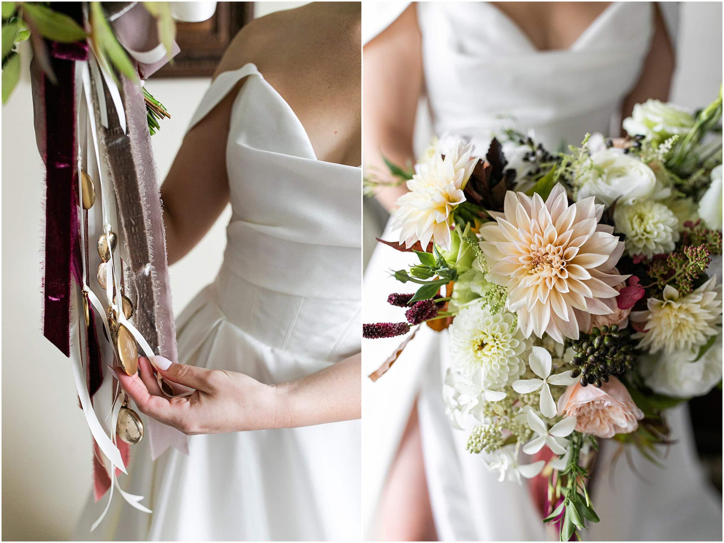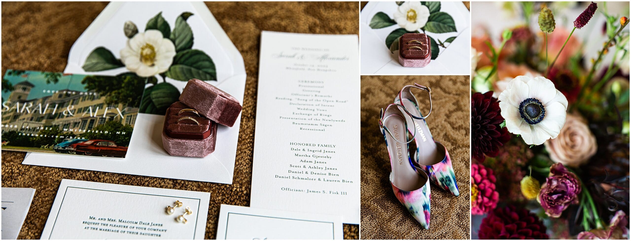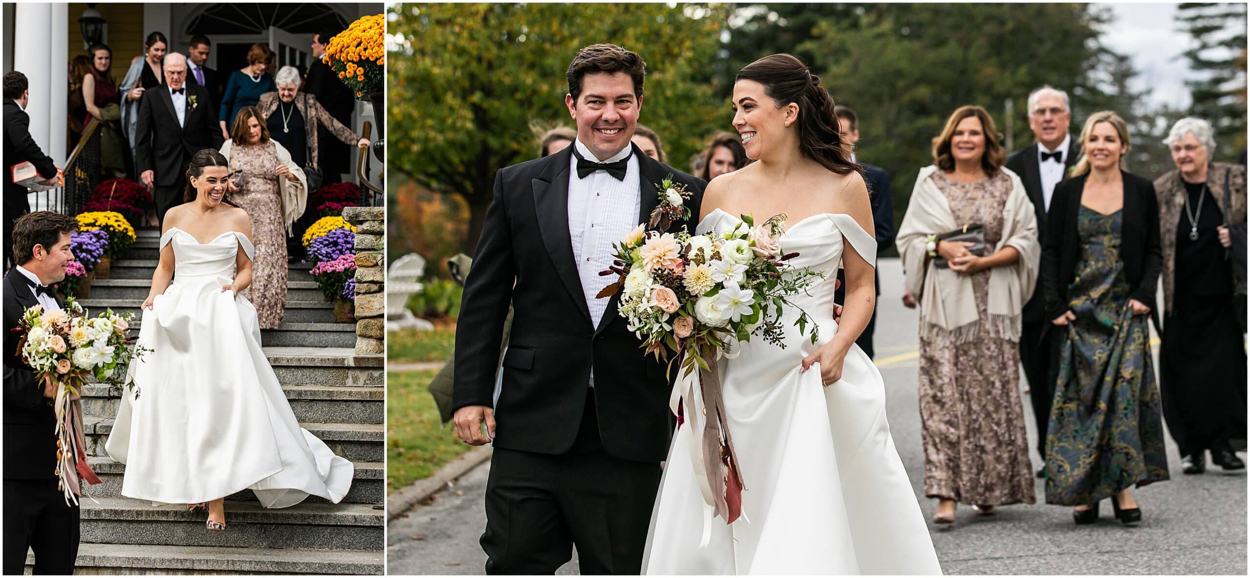 We just love the Mountain View Grand so much- especially during foliage season here in New England. With vast views of the White Mountains, on a clear day we can see much of the presidential range as well as Mount Washington. With the most beautiful ballroom, this venue is just top notch. Sarah and Alex expressed how much they wanted their wedding to feel unique to them. They opted to not have a bridal party and invited their immediate families to walk down the aisle instead. They held a German log cutting unity ceremony. Alex even suprised Sarah by having her bouquet draped with antique lockets with pictures of their loved ones. It was really such a special day and I feel so honored to have photographed it! Take a peek below at this beautiful Mountain View Grand Wedding!