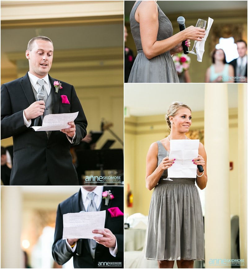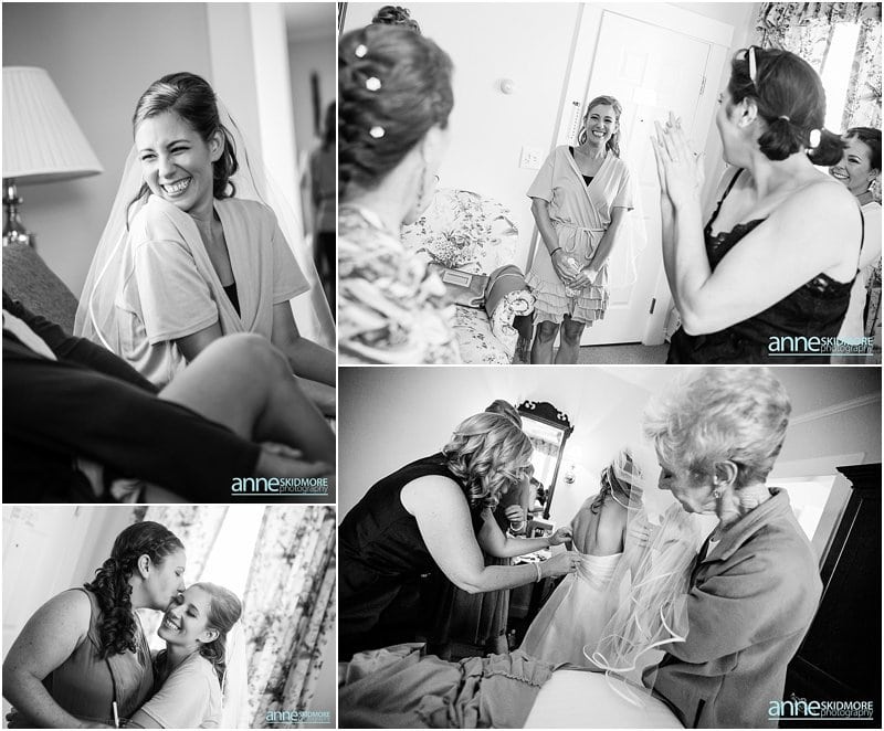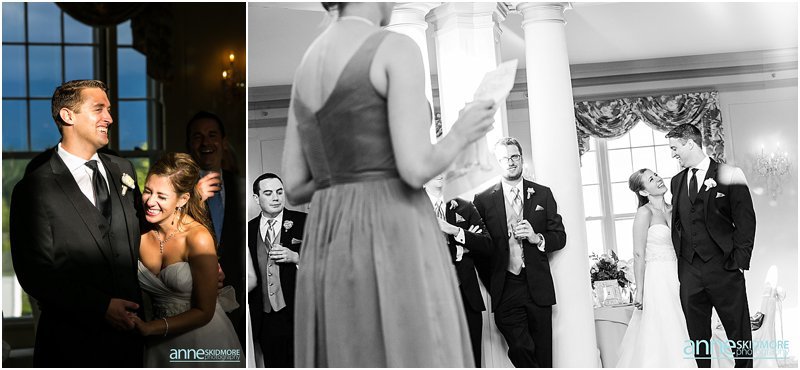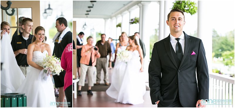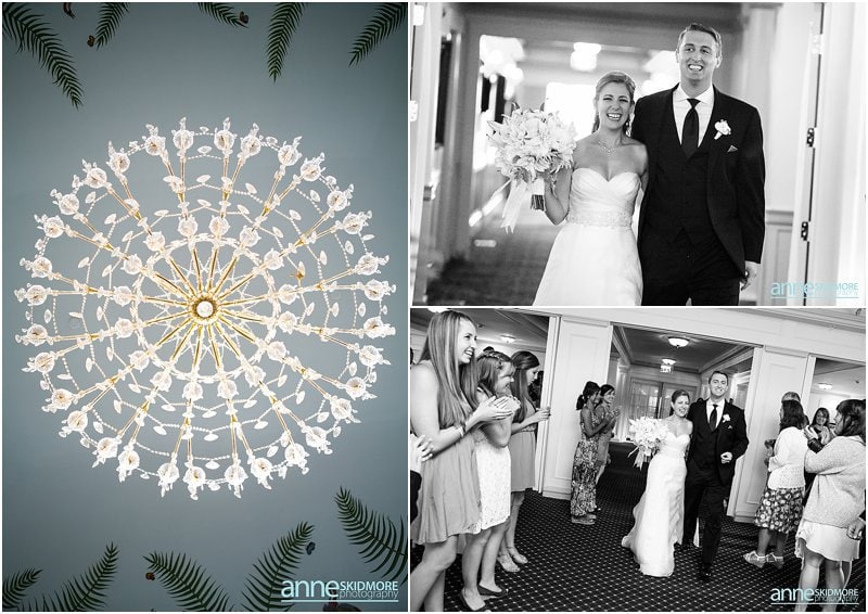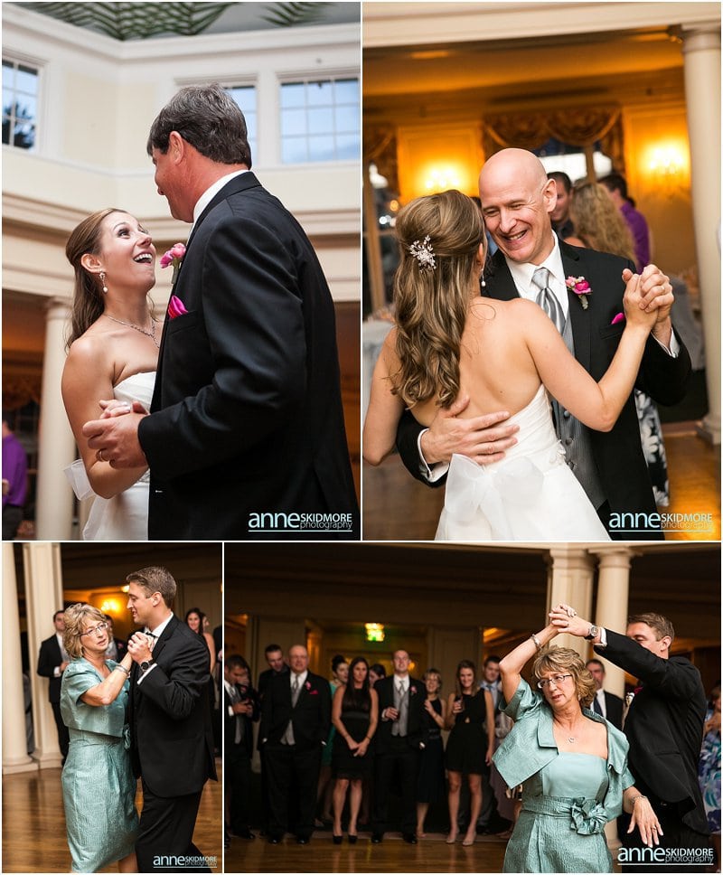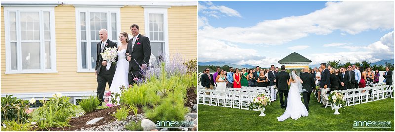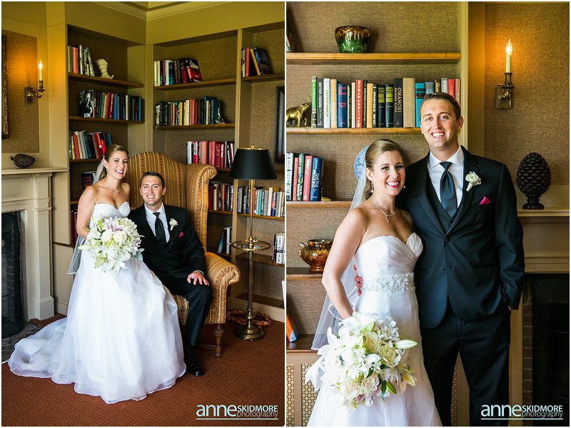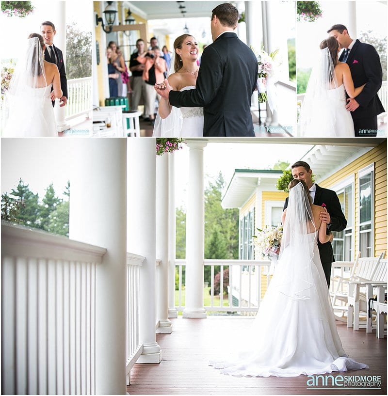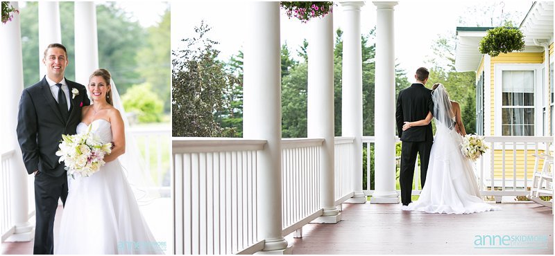 There are a few things I love about the Mountain View Grand Resort & Spa. To begin, the hotel and the grounds are immaculate and simply stunning. Secondly, the view of the White Mountains is breathtaking; it never gets old! Finally, the hotel is intimate, unique and historic without feeling overwhelmingly large in size. Truly a New Hampshire gem! Amy and Jefferson wed there on August 3rd, 2013, and were the classic bride and groom. Jefferson looked dashing in his modern tux, and Amy glowed in her sweetheart neckline wedding gown. The timeless flower arrangements were designed by the talented Emily Herzig. A few small rain showers appeared seconds before their first look moment, so they opted to have the first look on the front porch with a few guests getting a peek! Miraculously, the rain stopped and the dramatic skies and mountains became an incredible backdrop for the two of them. For portraits, we wandered the property for a bit, and a few of them took place in the library room, since Amy has such a huge passion for reading! So fun! Their ceremony was held amongst the blooming gardens where Amy’s father and step father escorted her to Jefferson. They had a unique rose ceremony for their mothers as they gave each a rose to honor them. They sealed their vows with a kiss and we were off to do family and bridal party portraits. It was then time for their formal announcement into the grand Crystal Ballroom! They danced their first dance as husband and wife, and wonderfully hilarious toasts followed. At dusk we slipped outside to take a few final portraits- the sky was just glowing! Bella! The band, Rare Form, kept things rocking all night long. What an incredible day it was! Thank you Amy & Jefferson, it was a pleasure being apart of it!
