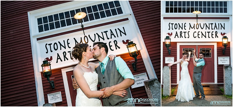 Kaitlyn and Justin had family and friends come from all over the world for their wedding day on June 22nd, 2013 at the Stone Mountain Arts Center. Kaitlyn’s family came from Ohio and Justin’s family flew in from Australia, London, Canada and more! This couple chose the Stone Mountain Arts Center for their wedding day for a few reasons. First, they already had a strong love for the White Mountain region. Second, for it’s rustic cozy feel yet also has a modern touch to it. And last but not least, the amazing staff that helps run the day so smoothly and their delicious food! The skies were on and off with showers (and sometimes downpours!) but somehow it worked with all the portraits! Phew! These two loved to have fun, be silly, and also be really sweet! The two barns at the Stone Mountain Arts Center each have their own sweet charm for the ceremony, cocktail hour, dinner and of course dancing! The evening was filled with dancing, toasts, delicious food, laughter and of course lots of love. Congratulations Justin & Kaitlyn, I loved capturing you beautiful wedding!