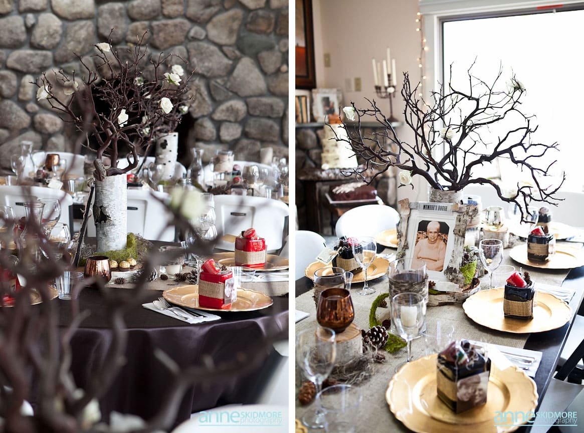It had been raining for about 5 days prior to Crystal & Spencer’s wedding day, so it had to be sunny, right? Right! The sky cleared for May 5th, 2012 and allowed for the beautiful outdoor ceremony they have hoped for at their home in the Jackson, New Hampshire area. The view was spectacular, and their home has the most incredible birch tree forest! They hung twinkle lights from the tree’s and Dutch Bloemen Winkel had beautiful flowers sprinkled all over the property, and Crystal’s bouquet was incredible! So many little details were thought about, and everything just glowed. Crystal’s dress was an authentic vintage find and she made her hair piece! She is a hair and makeup artist, so she took care of those details herself. Additionally, Spencer designed her wedding band, which Crystal never saw until they exchanged their vows, and it was stunning. One of the most precious moments was when Crystal’s little niece Gemma broke into tears seconds before it was time for her to walk down the aisle. Crystal scooped her up with her arms, and just filled her with loved and asked if she wanted to walk down with her. A couple moments later though Gemma was able to do it all on her own! So sweet! They cleared out their open concept home to host the reception and dinner, so unique! To top off the evening they sung a first song together (instead of a first dance) and lovely toasts were made by friends and family. Congratulations Crystal & Spencer! Such a special day for a very special couple!