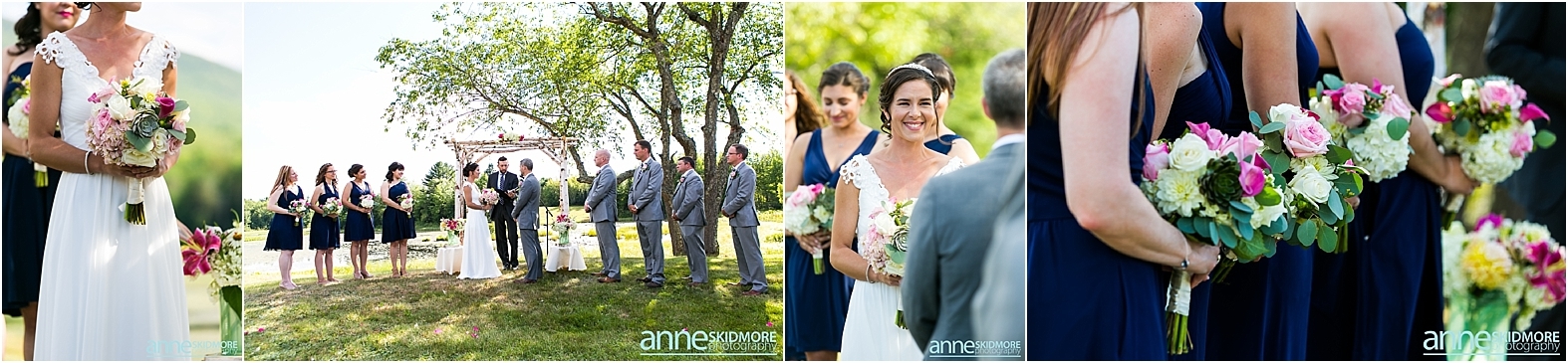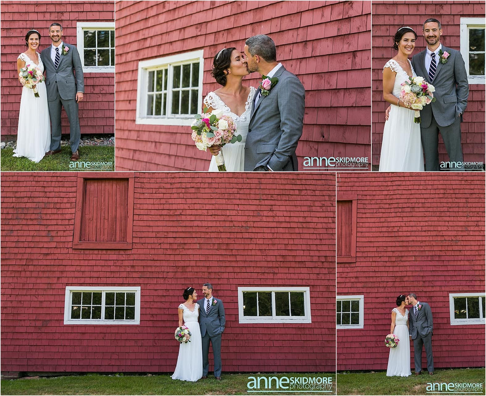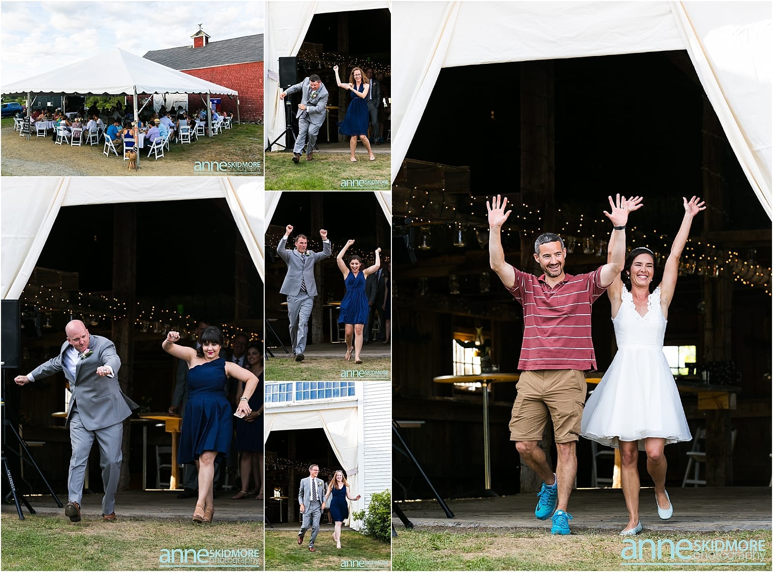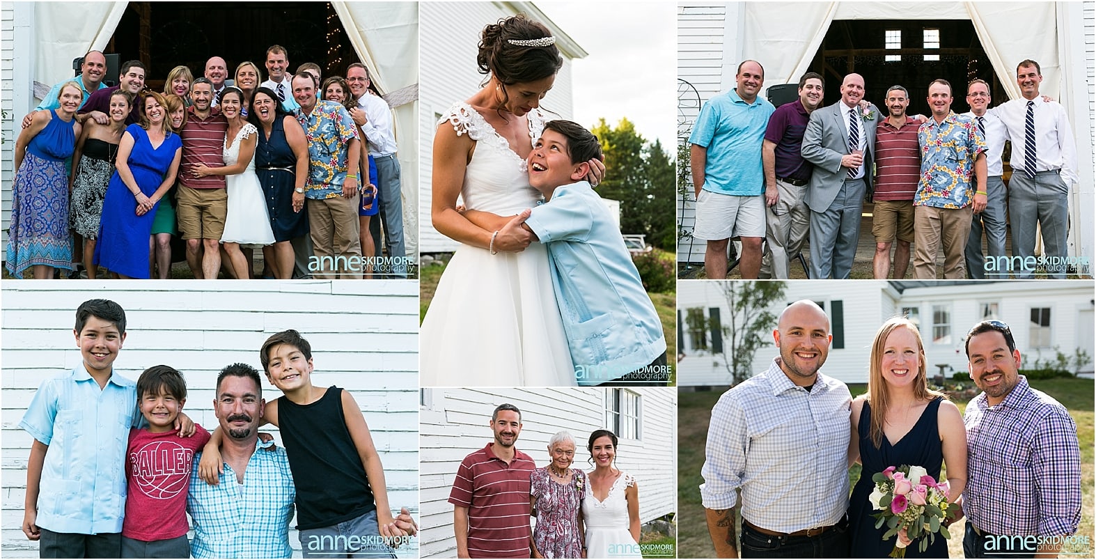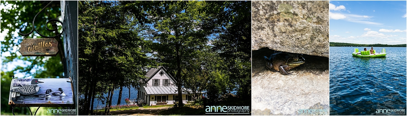 We love this wedding! It was a true family farm barn wedding in Maine! Jamie’s grandmother has an absolutely charming farm in New Vineyard, Maine and this was the perfect and very personal place for Kimberly and Jamie to have their special day. In addition to the beautiful farm, Jamie’s folks live in a stunning lake house just down the road. Jamie got ready at his parents lake house while Kimberly and her ladies got ready at a rented lake house just a little further down. We loved Kimberly’s stunning Michal Motil dress, which was a two piece top and skirt! The best part? She started in an elegant long skirt to start the day, and then later changed into an adorable short skirt for dinner and dancing! These two opted for a first look moment so they could spend lots of time with friends and family after their ceremony. Jamie waited for Kimberly on the dock of his parents lake house, and their reaction to seeing each other for the first time is one of the most expressive and amazing we’ve ever captured! After their first look we took portraits at the lake house and also back at the family farm! I mean we had the best of both worlds! Before we knew it, it was time for these two love birds to get married. They wed across the street from the family farm, right by the family pond. Yes, they even had a family pond, so adorable! After the ceremony everyone walked back to the farm for cocktail hour in the barn. Dinner was under the tent with warm, sweet and funny toasts filling the air. After dinner we scooted to the fields to take portraits under the most incredible sunset we’ve seen all year! It was on FIRE! When we returned everyone was back in the barn dancing the night away. What a totally awesome day! Congrats Jamie & Kimberly, we loved capturing your beautifully rustic chic Maine family farm and barn wedding!