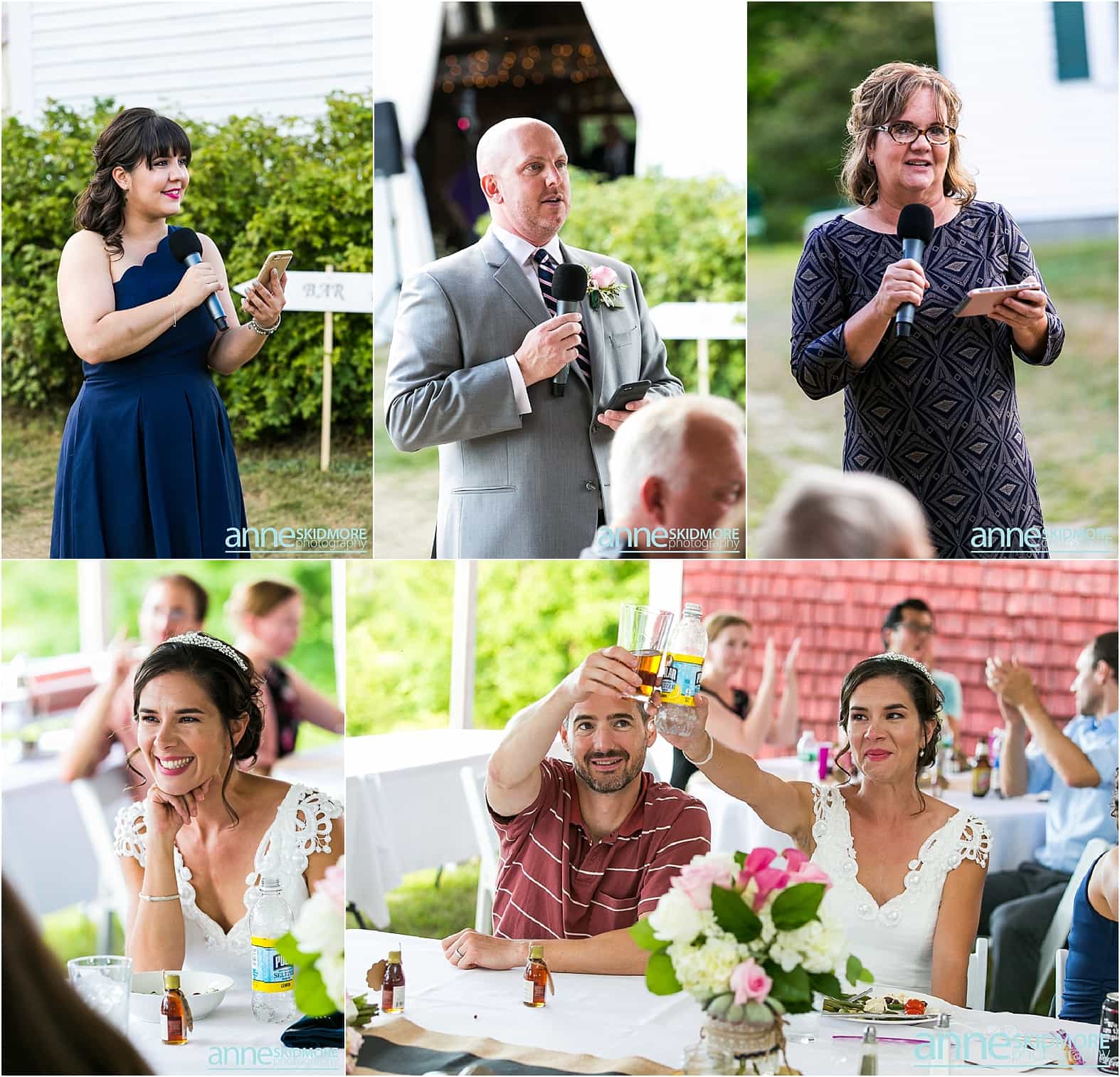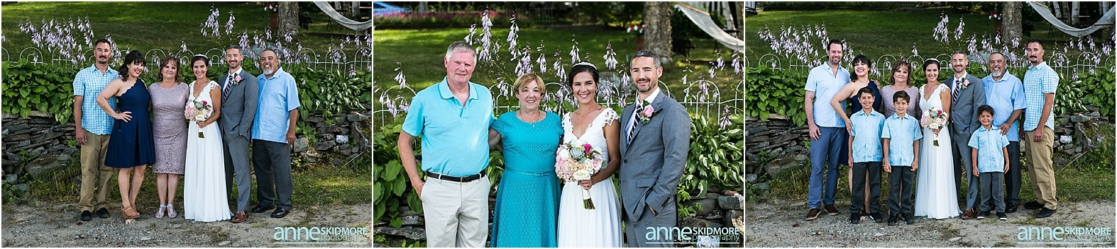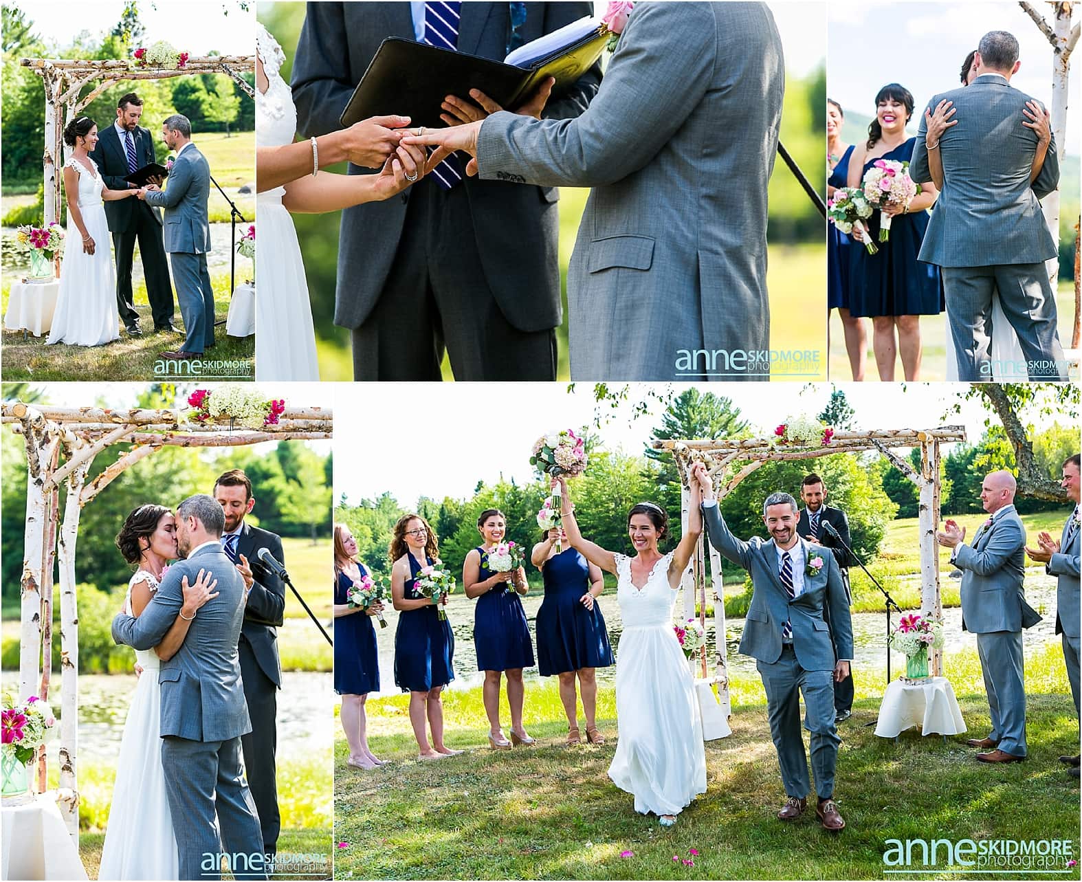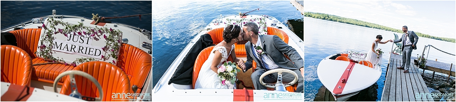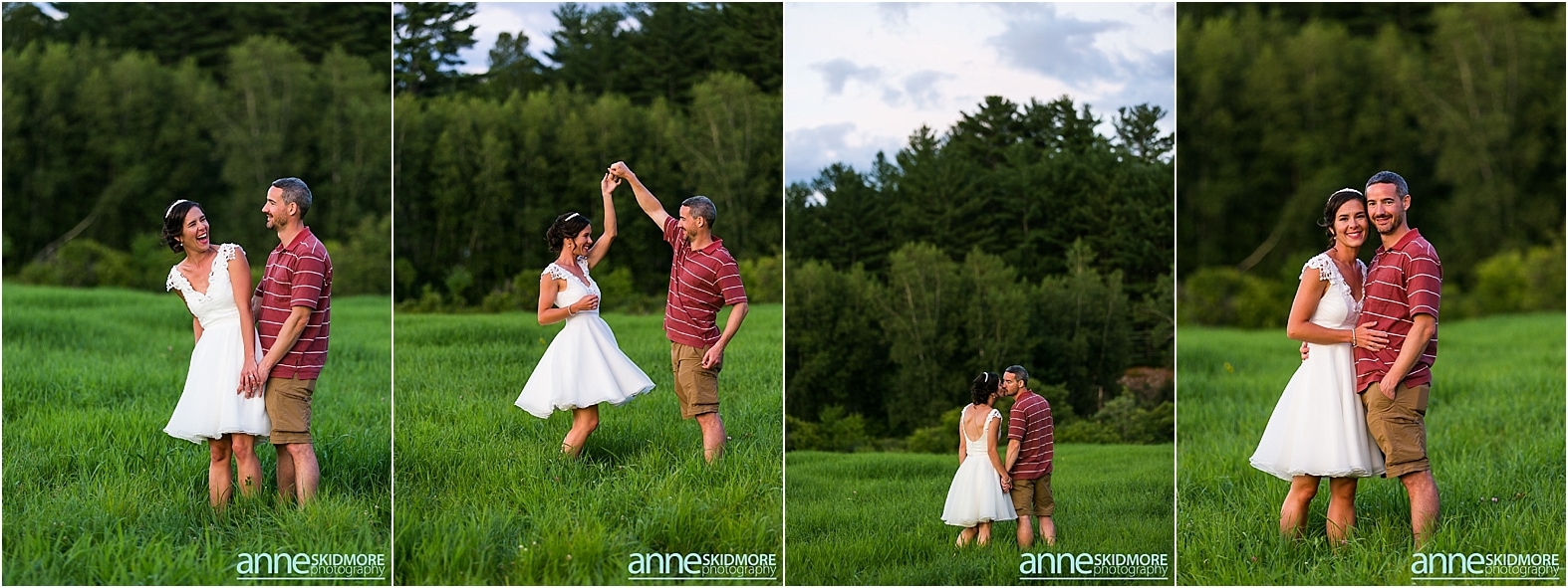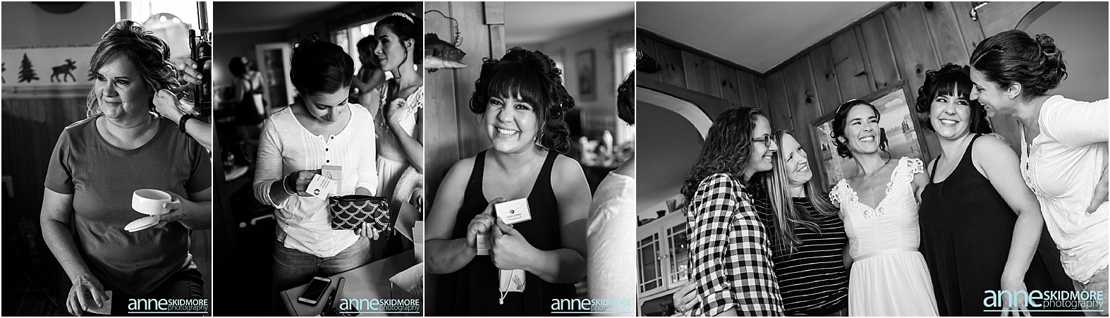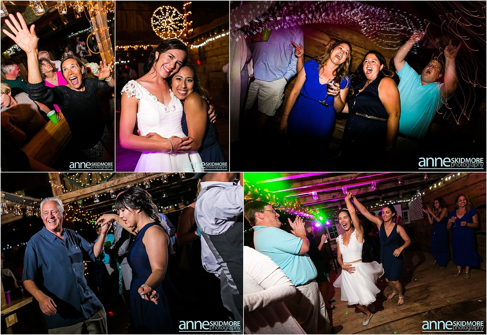 We love this wedding! It was a true family farm barn wedding in Maine! Jamie’s grandmother has an absolutely charming farm in New Vineyard, Maine and this was the perfect and very personal place for Kimberly and Jamie to have their special day. In addition to the beautiful farm, Jamie’s folks live in a stunning lake house just down the road. Jamie got ready at his parents lake house while Kimberly and her ladies got ready at a rented lake house just a little further down. We loved Kimberly’s stunning Michal Motil dress, which was a two piece top and skirt! The best part? She started in an elegant long skirt to start the day, and then later changed into an adorable short skirt for dinner and dancing! These two opted for a first look moment so they could spend lots of time with friends and family after their ceremony. Jamie waited for Kimberly on the dock of his parents lake house, and their reaction to seeing each other for the first time is one of the most expressive and amazing we’ve ever captured! After their first look we took portraits at the lake house and also back at the family farm! I mean we had the best of both worlds! Before we knew it, it was time for these two love birds to get married. They wed across the street from the family farm, right by the family pond. Yes, they even had a family pond, so adorable! After the ceremony everyone walked back to the farm for cocktail hour in the barn. Dinner was under the tent with warm, sweet and funny toasts filling the air. After dinner we scooted to the fields to take portraits under the most incredible sunset we’ve seen all year! It was on FIRE! When we returned everyone was back in the barn dancing the night away. What a totally awesome day! Congrats Jamie & Kimberly, we loved capturing your beautifully rustic chic Maine family farm and barn wedding!