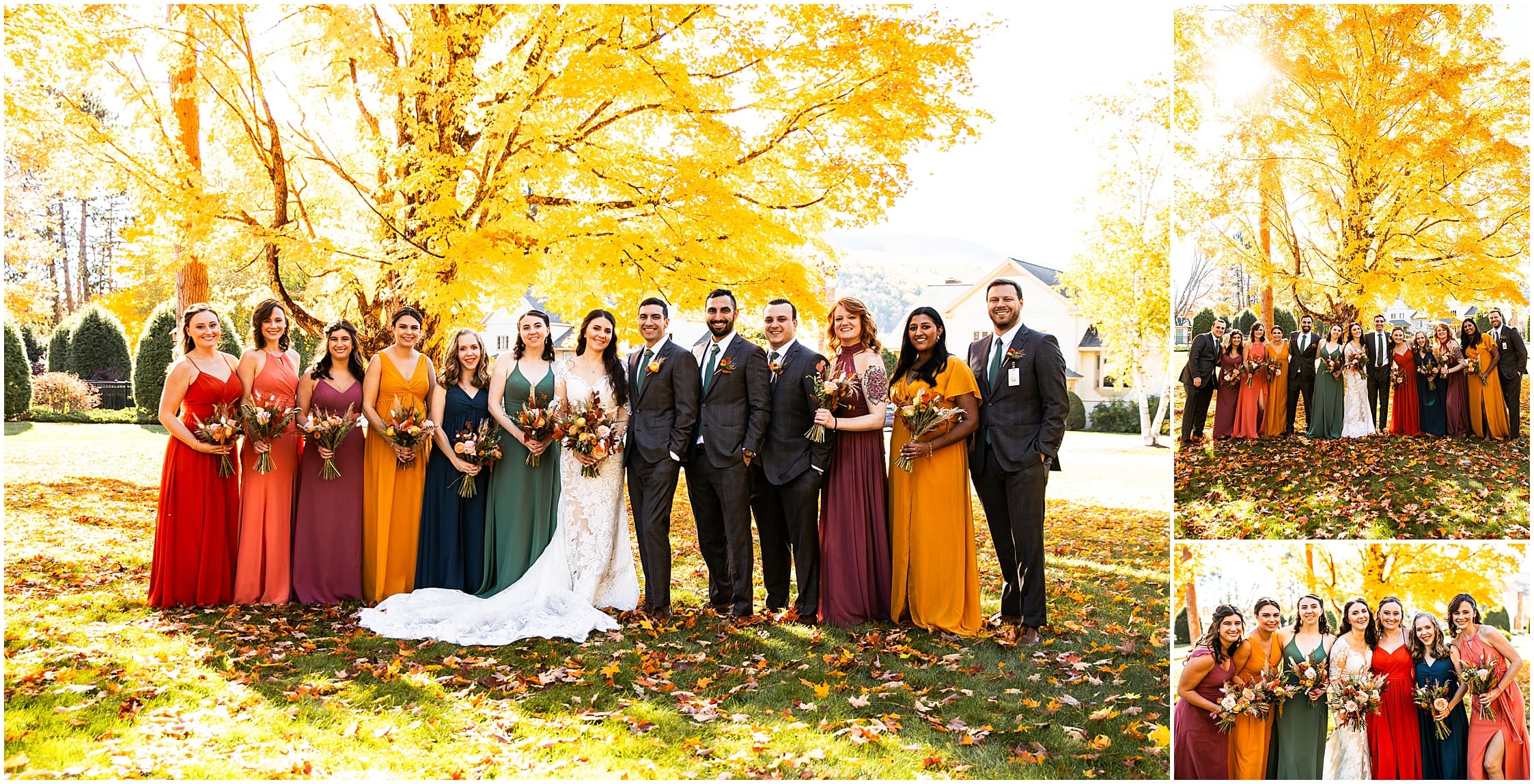 Val and Hartaj had the most beautiful fall foliage day at the Wentworth Inn Resort in the White Moutains of Jackson, NH. We have yet to photograph a wedding with so much yellow in the leaves and it made for the most magical backdrop for many of their portraits. These two are SO in love and it shows. Their first look had them both in tears and their family and friends genuinely love them both so much. We will always be honored to photograph couples like these two who are so in the moment on their wedding day. Also, we can’t wait for our fall foliage weddings this year!