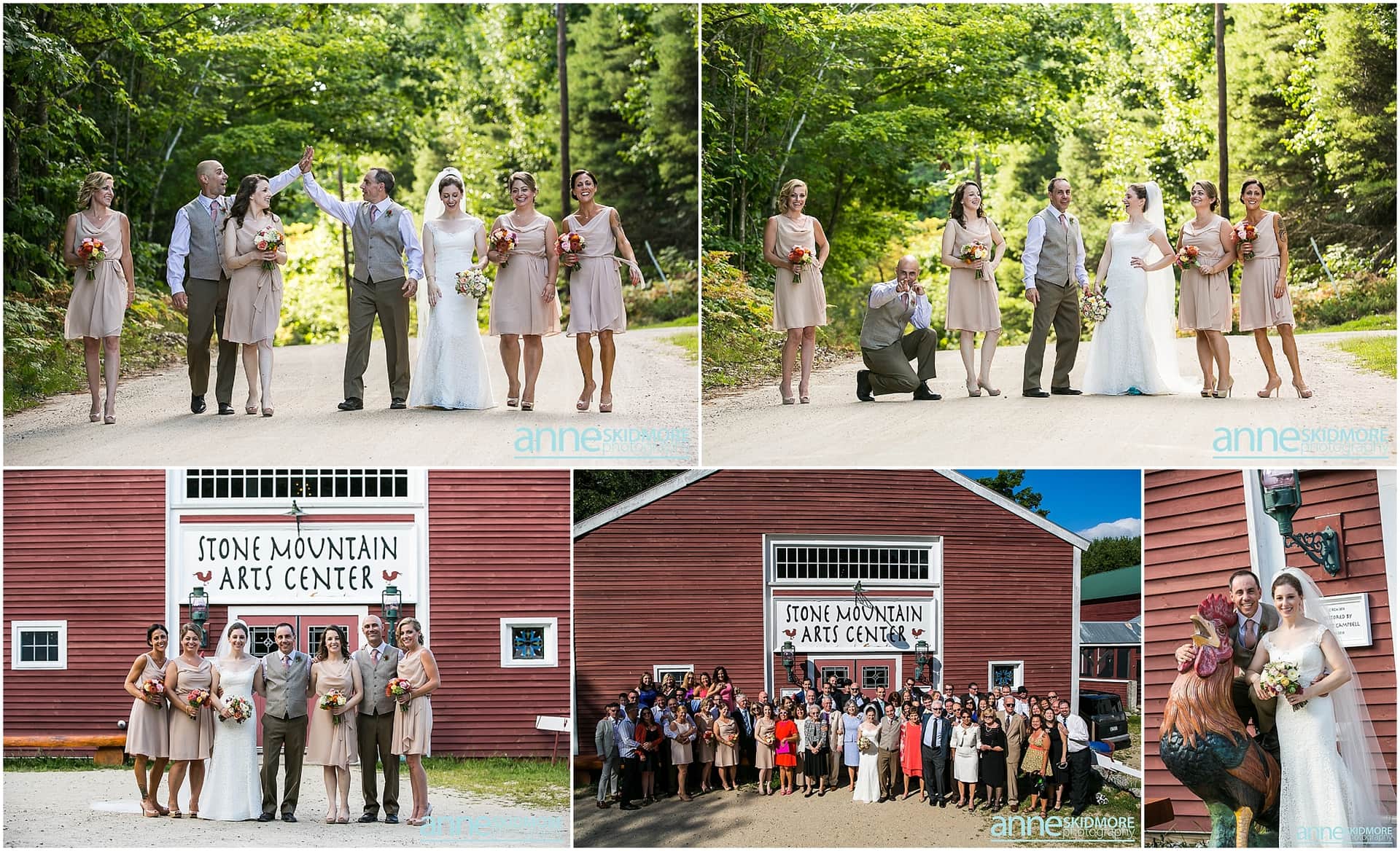 Combine the Stone Mountain Arts Center, Moonset Farm Florals, and a wonderful climbing couple and what do you get? An absolutely beautiful wedding at one of our favorite places! We’re looking back at John and Janice’s beautiful summer wedding and loving all the vibrant colors as spring is just starting to start here. These two love birds decided to wed on a beautiful August day and have all their friends and family experience the warmth, beauty and unique character of the Stone Mountain Arts Center. This place screams Maine with their amazing post and beam structure and being nestled right in the outskirts of the White Mountains. Janice got ready at the adorable Snowvillage Inn just down the road while John put on his suit at the SMAC barn. These two opted for a first look moment to ease their nerves and be able to bop around to a bunch of different spots for their portraits. They also wanted to be able to spend their cocktail hour with their family and guests after the ceremony, so doing the first look and portraits prior helped a lot with that! They wed in the big SMAC barn and the evening was filled with a fun cocktail hour, tasty homemade dinner, dancing, sunset portraits and to top it off, a sparkler exit! Wow! What a day! We loved working with this wonderfully awesome couple and at the same time we made new friends! Such a win win for us! Congrats again you two!