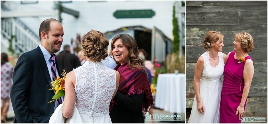 Amy and Jon were married on a cool, crisp fall afternoon at the Christmas Farm Inn in Jackson, New Hampshire on October 11, 2014. I have been in contact with Amy regarding the details of her wedding day for almost a year. One of the first things she shared with me was how she really wanted to re-design her mother’s wedding dress but didn’t know if it would work. It was a success! One of my favorite dresses thus far this season. With her family being friends of my family, this wedding was special to me as I’ve known some of them since I was a little girl. Amy and Jon tied in details from the west (Colorado) and expressed their love of skiing and the mountains any way they could throughout the day. They both opted for a first look moment before the ceremony. Jon waited for Amy outside the house they rented for the wedding as Amy handed out gifts to her maid of honor and shared some last minute hugs. We were able to spend an adequate amount of time for portraits with just Amy and Jon alone in Jackson. I love this time to not feel rushed. Some of my favorite portraits came towards the end as Amy and Jon loosened up in front of the camera and started to forget I was there. The rest of the day went so smoothly. Friends and family arrived in time for a quick (but not lacking emotion) ceremony and lingered at the cocktail hour outside as the last bit of light left the sky. The evening closed with friends and family uniting to support Amy and Jon’s life together. What a fun wedding this was to capture! So much emotion and pure happiness exuded from everyone this day. Thank you for asking me to capture that.
