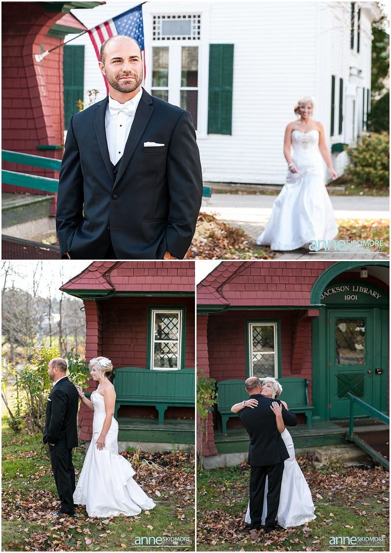 I have had a few amazing weddings at The Wentworth Inn, in Jackson New Hampshire, but all year long I was really looking forward to Adam & Jessica’s special day. I had never met them in person, but Jessica’s passion and enthusiasm always shined in her e-mails and when I met her in person, she just glowed like all our conversations did. They Wed on October 27th, 2013 and had an incredible fall day. These two opted for a first look moment, which is my new favorite thing! It allows for a very special moment for the couple, and there is less of a time stress when doing the portraits, and this shows with their portrait session! We wandered all over Jackson, and had a lovely time. Soon it was time for them to go their separate ways before their ceremony. They wed in the quaint Community Church of Jackson, where Reverend Lee gave a phenomenal service as always. Their reception was held inside at the Wentworth, which I absolutely adore as well. It is quaint, cozy, and beautiful inside. It is always a pleasure to shoot there, and I just LOVED this couple! Congrats Adam & Jessica, and take a peek below!