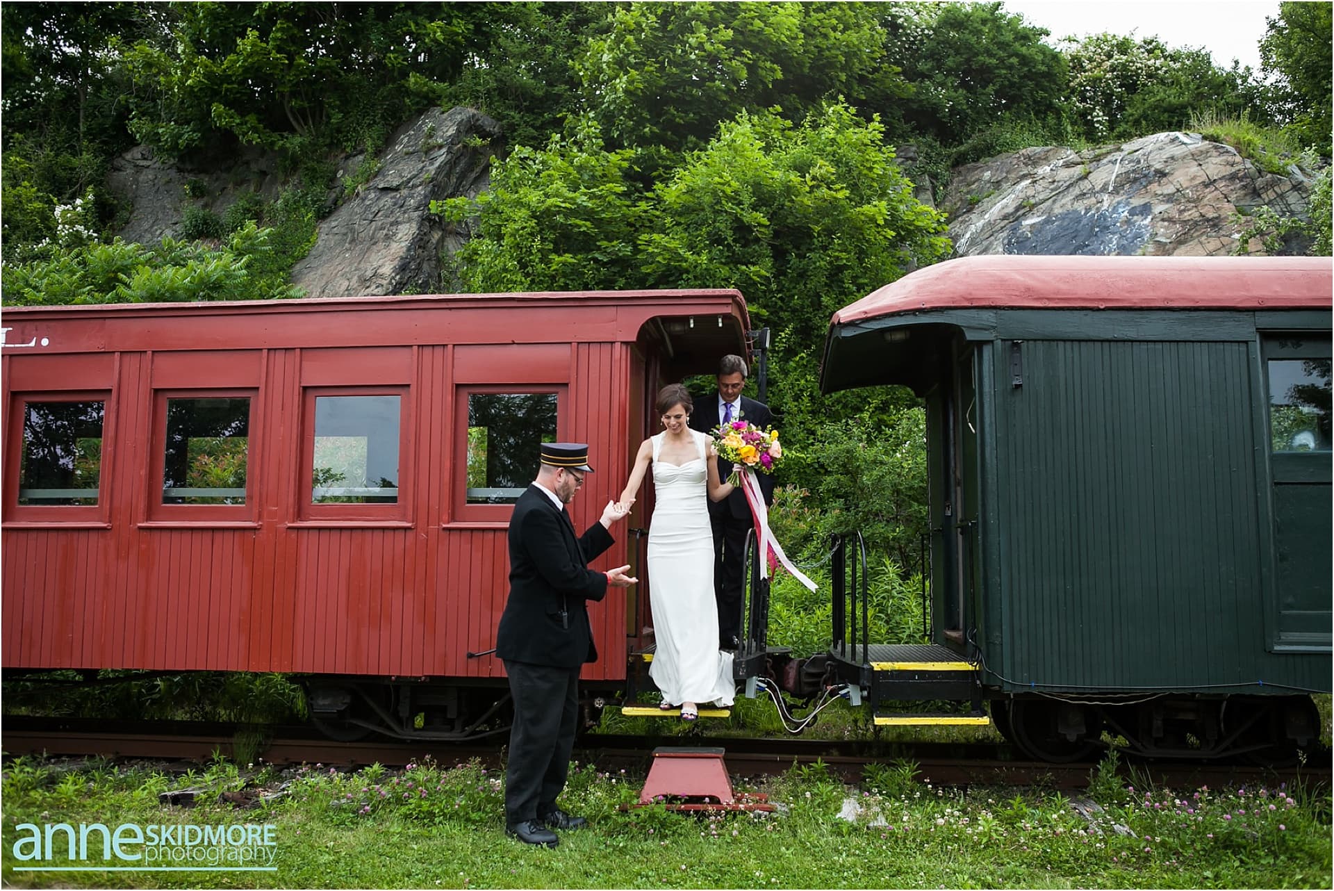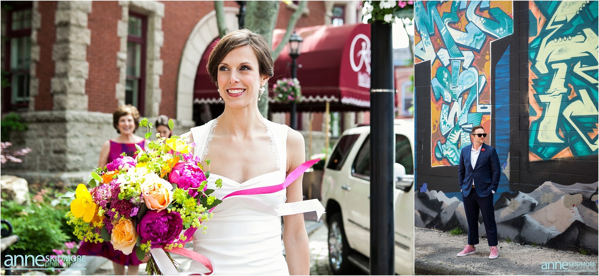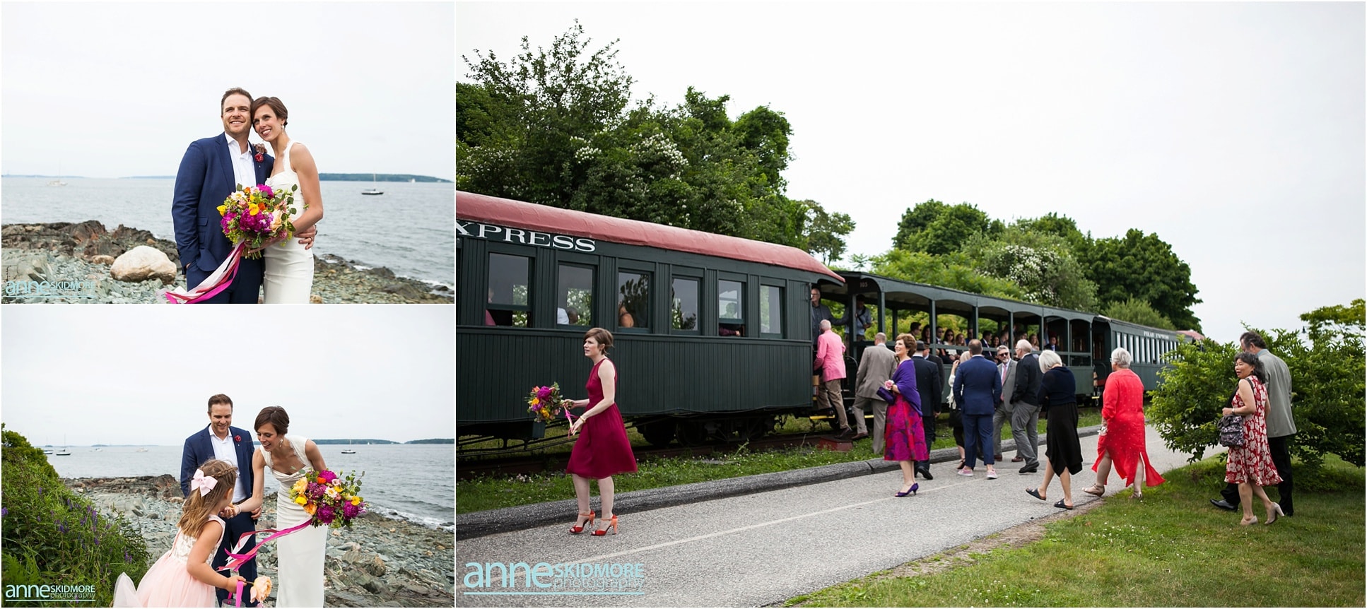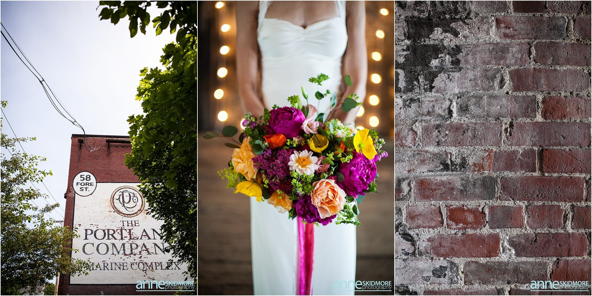 On June 27th, 2015, Megan and Tyler were married on the Eastern Promenade at Fish Point in Portland, Maine. What makes this wedding so unique was Megan and Tyler’s vision on all the moving parts of the day. There were two cocktail hours, a train to take guests to the ceremony location, an incredibly inspiring reception location and the best spot for a first look I’ve encountered thus far. The entire wedding as a whole really utilizes everything that makes Portland, Maine so special. While Tyler was lacing his pink sneakers at an undisclosed location, I met Megan at the Portland Regency Hotel in downtown Portland as the finishing touches of her make-up were wrapping up. Her Nicole Miller dress was a stunner as she slipped into it with her mom and sister’s help. I love how much joy the bright and colorful bouquet brought her as she first held it with her dress on. There is a corner tucked away in downtown Portland that has been spray painted on an entire wall. This is where Megan envisioned the first look location to be held. She had no idea that Tyler was going to be wearing his pink sneakers with his suit. It was all coincidence that the pink ribbon on the bouquet matched his sneakers that matched the Portland graffiti wall. After a few portraits downtown we drove to the Portland Company Complex, where the reception was held. What a venue! Rooms upon rooms all left in their original industrial form with incredible lighting pouring through the windows. We spent some time walking around the interior and exterior of the Complex, utilizing all the best spots for portraits. Guests started to arrive at the Portland Company Complex and each grabbed a drink before they stepped on the train. Clyde made sure each guest was accounted for a blew the final whistle. Off we all went down the tracks to Fish Point on the Eastern Promenade overlooking the sailboats in the harbor. Guests gathered informally for the ceremony and Megan and her dad were the last to disembark from the train. After the ceremony, some guests went for a quick train ride as other lingered on the Promenade. All aboard as we all rode back to the Portland Company Complex. Inside, a cocktail hour was held inside “the industrial room” with a beautiful lighting display. After, guests moved to the “Room with a View” for the dinner portion of the evening. A gourmet menu, served family style, was a great was to introduce why Portland has become so well known for its food. Toasts were followed by dancing and the night of celebration was underway. I’ll always remember this wedding and I was so inspired to be a part of it. Megan and Tyler, thank you so much for asked Brian and I to capture it. Enjoy these images! Wishing you two all the best in your new adventure together out west.