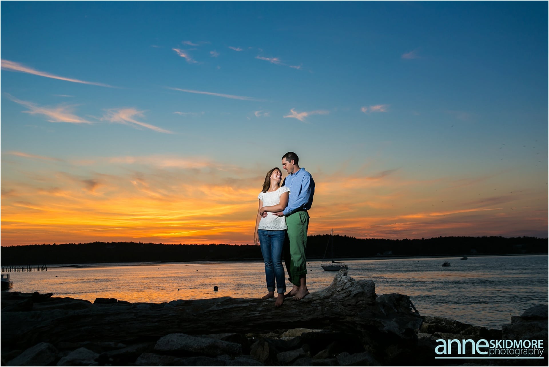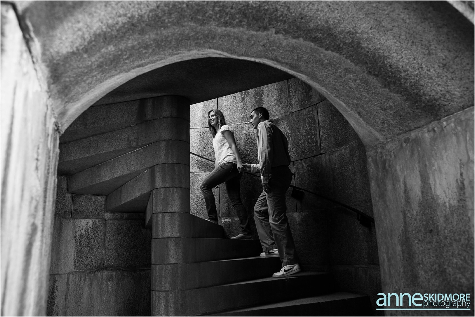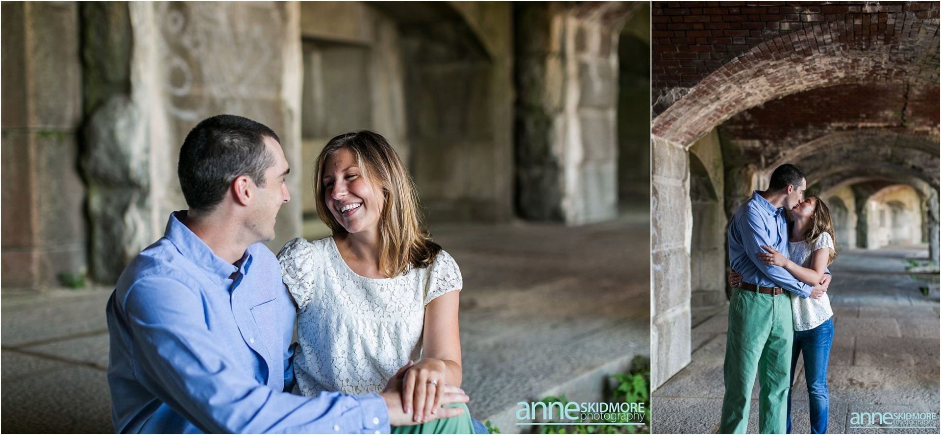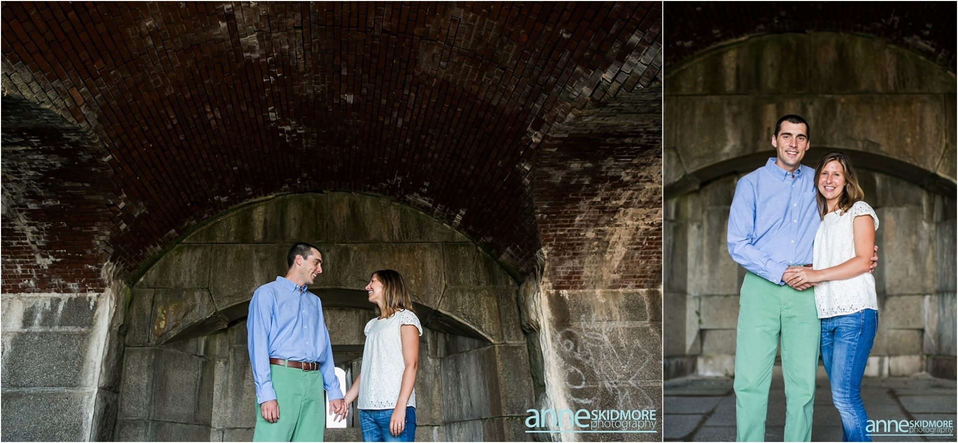 Pat and Becca will be hosting their wedding next June at the Coastal Maine Botanical Gardens in Boothbay, Maine. We are so excited to be there to capture their beautiful wedding and we are also so excited for their engagement photos. Pat and Becca chose Popham Beach State Park to take their engagement photos as it’s a place they frequent often. It was such a pleasure to visit the Maine coastline and utilize the historic fort, as well as the water, for many of their photos. We started the session in Fort Popham meandering around the stairwells and all the different archways. Making our way down to the water, we stopped for some pictures along the driftwood before venturing into the ocean. Pat and Becca were so dynamic to photograph, as they sang songs to each other (mostly Becca did the singing) and continuously would burst out laughing. They will have such a fun life together, that’s for sure! I’m so glad we were gifted with a beautiful sunset over the Kennebec River to end the evening. Thank you two for being so awesome! We can’t wait to photograph your wedding next year!