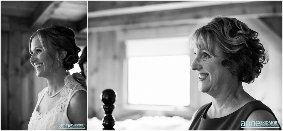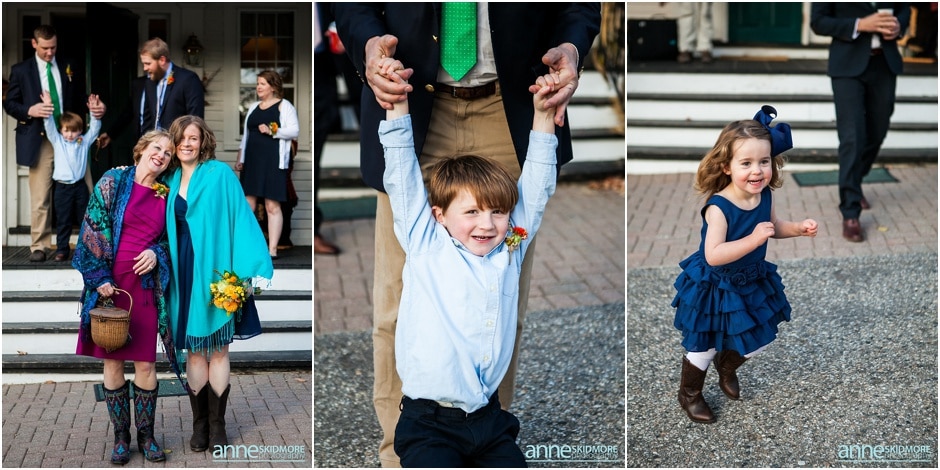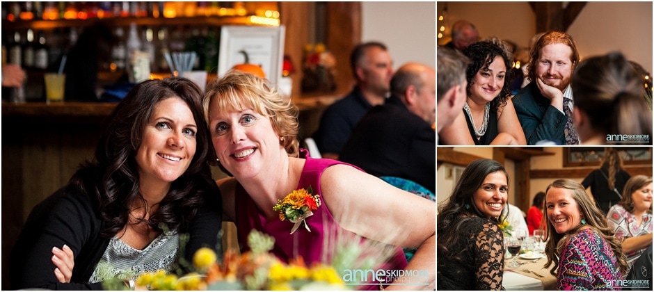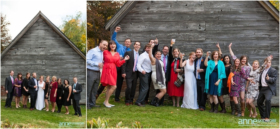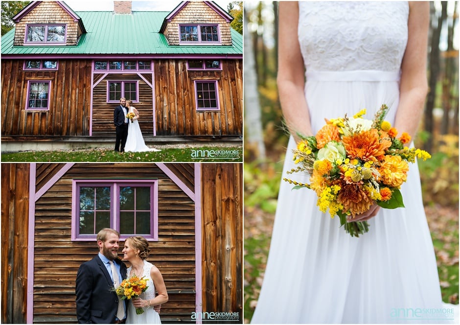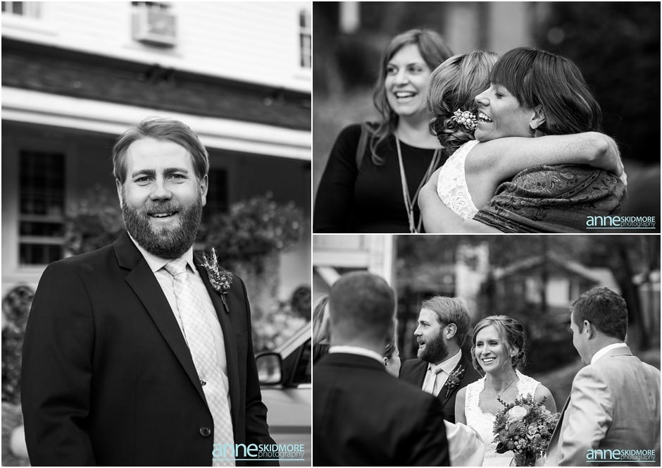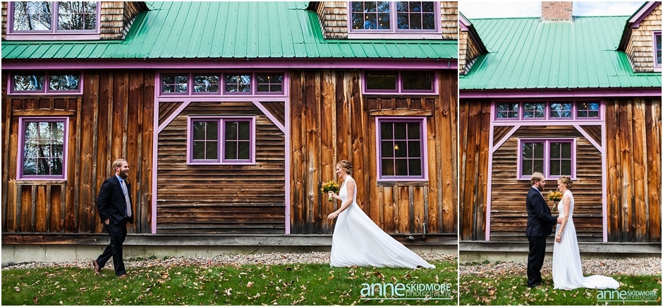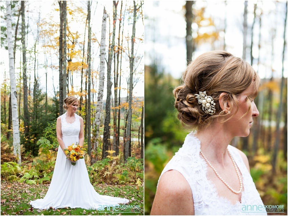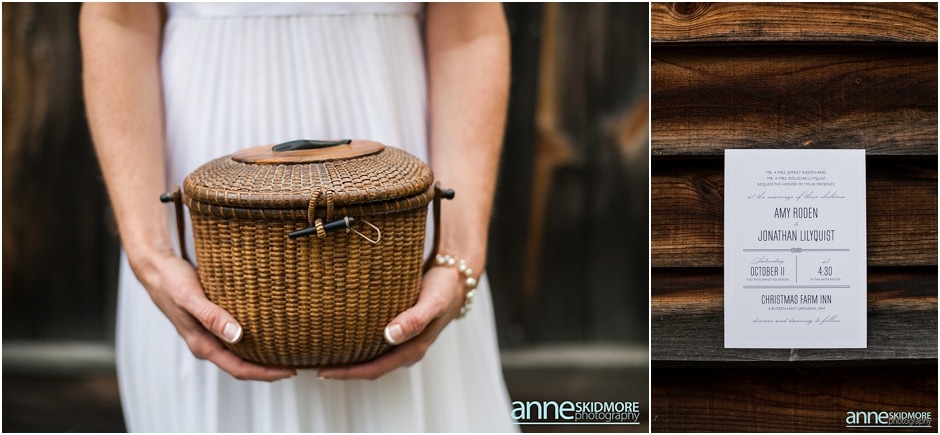 Amy and Jon were married on a cool, crisp fall afternoon at the Christmas Farm Inn in Jackson, New Hampshire on October 11, 2014. I have been in contact with Amy regarding the details of her wedding day for almost a year. One of the first things she shared with me was how she really wanted to re-design her mother’s wedding dress but didn’t know if it would work. It was a success! One of my favorite dresses thus far this season. With her family being friends of my family, this wedding was special to me as I’ve known some of them since I was a little girl. Amy and Jon tied in details from the west (Colorado) and expressed their love of skiing and the mountains any way they could throughout the day. They both opted for a first look moment before the ceremony. Jon waited for Amy outside the house they rented for the wedding as Amy handed out gifts to her maid of honor and shared some last minute hugs. We were able to spend an adequate amount of time for portraits with just Amy and Jon alone in Jackson. I love this time to not feel rushed. Some of my favorite portraits came towards the end as Amy and Jon loosened up in front of the camera and started to forget I was there. The rest of the day went so smoothly. Friends and family arrived in time for a quick (but not lacking emotion) ceremony and lingered at the cocktail hour outside as the last bit of light left the sky. The evening closed with friends and family uniting to support Amy and Jon’s life together. What a fun wedding this was to capture! So much emotion and pure happiness exuded from everyone this day. Thank you for asking me to capture that.