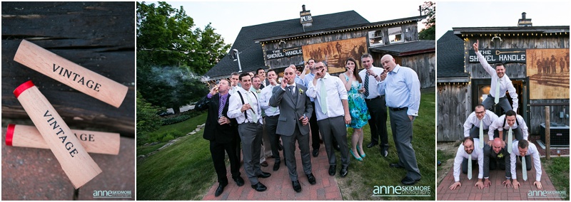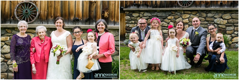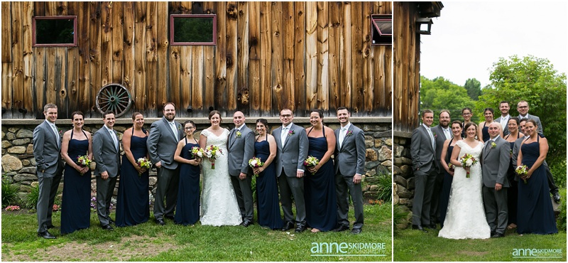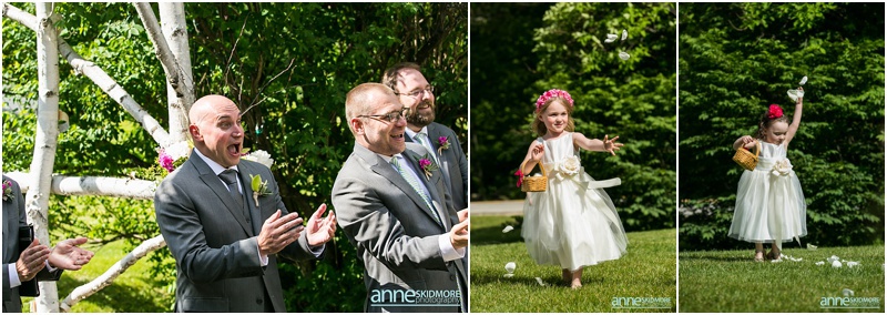 June 21st, 2014 was a beautiful summer day. Kevin and Gretchen knew the best way to start their wedding day at the Whitney’s Inn was with a 5K race in Jackson, NH! I mean, how cool is that! Both Kevin and Gretchen ran the wedding loop along with many friends and family! By midday they were all cleaned up and ready to officially start getting ready for their big day! Gretchen got ready at one of the sweet little cabins while Kevin and his groomsmen were in the main inn at the Whitney’s Inn. These two love birds opted for a sweet first look moment just upstream from the Jackson Falls. It was so intimate, quiet and lovely- a really special way to see each other for the very first time. After we bopped all over Jackson for portraits, and took a few back at the Whitney’s Inn with their beautiful hillside in full bloom! These two had so much fun making each other laugh and making us laugh! Before we knew it it was time for the ceremony. Friends and family gathered at the beautiful outdoor ceremony site right below Black Cap Mountain. The flower girls put on a show as Kevin and many others were trying to help and encourage them to make it all the way down the aisle- and they did! Gretchen’s father walked her down the aisle, and handed her off to Kevin with a kiss. There were lovely speeches and their dear friend officiated the wedding ceremony. They sealed it with a kiss and then it was time for a few more portraits with family, the bridal party and a couple more with the newlyweds! Dancing, toasts, and a few more gorgeous sunset shots filled the evening perfectly to make an incredible celebration. Thank you Gretchen and Kevin- Jordan and I had a blast capturing your beautiful day!
