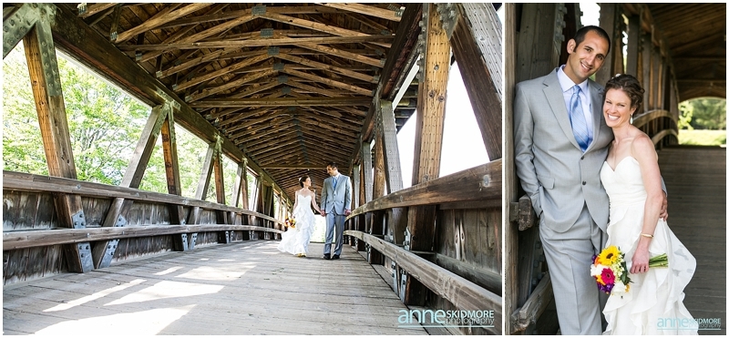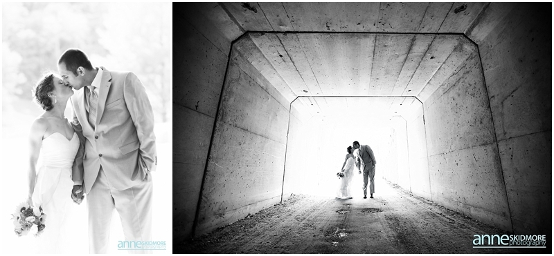 Bill & Katie sure picked a good one on June 15th, 2013! It was an amazing summers day at the Christmas Farm Inn, in Jackson, New Hampshire. The sun was shining, a slight breeze was blowing, and the black flies were at their minimum, perfect! The Christmas Farm Inn is filled with charm from their beautiful grounds, rustic buildings, and an incredible spa where Katie got all dolled up for her big day. These two love birds opted for a first look moment under some shading trees at the inn. After this sweet moment we did a few more portraits at the inn, and then scooted down to the Jackson Falls, a covered bridge, and we found a really cool tunnel that made for an awesome modern shot that I love! We headed back for their ceremony that was held in a lovely shaded spot back at the inn. After their “I Do’s” were sealed with a kiss, it was time to start the celebration in “The Barn”! But, before it got too late we snuck out at sunset for a few more portraits, what gorgeous light and sight it was! When we returned to The Barn, the reception was booming and these folks were tearing up the dance floor! Thank you Bill and Katie, it was so much fun and so lovely to capture your wedding day!