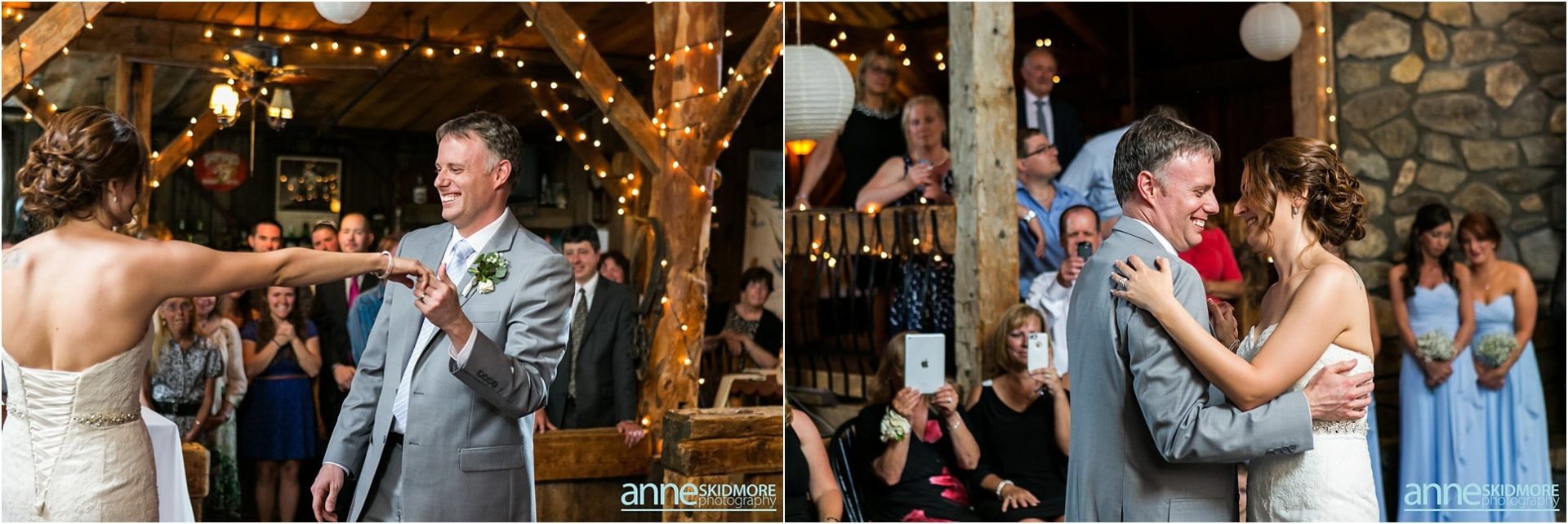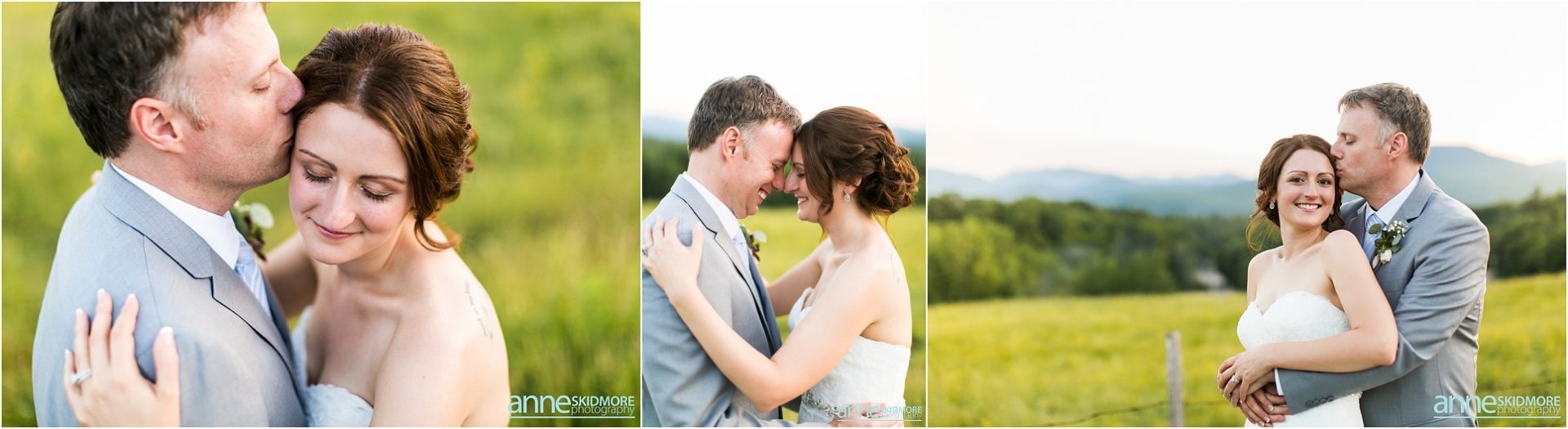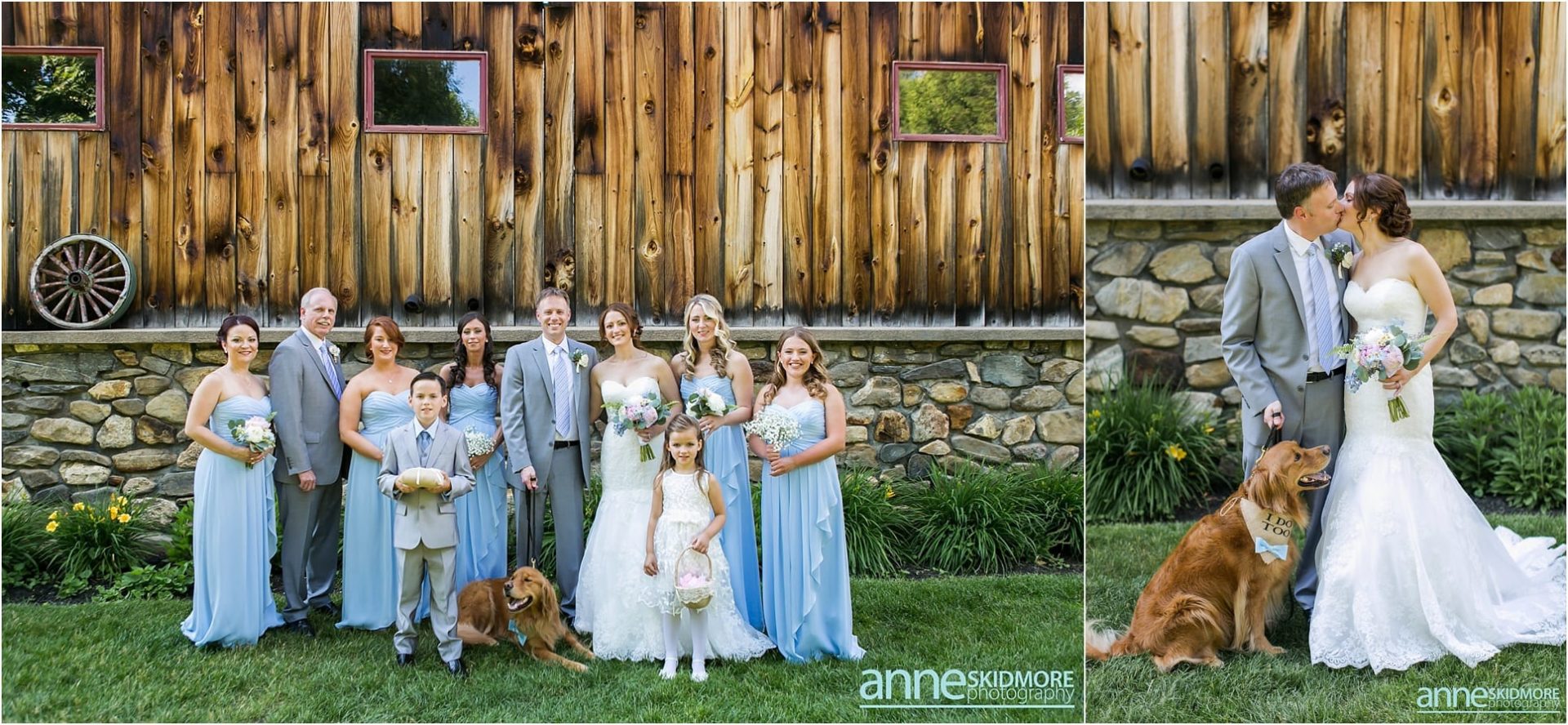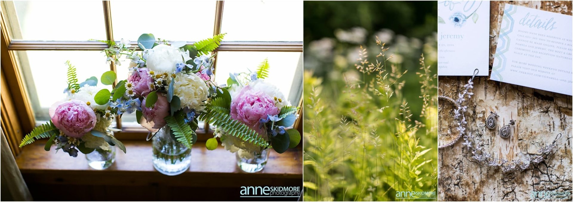 Pam and Jeremy were married on the most beautiful bluebird day at the Whitney’s Inn in Jackson, NH on June 25th, 2016. They expressed from the beginning how important it was for them to include their adorable golden retriever, Dakota, in the day surrounded by their best friends and family. I’m so glad the weather held and all their guests were able to see a typical New Hampshire summer day. Pam and Jeremy opted for a first look and Pam guessed it for sure…there were tears! We were able to utilize the open fields right down the road from the Whitney’s Inn for some portraits. The fields were blooming with yellow flowers which really popped against the blue sky. We made a special trip down to the covered bridge before returning back to the Whitney’s Inn for family portraits and bridal party portraits. The ceremony was held in the new woodland site across the street in the woods. Really beautiful vows were said followed by the first kiss! The light was hitting just right during cocktail hour and the horses roamed over across the fields to say hello. A wonderful reception in the Shovel Handle Pub was lively and full of happy tears and lots of love. I’m so glad we were able to drive up to an overlook for the sunset. It’s such a special way to spend the last moments of daylight on your wedding day. Matt Spofford had everyone on the dance floor all night long! What a fun wedding you two had! Wishing you all the best in the world 🙂