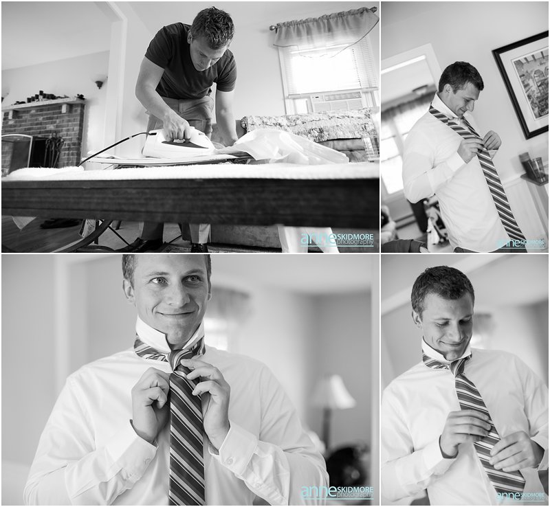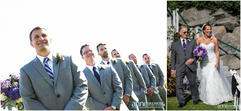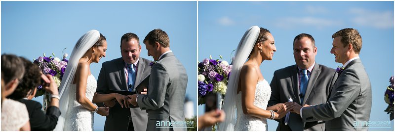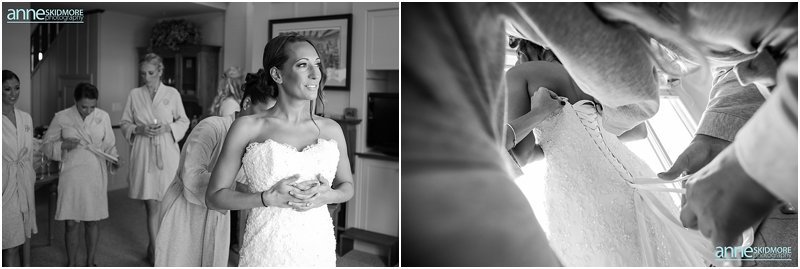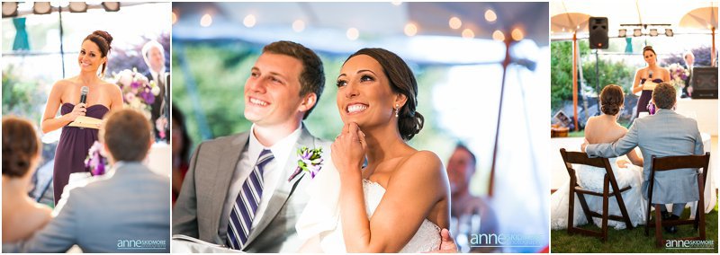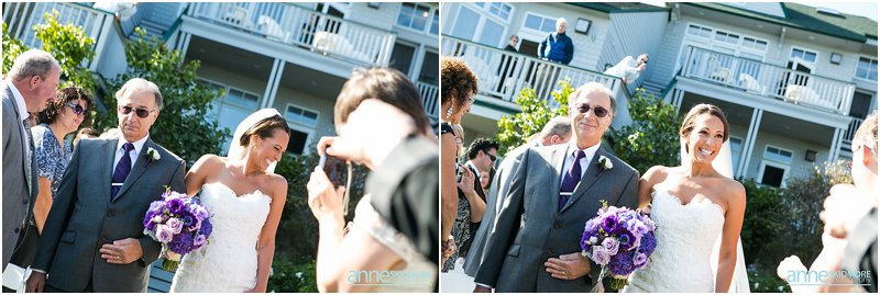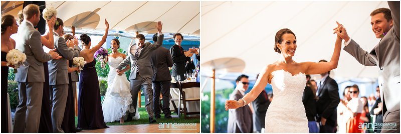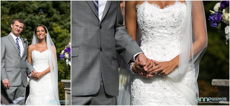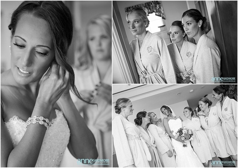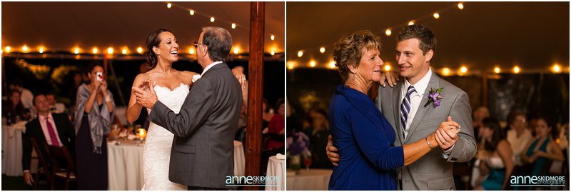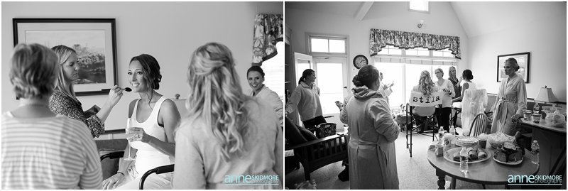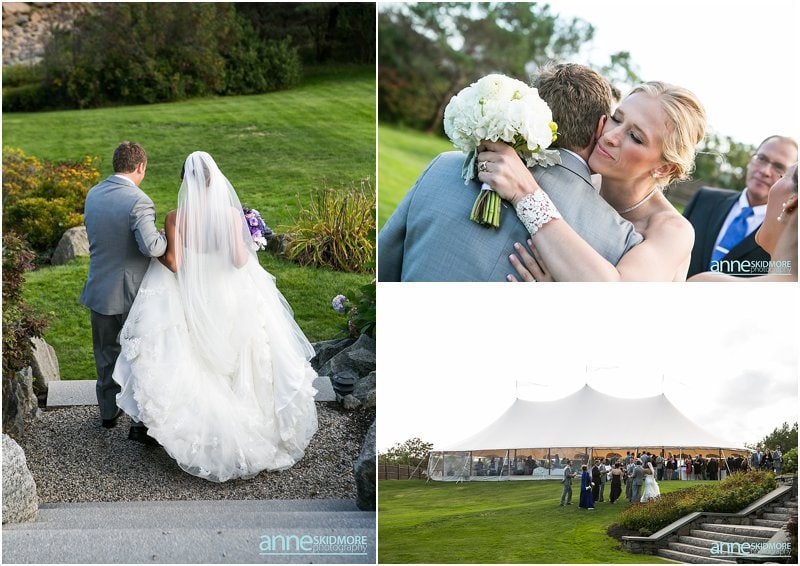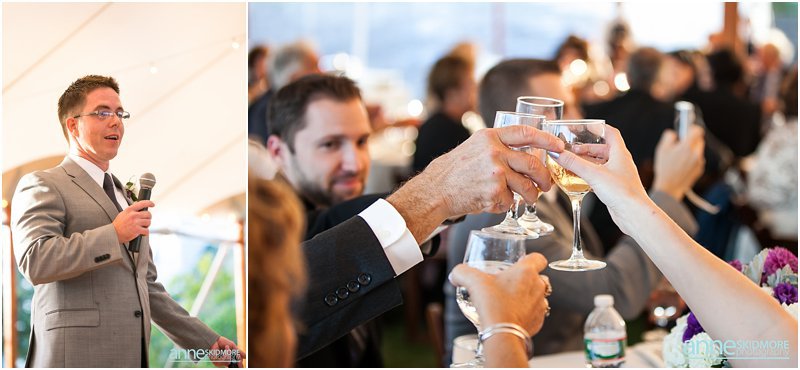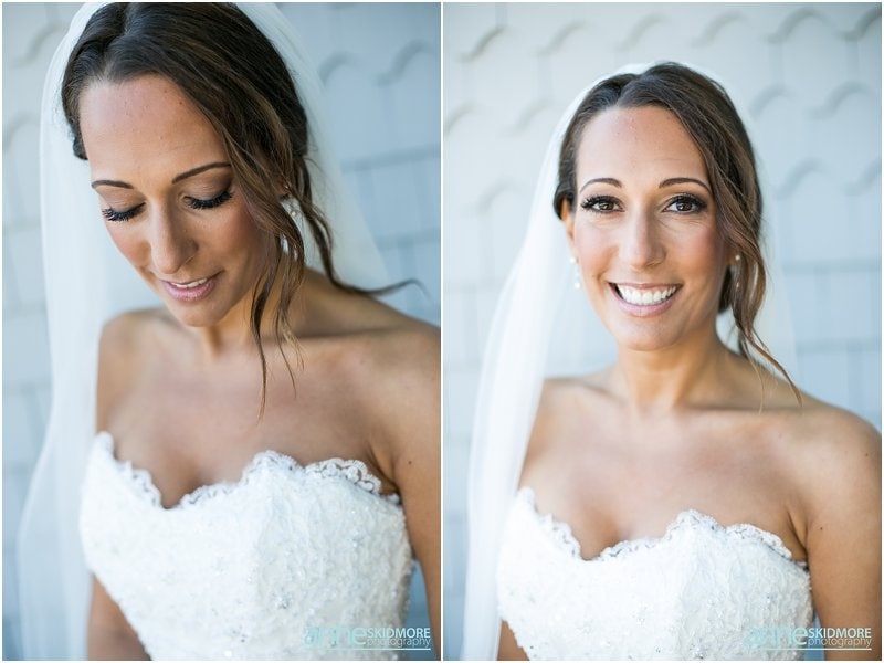 The sun broke through the clouds at 11 am on September 21st, 2013, turning a cold and foggy morning into a beautiful wedding day for Dan and Kristen at the View Point Hotel. Kristen and her six bridesmaids dressed in a beautiful suite as they got ready for the day. Dan was just across the street with his groomsmen and promptly headed to the Nubble Lighthouse for portraits with his family and groomsmen before the ceremony. The porch outside of Kristen’s suite offered beautiful light for portraits but also took many of her portraits down by the ocean. It was then time for Kristen to hide, as friends and family were starting to arrive for the ceremony! They had a gorgeous ceremony on the upper lawn of the hotel and were officiated by their close friend, Ben. Dan and Kristen asked that I capture their first kiss as husband and wife with all their friends and family cheering them on in the background. What a fun image! After the ceremony, we took family and bridal party photographs and it was then time for Dan and Kristen’s newlywed photos. They hopped in my blue Subaru Impreza and we drove off to the Nubble Lighthouse on Cape Neddick. The lighthouse, the rocks, and the ocean…..it was all stunning. Next, we headed towards the boardwalk of York, Maine. Such a historic area with lots of character! To top it off, an old golden retriever made his way to Dan & Kristen on the boardwalk, and plopped himself right in between them! These two dog lovers were as smitten as was I! After a few more photos, and a good bye to the ol’ pup, we headed back for the celebration. It was filled with dances, toasts, wonderful food, and yep, more dancing. We even were able to sneak out at dusk to grab some beautiful dusk photos with the Nubble Lighthouse in the background. It was such a gorgeous day! At the end of the evening as I was leaving, Kristen sadly asked, “So, this means I’ll never see you again?” I promised to stay in touch and meet her in Portsmouth for a drink sometime. Congrats you two! We simply LOVED you two and your wedding day!