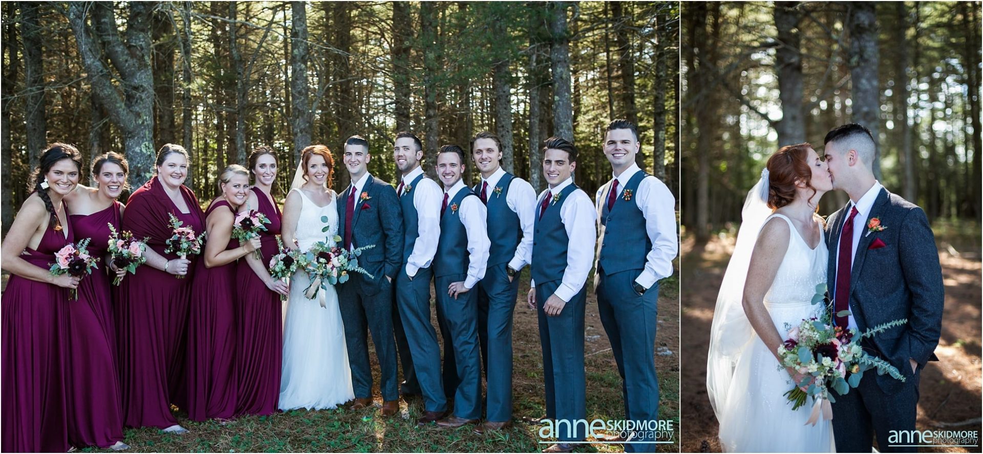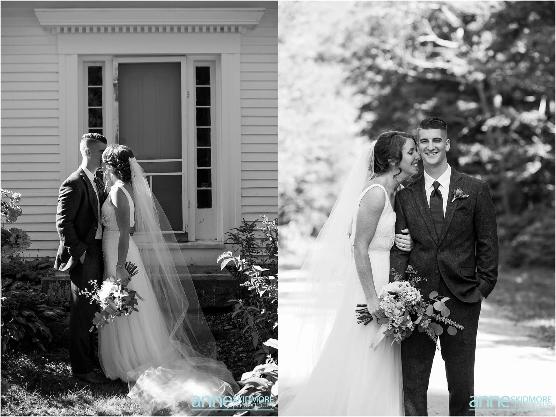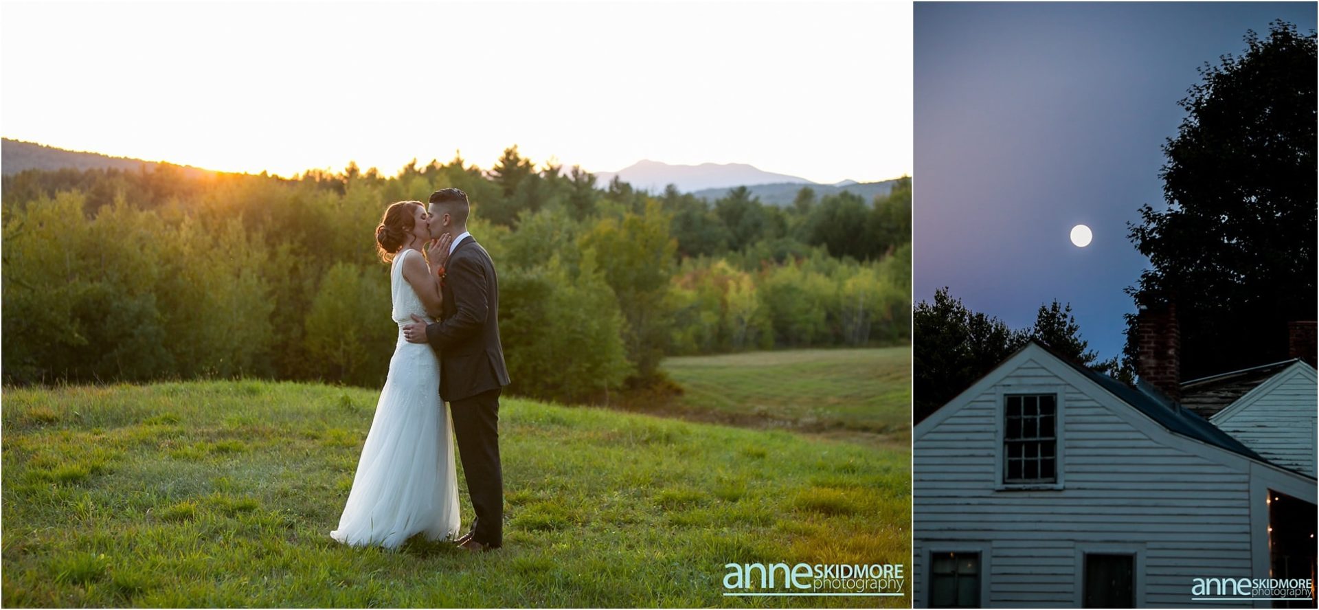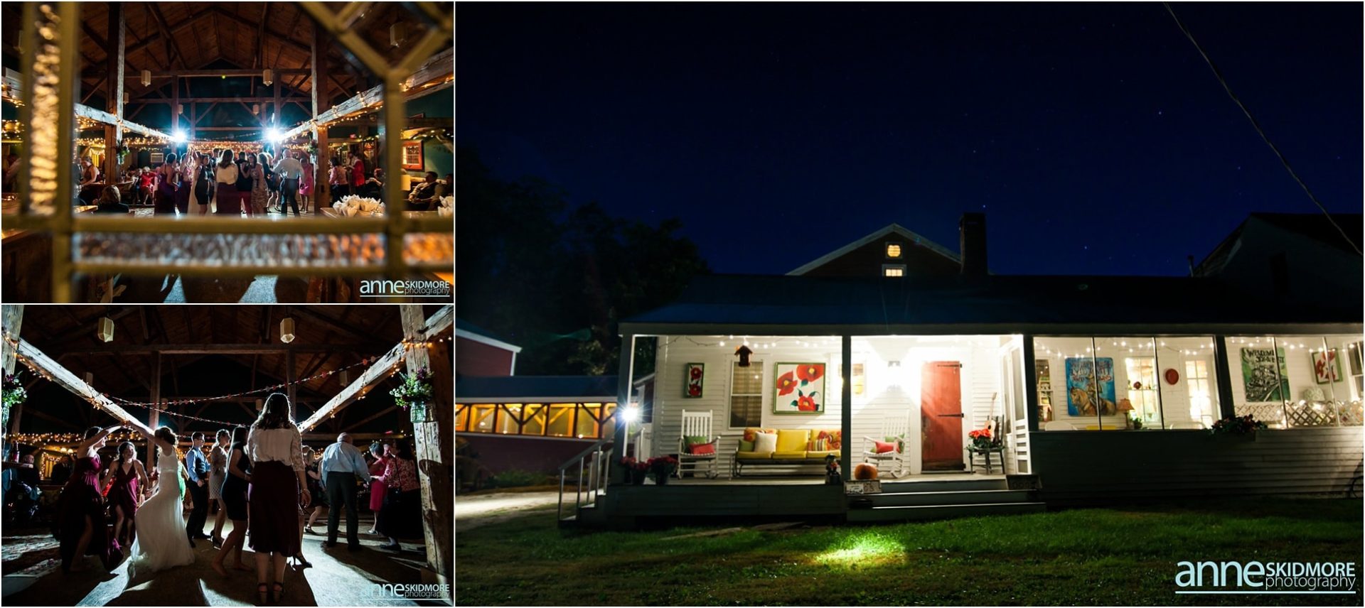 Caitlin and Ryan were married on, yet again, another beautiful fall day this past September at the Stone Mountain Arts Center in Brownfield, Maine. This venue continues to be one of my favorite venues to photograph. Guests absolutely love the barns and being free to walk the grounds. The drive up to SMAC is quite beautiful as well, overlooking the rolling fields of Brownfield towards the White Mountains of Maine and New Hampshire. After finishing her hair and make-up at Debony Salon in Jackson, I met Caitlin and the girls at The Snowvillage Inn in Eaton, New Hampshire. They all enjoyed some girl time as Caitlin got ready. It was so nice to capture Caitlin in her gown before we drove over to SMAC to meet Ryan for the first look. What a stunning bride! Ryan waiting in front of the white porch for Caitlin to arrive. This is one of my favorite parts of the day (and I think theirs too!). We took portraits all over the SMAC property and the long dirt road abutting. We were able to utilize the beautiful Blake Farm down the road for portraits with the bridal party. Guests started to arrive at the ceremony site back at SMAC. To share the ceremony stage with so many talented artists at SMAC has to be one of the most special parts of getting married there. So many defining moments happen on that stage. It’s very powerful. Cocktail hour was followed by dinner and we stepped outside to take some portraits with the last bit of remaining daylight. The moon was full and dancing sure took off in full swing with the bridal party kicking it off. This wedding was full of immaculate taste and decor. From the beautiful flowers designed by Jackie from Moonset Farms to Ryan’s fine wool suit to Caitlin’s stunning dress, I enjoyed photographing everything! Thank you two for being so fun to photograph! Enjoy 🙂