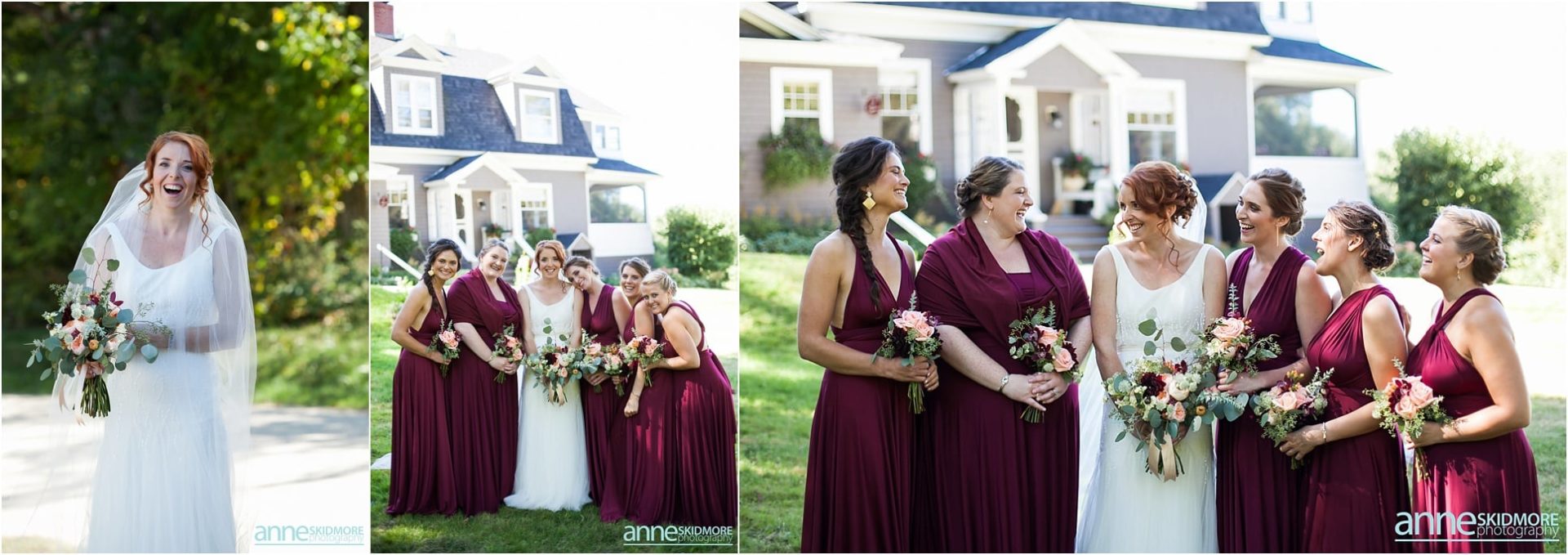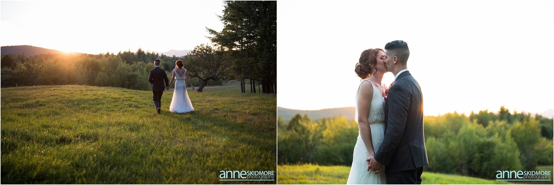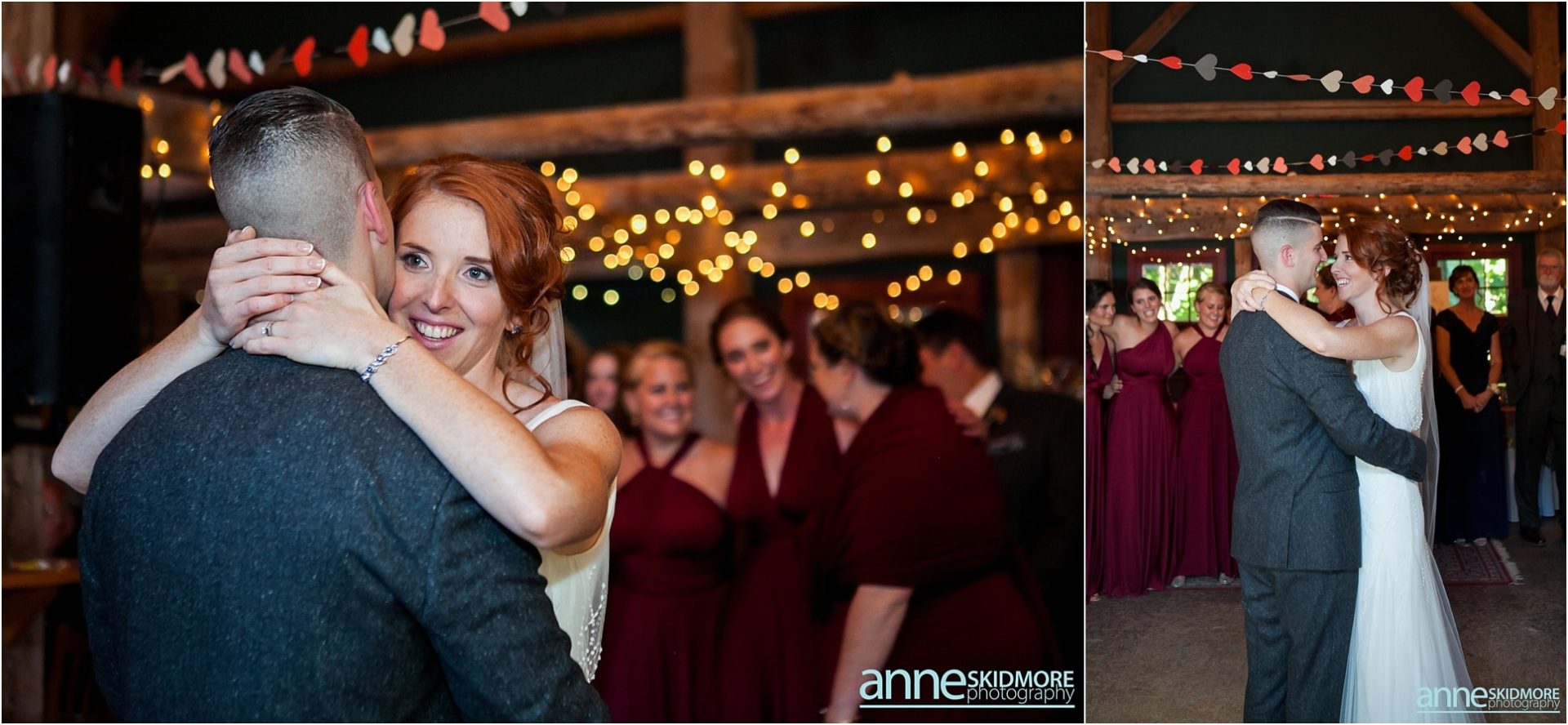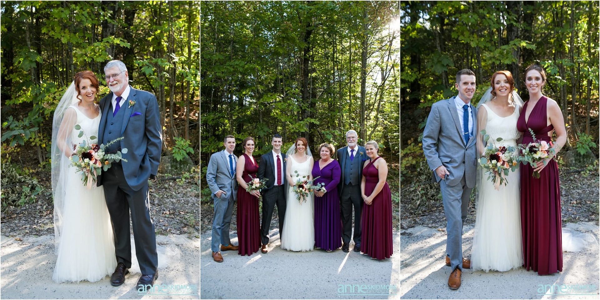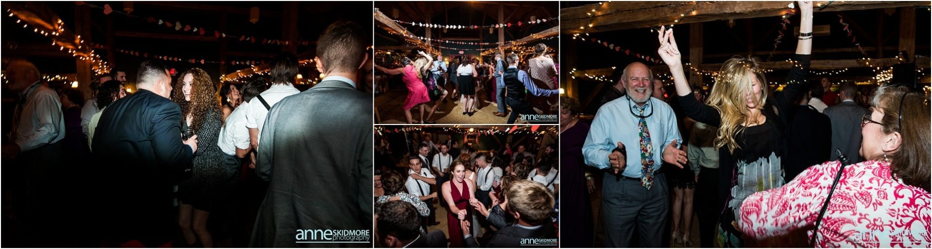 Caitlin and Ryan were married on, yet again, another beautiful fall day this past September at the Stone Mountain Arts Center in Brownfield, Maine. This venue continues to be one of my favorite venues to photograph. Guests absolutely love the barns and being free to walk the grounds. The drive up to SMAC is quite beautiful as well, overlooking the rolling fields of Brownfield towards the White Mountains of Maine and New Hampshire. After finishing her hair and make-up at Debony Salon in Jackson, I met Caitlin and the girls at The Snowvillage Inn in Eaton, New Hampshire. They all enjoyed some girl time as Caitlin got ready. It was so nice to capture Caitlin in her gown before we drove over to SMAC to meet Ryan for the first look. What a stunning bride! Ryan waiting in front of the white porch for Caitlin to arrive. This is one of my favorite parts of the day (and I think theirs too!). We took portraits all over the SMAC property and the long dirt road abutting. We were able to utilize the beautiful Blake Farm down the road for portraits with the bridal party. Guests started to arrive at the ceremony site back at SMAC. To share the ceremony stage with so many talented artists at SMAC has to be one of the most special parts of getting married there. So many defining moments happen on that stage. It’s very powerful. Cocktail hour was followed by dinner and we stepped outside to take some portraits with the last bit of remaining daylight. The moon was full and dancing sure took off in full swing with the bridal party kicking it off. This wedding was full of immaculate taste and decor. From the beautiful flowers designed by Jackie from Moonset Farms to Ryan’s fine wool suit to Caitlin’s stunning dress, I enjoyed photographing everything! Thank you two for being so fun to photograph! Enjoy 🙂