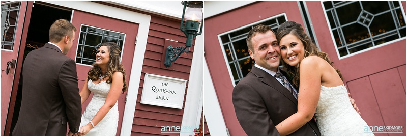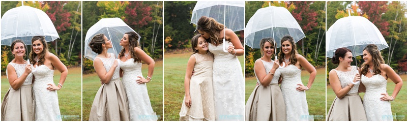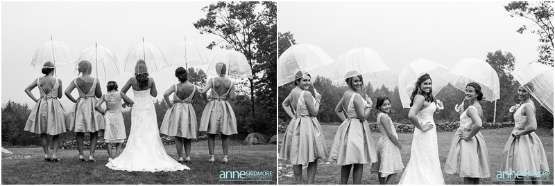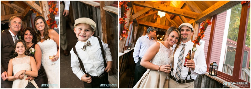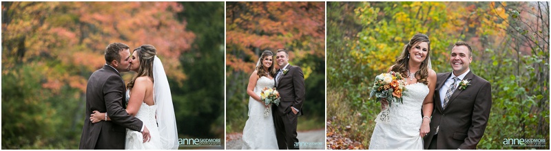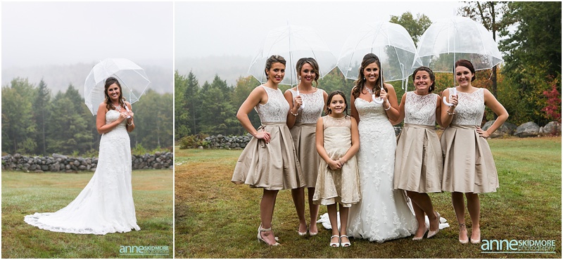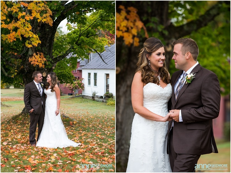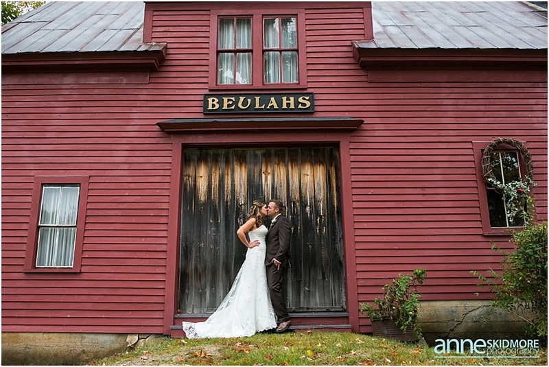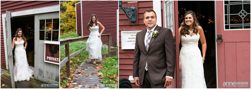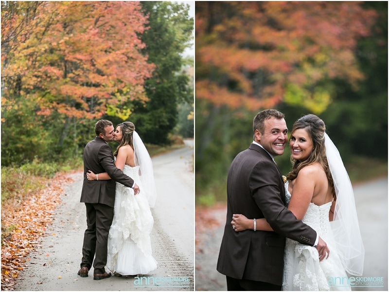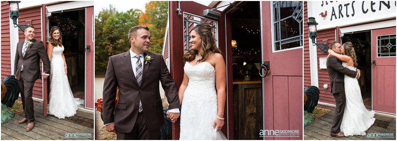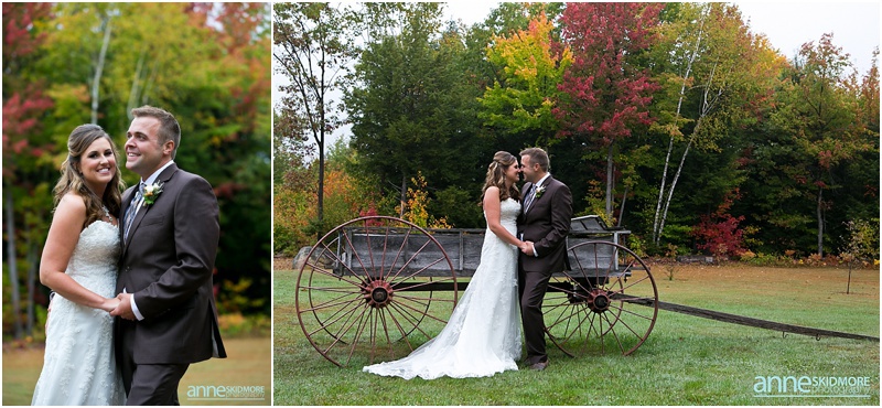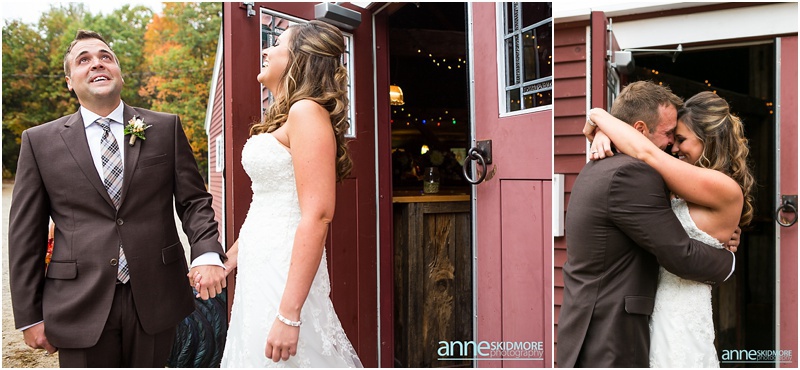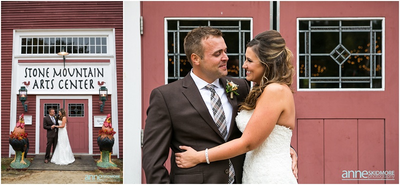 Oh this was a very special wedding at a very special place! Dan and Christine wed on October 4th at the Stone Mountain Arts Center, during the heart of the fall foliage season. All the trees were exploding with color you could just feel it, and the love these two have for each other paralleled that energy perfectly! There was a slight rainy mist that day, but Christine and Dan didn’t let this phase them one bit, in fact we were calling it a “dry rain” as you could barely tell it was there. The guys and gals got ready in separate areas, and when the time arrived Dan and Christine had a beautiful and touching first look moment right outside the front doors of the Quisana Barn at Stone Mountain Arts Center. Before they saw each other, they held hands on opposite sides of the front door, just to have a moment together. Then they turned and saw each other, and there wasn’t a dry eye between the two of them! Then Christine had a special moment with her father seeing her for the first time as a bride. When Dan and Christine were ready, we changed locations and went down the road for a few portraits at an old New England home, a scenic vista, and a special spot up the road where there is a beautiful old antique wagon. The “dry rain” tried to damper things, but we just took out umbrellas, and everyone worked with it during the portraits! So fun! After we were done with formal photos it was time for these two to be officially married! They had sweet ceremony with cherished readings, and the lovely Hannah was their JP and she was also their wedding coordinator at Stone Mountain Arts Center! They sealed it with a kiss and right after the ceremony the newlyweds wanted to snag a few more portraits before heading back to the festivities. I’m so glad we did as they were just “glowing” after becoming husband and wife! Then it was time for them to be introduced, have their first dance, eat amazing food, toasts be made, and then more awesome dancing into the evening! What a day! Thank you Christine and Dan, we loved capturing your wedding day and congrats again!