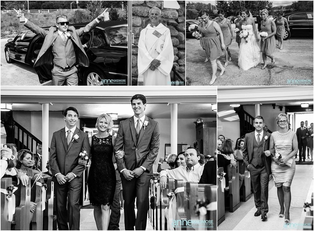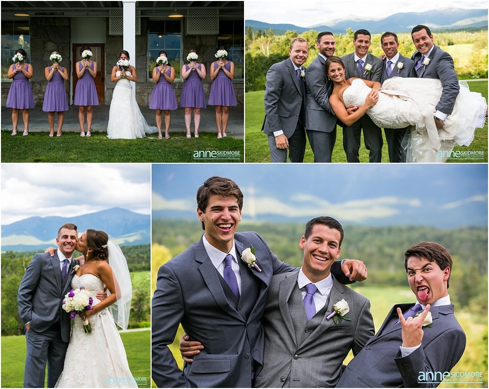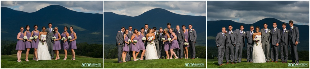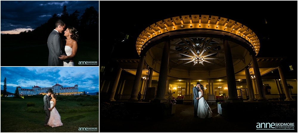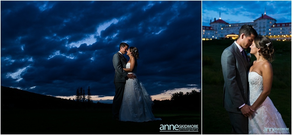 Michael and Kimberly began dating in high school (yes, high school sweethearts) and have a long history of skiing in the White Mountains. Specifically, Bretton Woods was their skiing spot of choice and how perfect it is that they chose to wed at The Omni Mount Washington Hotel & Resort, in the heart of it all! It is so classic and so breathtaking there! You have the mountains, the sky, and the magnificent hotel. To top it off these two had an absolutely amazing August day for their wedding. Kimberly and her girls got all dolled up in the bridal suite at the Mount Washington Hotel and Michael and the guys were at the condos by Bretton Woods- a sure way to know that they would not see each other before their ceremony! Both groups had so much fun with their bridal parties with toasts and helping Mike and Kimberly get ready for their big day. Some portraits were taken before their ceremony and soon it was time for their “I Do’s”. St Patick’s Church just down the road was filled with their friends and family, and there was barely a dry eye in that church. They sealed their vows with a sweet kiss and were beaming with happiness down the aisle! We had endless beautiful backdrops for their portraits, bridal party portraits and family portraits. Looking back through these and editing them I was just blown away by how striking so many of the photos were, and to make my job even easier that day, this couple was absolutely adorable, and SO kind. The evening was filled with so much love, laughter, energy, and the most unbelievable psyche on the dance floor. A big reason for that was the band that totally rocked it called The Common Good Band. At dusk we were able to squeeze in a few last portraits with the glowing night sky and grand hotel. Thank you so much Michael & Kimberly, it was a complete joy to capture your beautiful day and work with such kind and wonderful people! And a special thank you to Joe Ciarcia for his talent and second shooting with me that day!