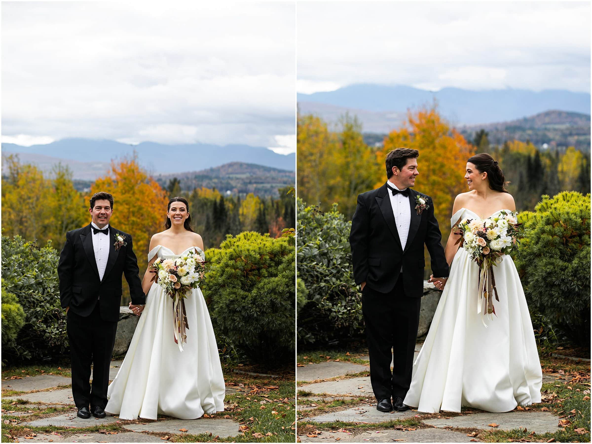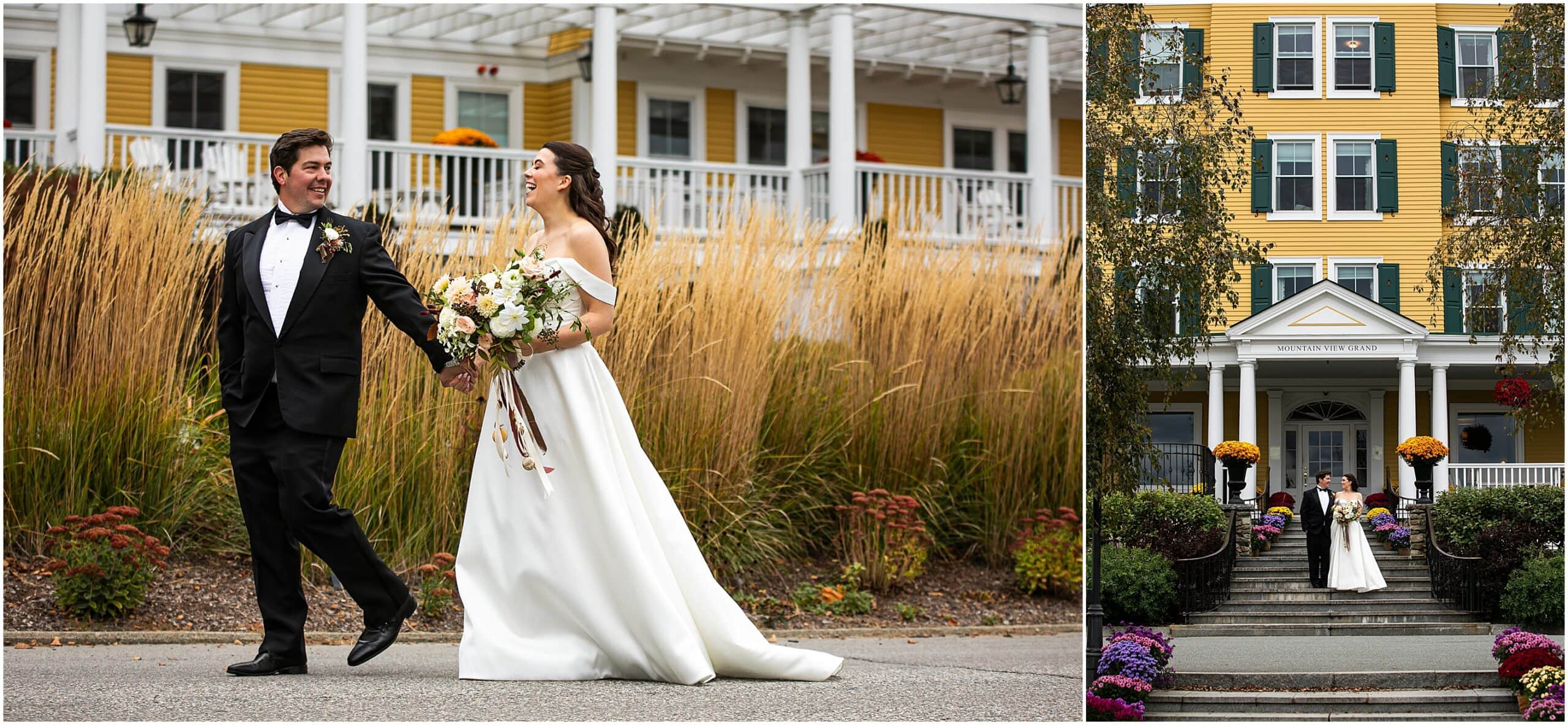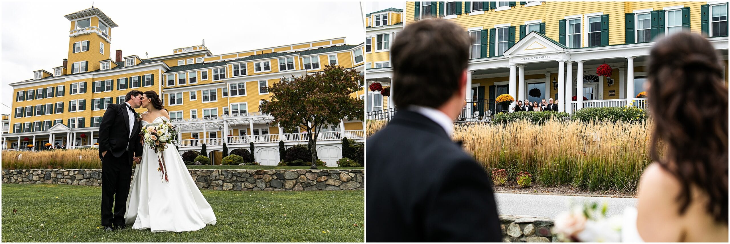 We just love the Mountain View Grand so much- especially during foliage season here in New England. With vast views of the White Mountains, on a clear day we can see much of the presidential range as well as Mount Washington. With the most beautiful ballroom, this venue is just top notch. Sarah and Alex expressed how much they wanted their wedding to feel unique to them. They opted to not have a bridal party and invited their immediate families to walk down the aisle instead. They held a German log cutting unity ceremony. Alex even suprised Sarah by having her bouquet draped with antique lockets with pictures of their loved ones. It was really such a special day and I feel so honored to have photographed it! Take a peek below at this beautiful Mountain View Grand Wedding!