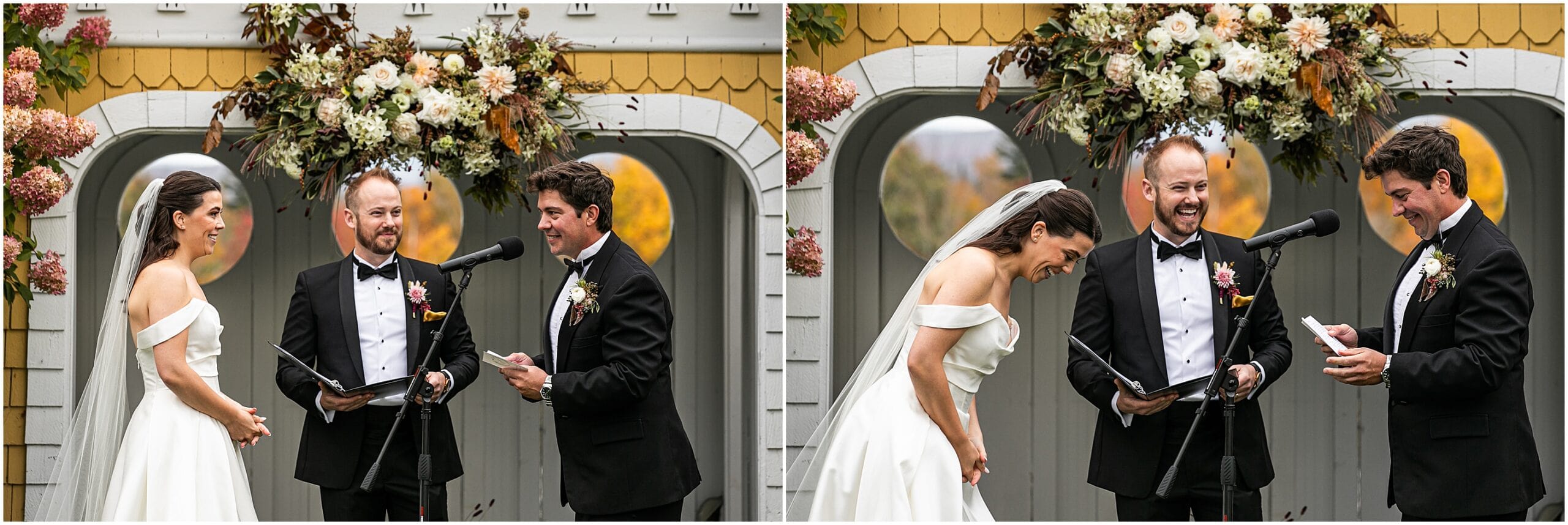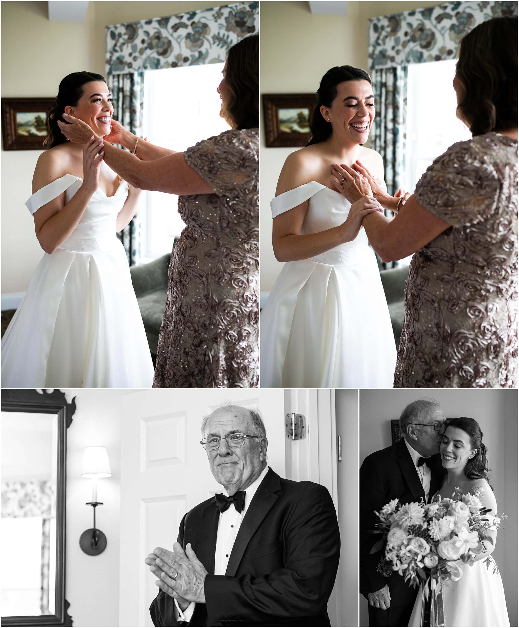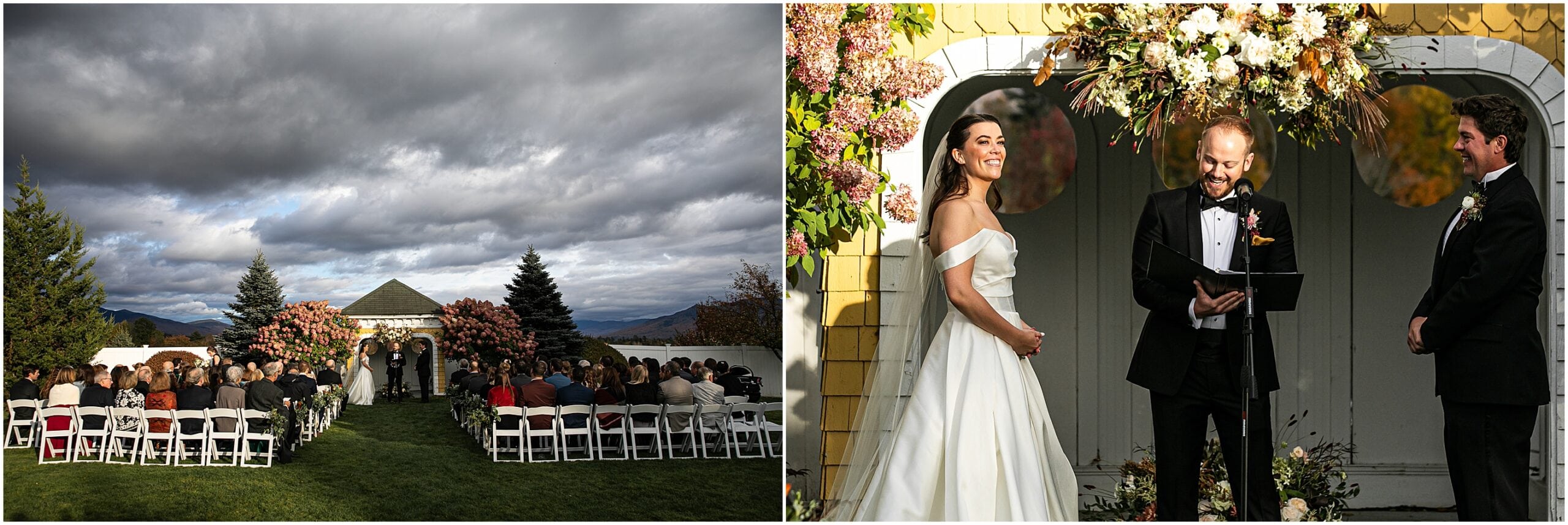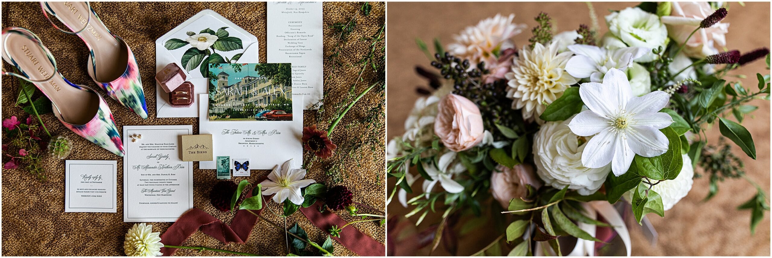 We just love the Mountain View Grand so much- especially during foliage season here in New England. With vast views of the White Mountains, on a clear day we can see much of the presidential range as well as Mount Washington. With the most beautiful ballroom, this venue is just top notch. Sarah and Alex expressed how much they wanted their wedding to feel unique to them. They opted to not have a bridal party and invited their immediate families to walk down the aisle instead. They held a German log cutting unity ceremony. Alex even suprised Sarah by having her bouquet draped with antique lockets with pictures of their loved ones. It was really such a special day and I feel so honored to have photographed it! Take a peek below at this beautiful Mountain View Grand Wedding!
