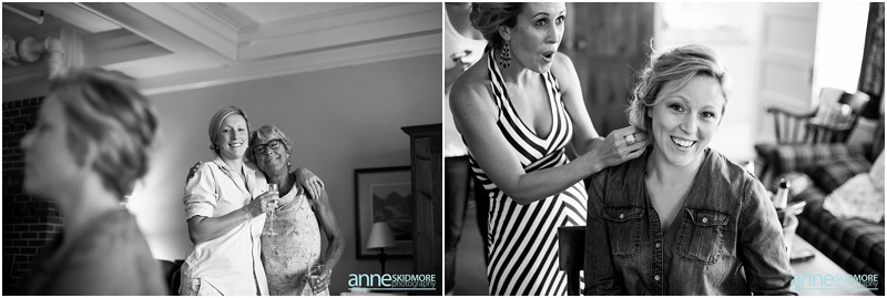 On September 6th, 2014, Siiri watched the clouds roll into the Mount Washington Valley on the afternoon of her wedding day. “Please don’t rain, please don’t rain. Do you think it’s going to rain?”, she kept asking. Nate waited for her at the ceremony site and watched a few rain drop fall from the sky. Siiri was adamant about having the ceremony outside overlooking the mountains in Jackson, NH at the Eagle Mountain House. We all watched as the clouds got darker and darker and anticipated a complete downpour in the middle of the ceremony. Somehow, the rain held. Siiri walked down the aisle towards Nate and Roy Prescott, delivered a wonderful performance as Justice of the Peace. It didn’t rain. Earlier that afternoon, I was able to capture many moments with Siiri and her bridesmaids as they got ready. There were dance parties, many hugs, tears and laughter. Siiri was so full of life and excited to see her husband-to-be at the alter. She and Nate opted for portraits after the ceremony, and it was inevitable- it rained. Siiri and Nate were up for the adventure capturing portraits in the rain. After the rain turned into a complete downpour, we finished the portraits on a private spot on the veranda of the Eagle Mountain House. I’m happy we did. It was beautiful! The evening finished with heartfelt toasts, a lively first dance, and a wonderful dinner. Matt Spofford had the dance floor crowded all night! Siiri and Nate, thank you. You two were so wonderful on your wedding day, and still are. I thoroughly enjoyed capturing your very special day.