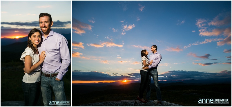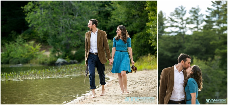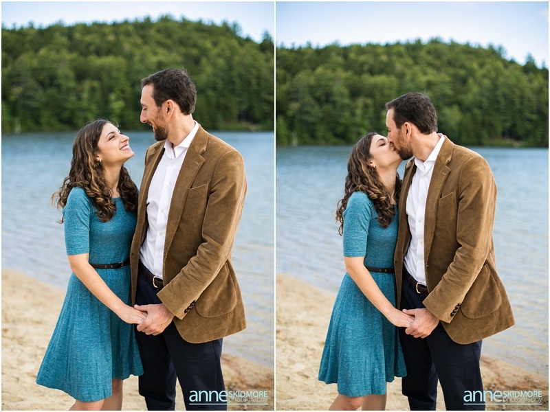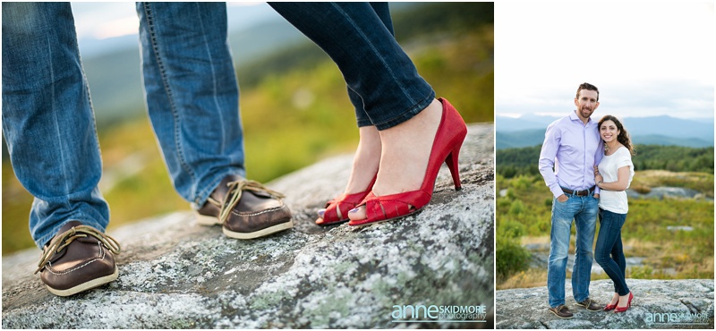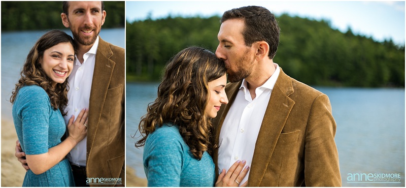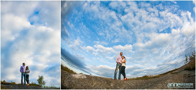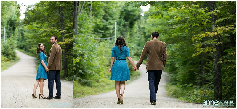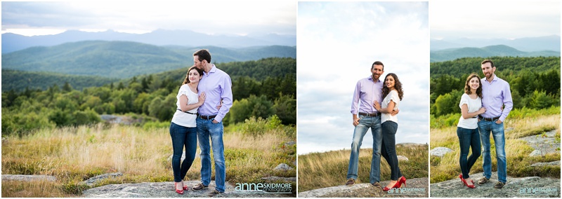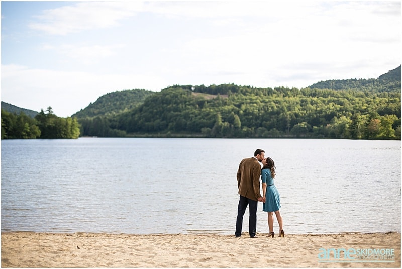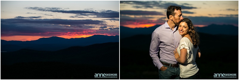 It’s pretty wild how our couples find us. Sometimes it’s through the internet searches or a website, sometimes it’s through vendors referring you, and then for some, it’s when a previous bride and groom passes your name along, and that is how Asya and Mike found me! I photographed their friends wedding in 2009, and I was touched when they inquired with me about their wedding in 2015! But first in line was their engagement shoot. These two wonderful people are very busy with their careers, however in their down time together they love to have adventures in the mountains and outside. Thus, I proposed photographing in lovely Eaton, New Hampshire for their engagement shoot. They loved the idea! Located right there you have the amazing Crystal Lake, classic dirt New Hampshire roads, and then one of the best and easiest summits on Foss Mountain. We had a blast and an incredibly beautiful night! And I also loved Asya’s adorable eggshell blue dress with Mikes classic corduroy jacket, and then their second look with Asya’s sassy red heels and cute blue jeans and Mike with his boat shoes and button down! Take a peek below, and I can’t wait for their wedding in June 2015!