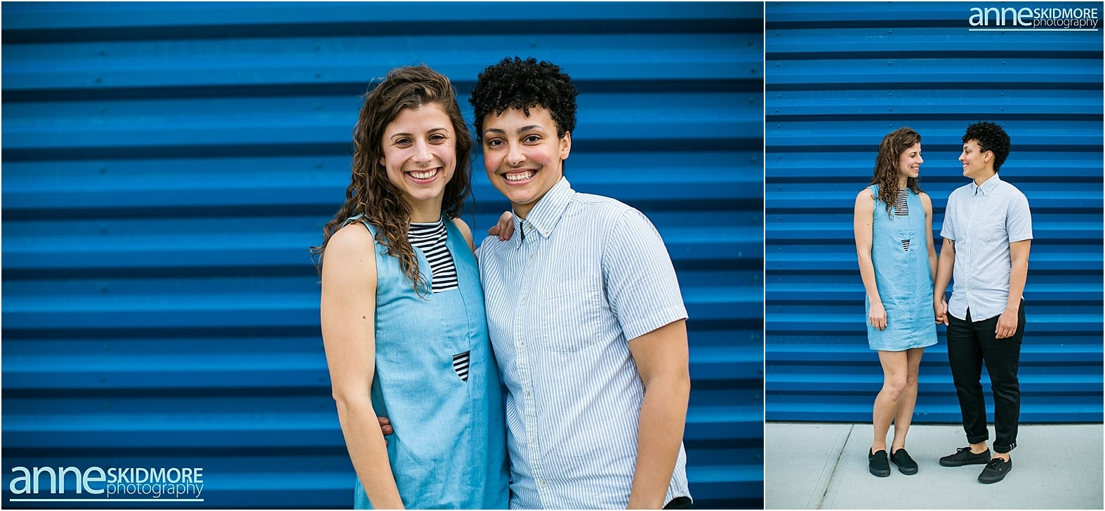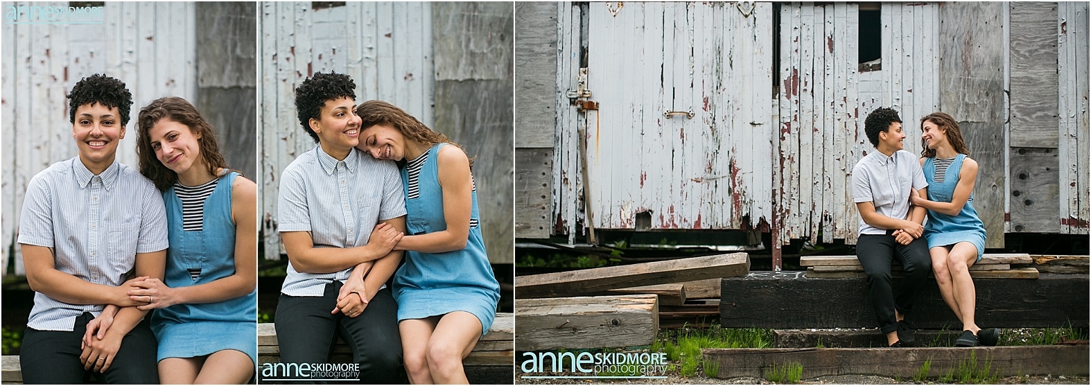 We heart these two! We had so much fun with Talicia & Margie in downtown Portland, Maine and also right outside the Portland Company Complex a few weeks ago. While these two are getting married at the stunning family farm this weekend, we love a little juxtaposition and opted for a more urban setting for their engagement session. It was pretty fitting for them since they used to live in Brooklyn, and now live right outside of New York City! We wandered all over the docks in downtown Portland, and the fun graphic backgrounds just didn’t end. Of course we found some classic fishing boats and lobster traps to work with, and wrapped up the shoot down and around the buildings of the Portland Company Complex! With nothing but laughter, smiles and a whole lot of love throughout their engagement shoot, we are so excited for their big day this weekend!