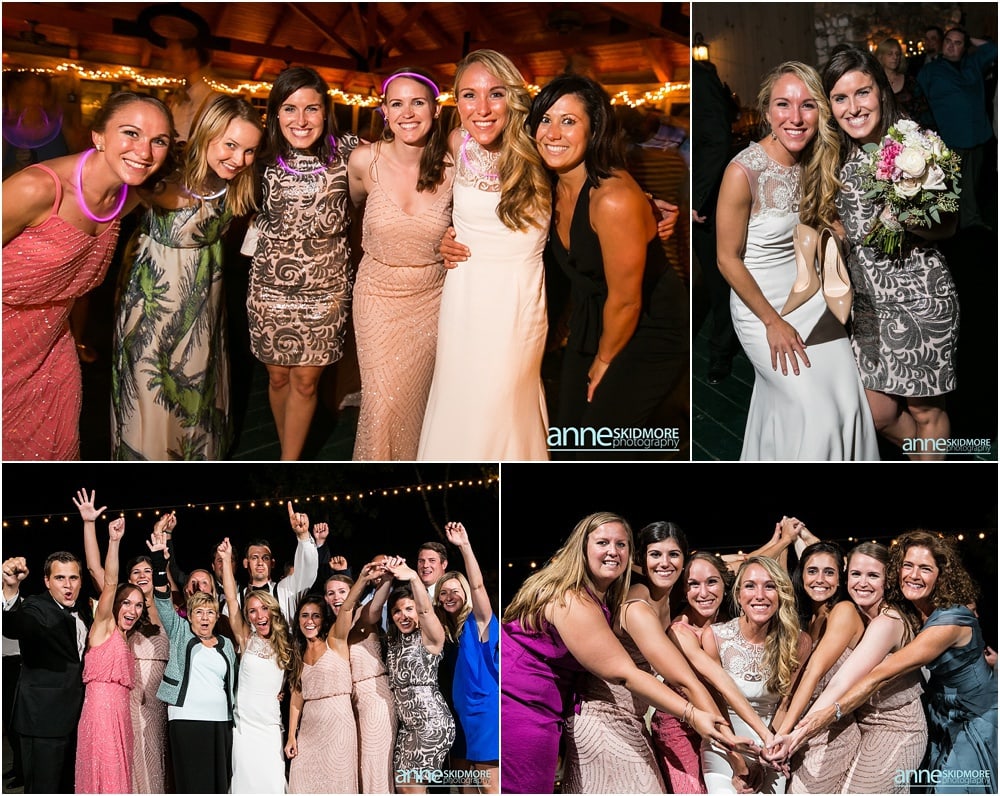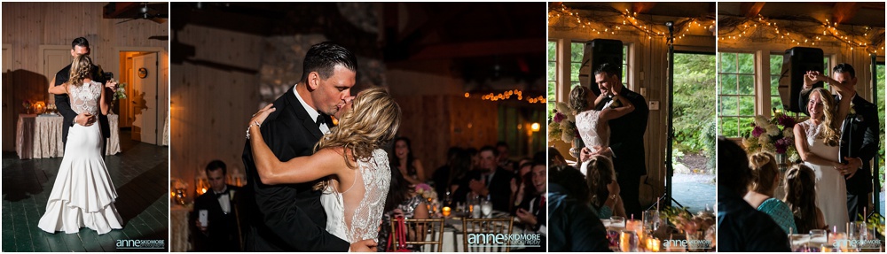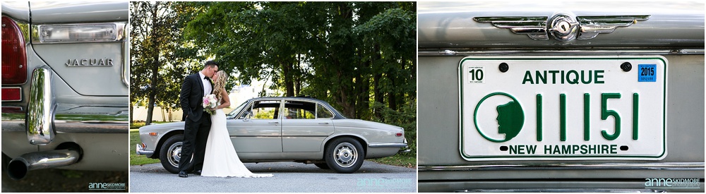 Manchester is in the heart of The Green Mountains of Vermont, and The Equinox Resort hotel itself is absolutely stunning with it’s stark white columns contrasting the green mountains and blue skies. To start their day of right, Justine and her girls had a special yoga session at the resort while Greg and the guys played some golf. Greg and his guys got ready all together at the Equinox while Justine and her ladies got all dolled up at the quaint Charles Orvis Inn of The Equinox Resort. Justine and her ladies wore adorable matching robes as they had their hair and makeup done with some sips of champagne. Greg and his men suited up in their classic black and white tuxedos and were soon off to the church. Justine wore an incredible Lela Rose wedding dress that was complimented perfectly with a pair of incredibly jeweled Badgley Mischka shoes and a stunning bouquet created by Flowers By Cara! We did some fun portraits of Justine and her girls at the inn, and it was an easy walk across the street to get to her “I Do’s” at the First Congregational Church. They had a lovely ceremony in the classic white steepled church, sealed it with a kiss, and exited with all their friends and family waving batons of ribbon in the air! An antique Jaguar awaited these newly weds when they exited the church, so they hopped in and zoomed away! We took stunning portraits with the antique car and also on the grounds of The Equinox Resort, but we also wanted to be sure to get some up at the Pond Pavilion, where their reception was being hosted. What an absolutely incredible spot! Located at the base of Mt. Equinox, this pond-side Pavilion has beautiful wooden details and awe inspiring views of the mountains. It was the perfect evening for a wedding with cocktails outside and dinner inside the beautifully Pavilion decorated with blush pink florals and gold accents. The night was filled with laughter, heartfelt toasts, lovely first dances, special group photos and then some darn right fun foot stompin’ dancing! We were even able to sneak in a few portraits right at the tail end of dusk! Thank you SO much Justine and Greg, it was a a dream to work with you two and absolute honor to document such a beautiful wedding day for such an absolutely wonderful couple! This is one we will cherish forever!