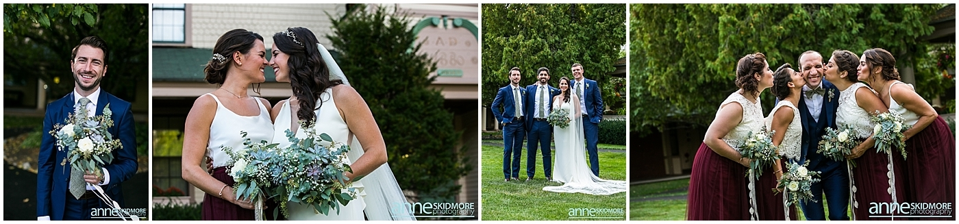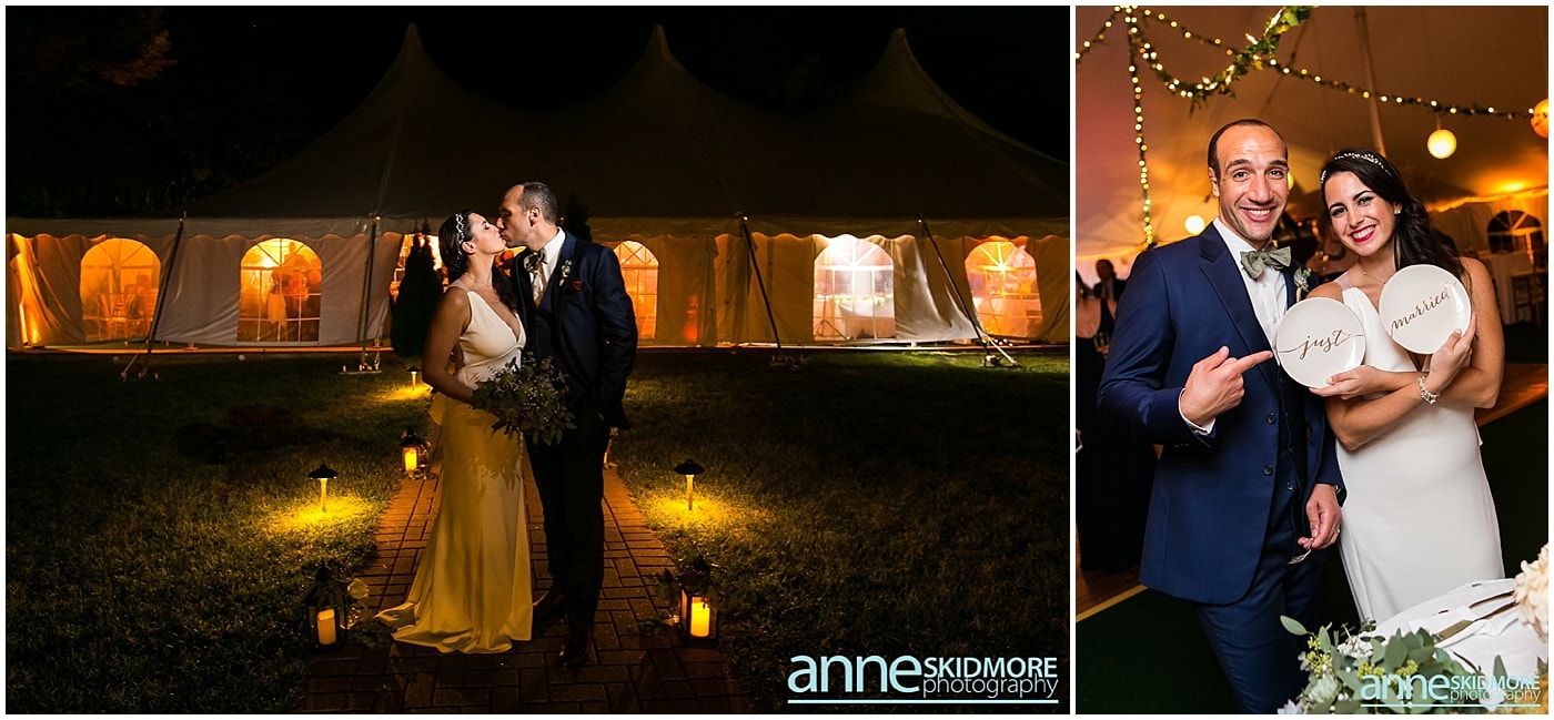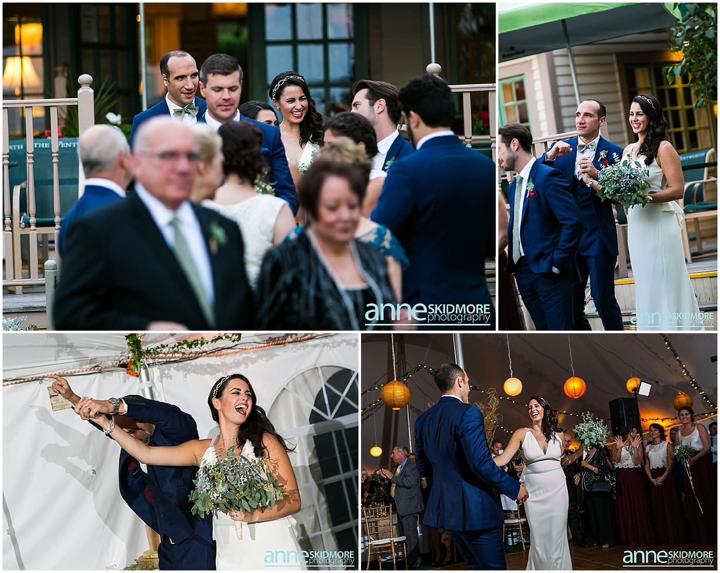 Alycia & Clifford are another fantastic couple we had the honor of capturing on their wedding day! They wed in September of 2016, and we are still in touch and are now lucky enough call them friends. One of our favorite aspects of our work is how it creates new friendships with our couples who are starting this amazing new chapter together. Clifford and Alycia hosted their special day at The Wentworth Inn in Jackson, New Hampshire. Alycia looked absolutely stunning in her dress and veil from Madeleine’s Daughter and her hair piece by Twigs & Honey. Oh, and lets not forget her shoes! Her Valentino shoes- we were swooning over them! Her bridesmaids looked so chic in their BHLDN dresses and our favorite ladies at Dutch Bloemen Winkel created her stunning succulent filled bouquet. Clifford was looking super sharp in his custom suit made by Y/A Apparel and his handsome Allen Edmunds shoes. These two wed on the beautiful back lawn under a birch arbor and at the end of the ceremony we captured a great group photo. We toured all over Jackson for Alycia and Clifford’s portraits before heading to the Wentworth tent to celebrate! Announcements, first dances, yummy food, and great music by the band The Crush filled this memorable evening. To top it all off the band lead a New Orleans Second Line march down to the Wildcat Tavern to bring all the guests to the after party. What an ah-mazing day! Congrats again you two- we loved capturing your amazingly epic wedding day! Love how we’re still in touch, and know we’ll continue to be!