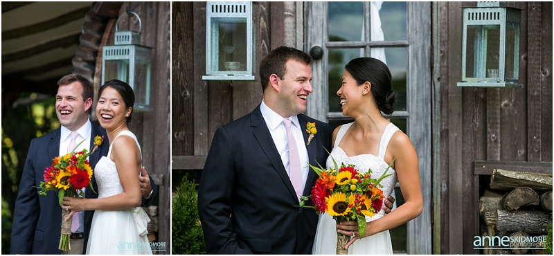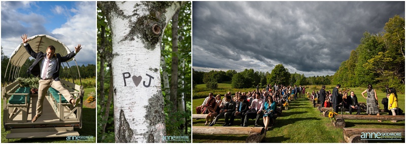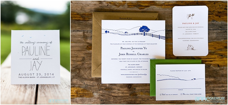 And their love was one fire! Jay and Pauline, your wedding blog was so fun to edit because you two are so cute and your wedding day was just so beautiful! Jay and Pauline wed on August 23rd at the amazing Alerin Barn in Vermont. The Alerin barn is surrounded by the mountains, fields, flowers, wooden fences, goats, and they have an classic New England inn and barn to host the wedding day celebrations. It’s one of the most unique and stunning venues, and to top it off the owners are just the sweetest! Jay and Pauline got ready at different areas at the inn, and they both gave each other special presents during this time. Pauline gave Jay a handsome Rolex, and Pauline received a beautiful pair of diamond earrings that she wore the day of! These two lovebirds had an adorable first look moment in front of the “Sheep Camp”, and we then wandered all over the property for portraits and ended things with the goats. Yes, the goats were a “must” on their list! It was then time for the ceremony as guests were starting to arrive and a vintage tractor and wagon brought them up to the ceremony site on the hill. They had a beautiful ceremony with a sweet “P♥J” on the birch tree behind them as they committed their vows. There were so many fun touches to the day, and you’ll have to see for yourself below in the imagery. The evening was action packed with friends, family, champagne, oysters, toasts, yummy dinner, dancing, dusk photos and more! Congratulations Pauline and Jay, we had so much fun documenting your wedding day and LOVED working with you two!