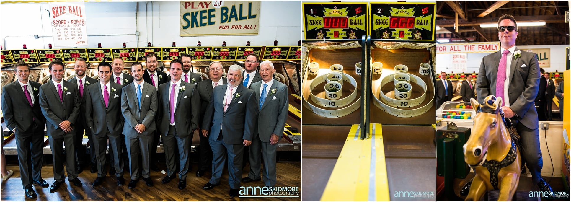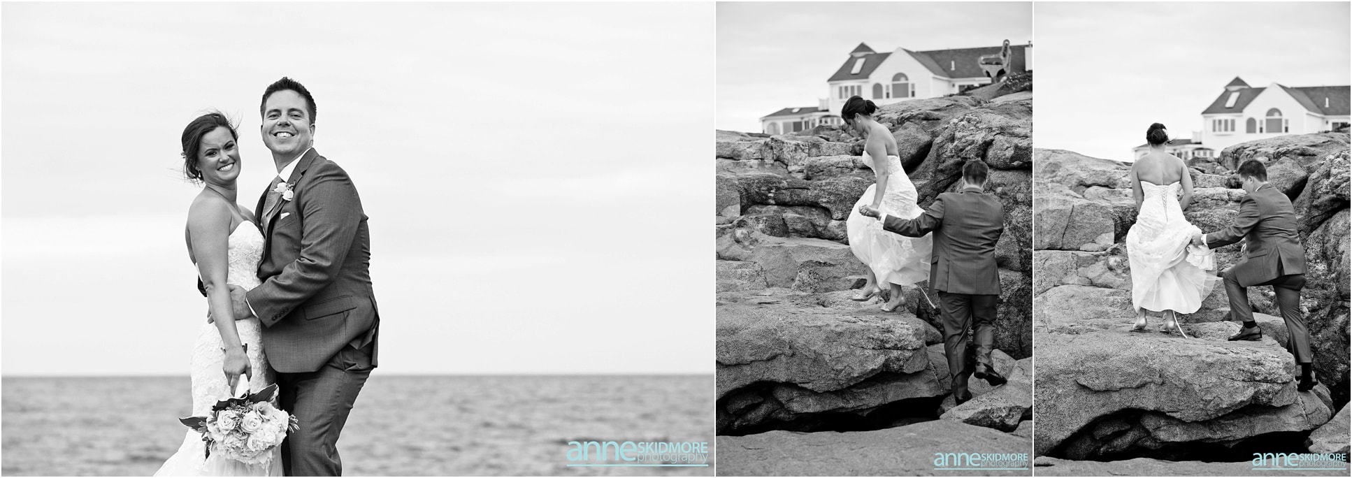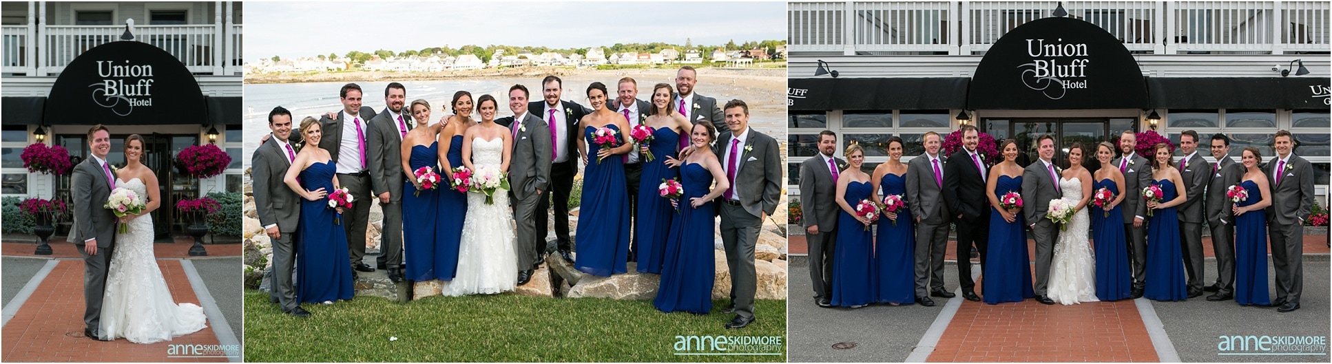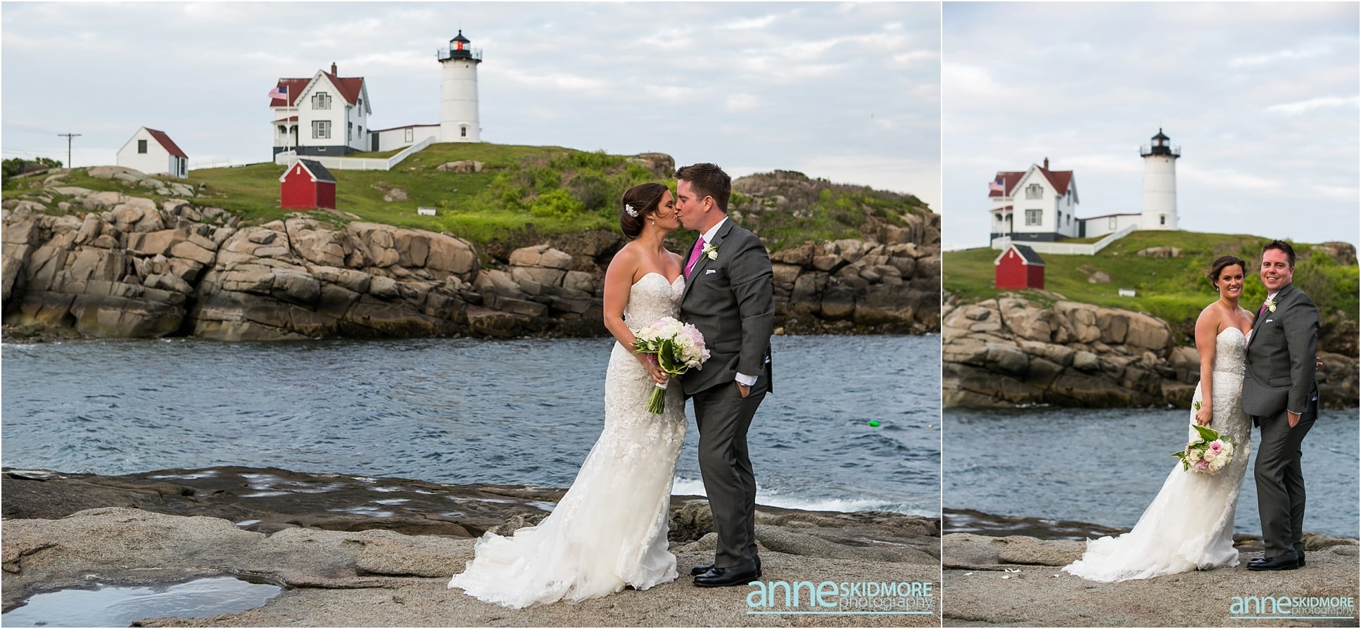 Last year I met Will and Erinn for their engagement photo session, and we had so much fun all around Portsmouth, New Hampshire together! Thus, I knew capturing their wedding day was going to be absolutely amazing, and it was! Will and Erinn wed on June 20th, 2015 at the Union Bluff Hotel in York, Maine on a simply stunning summers day. Erinn and her ladies had their hair done by the amazing Jessica Todd salon and their makeup by one of our very favorite make up artists, Kristin of Making Faces. The guys were back at the Union Bluff Hotel getting ready, and the cool thing about this specific hotel, is it is located right in downtown York, Maine! Being so close, Will and his guys went to the arcade for some portraits! For the ladies, after their hair and makeup was finished at Jessica Todd, they headed back to the Union Bluff Hotel to get all dress up and help Erinn into her dress! We did portraits of the ladies right there at the hotel before heading to the ceremony. Will and Erinn’s ceremony was on the lawn of the Union Bluff Hotel and they wed in the golden light of the sun setting. It was a very sweet and loving ceremony, but these two also know how important laughter and lightness is in life, and thus, there were a couple of good little laughs and smiles during their vows. These two sealed it with a kiss and we were off to do portraits while the rest of their family and friends headed to the Meeting House at Union Bluff for the cocktail hour. Family and bridal party portraits were take right at the hotel, and for the newly wed photos we headed over to one of Erinn and Will’s favorite spots, The Nubble Lighthouse! It is so stunning and beautiful there, and being right out on the water the wind was blowing Erinn’s hair all around, but it didn’t phase her in the least! Before we knew it we had to get these two lovebirds back to their wedding celebration! The night was absolutely dazzling and filled with so many memorable entrances, toasts, dances, and moments! Congratulations Erinn and Will! We LOVED capturing you wedding day, and we loved it so much, we wish we could do all again with you two next year!