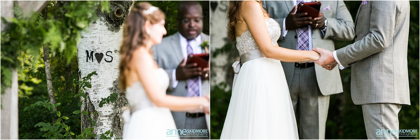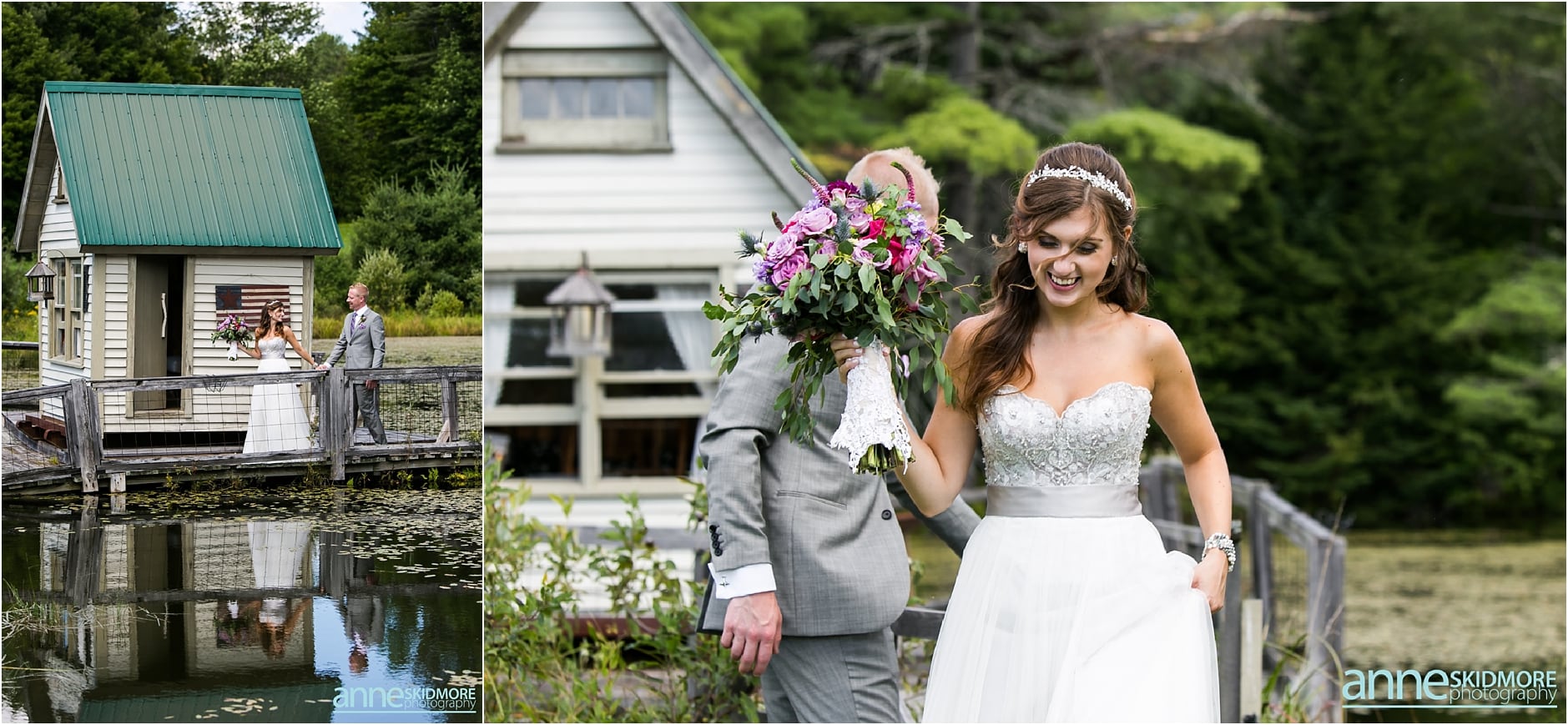 Anne and I are so excited to catch up with all our blogging from the the end of our 2016 wedding season. There are so many beautiful weddings hitting our blog in the coming months and it’s nice to revisit these weddings as the images are a fresh reminder of why we love our clients so much. Each wedding is unique and every one of our couples have their own style and character, allowing our blog posts to be constantly changing and fresh. It’s fun to look back on when I first met Marianna and Seth, the lovely couple whose images follow this. We met for coffee early in the summer of 2016 on a warm sunny day at our local shop, Frontside Grind. I always walk away from these meetings even more excited to photograph a couple’s special day as they tell me stories about their family members, the details involved, and I can usually tell right then if I’m going to catch a lot of portraits of them laughing (my favorite). Seth is a goof and Marianna has the best laugh- a wonderful match. Alerin Barn continues to be one of my favorite venues. The moment I walk on the property each time I’m there, I get such a relaxed vibe and it really helps start off my day on a positive note. The owners of the Alerin barn alway play music from the one radio station that comes in clear from Burlington, Vermont, 104.7- The Point. It’s the best! Marianna and Seth’s wedding day was perfectly sunny with bright blue skies. The farm and fields surrounding the Alerin Barn were alive with farm animals grazing, bees doing their thing, and the local vegetable garden straining to catch the mid-morning sunlight. I always arrive a bit early to each wedding to be able to photograph the quiet moments before the day really begins. I found Marianna upstairs in the main inn getting ready while Seth and the guys were goofing off in the bunk house across the driveway. Marianna and Seth opted for a first look (which I think is a great idea!) and we were able to take lots of portraits both in the sunlight and shade. The bridal party and family met us before the ceremony so we could capture those portraits and allow Marianna and Seth to attend their entire cocktail hour. The ceremony is one of the most special parts of the Alerin Barn, sitting up on a hill overlooking the local Vermont mountains and hills. Guests are carted up in a antique tractor with a wagon attached- this really sets off the vibe for many of the guests to relax and laugh and enjoy the outdoors. After the ceremony, guests walk down the grass pathway to the cocktail hour near Horned Pout Pond under the pavilion. After an hour of mingling, drinking cocktails and roaming the property, guests were invited into the Alerin Barn by Marianna and Seth themselves, an Alerin Barn tradition. Champagne was passed around and Marianna and Seth made quite the entrance down the barn stairs into their first dance. Hilarious toasts were given and people sure did laugh. Outside the sun was setting so we hurried out near the fields for a few evening portraits and then Marianna and Seth lit off a wish lantern into the night sky. Desserts were served out under the pavilion, a bon fire stayed lit all evening and many of the guests danced their hearts out inside the barn. We can’t express how much we love this venue but if it weren’t for our awesome couples, it wouldn’t matter. Thank you Marianna and Seth for being such a joy to work with and we hope you enjoy looking through the images from your wedding day once again. Much love!