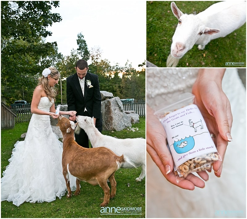 September 15th, 2012 was a beautiful one, with some slightly threatening clouds that lucky never produced any rain on Jarrod and Erica’s wedding. Hooray! Erica and Jarrod wed at the beautiful Alerin Barn in St. Johnsbury Vermont. This inn is tucked away in the rolling hills of Vermont and they have an incredible timber frame barn to host the evening festivities. In addition they have a covered pavilion next to the barn that is perfect for the cocktail hour! Erica and Jarrod both got ready at the Alerin Barn, and opted to have a sweet first moment look, and it was beautiful! I am really loving these special and intimate portraits before the wedding ceremony. It was a really wonderful time for the two of them to check in with one another on their wedding day. It was also hilarious as Jarrod is constantly keeping Erica smiling with lil’ jokes and such! They said their “I do’s” up on top of the hill, where all the guests were transported there by the inn’s ol’ tractor and carriage. So cute! After the ceremony Erica and Jarrod enjoyed the cocktail hour with all their friends and family since we did most of their portraits before hand. But before we all went into the barn they had a request to feed the inn’s goats. Again, so cute and the goats didn’t even nibble on Erica’s dress! The night was filled with hilarious toasts where my second shooter and I were almost rolling on the floor with laughter. And everyone boogied on into the wee hours of the night. Congrats Erica & Jarrod! I LOVED your day! Take a peek below!
