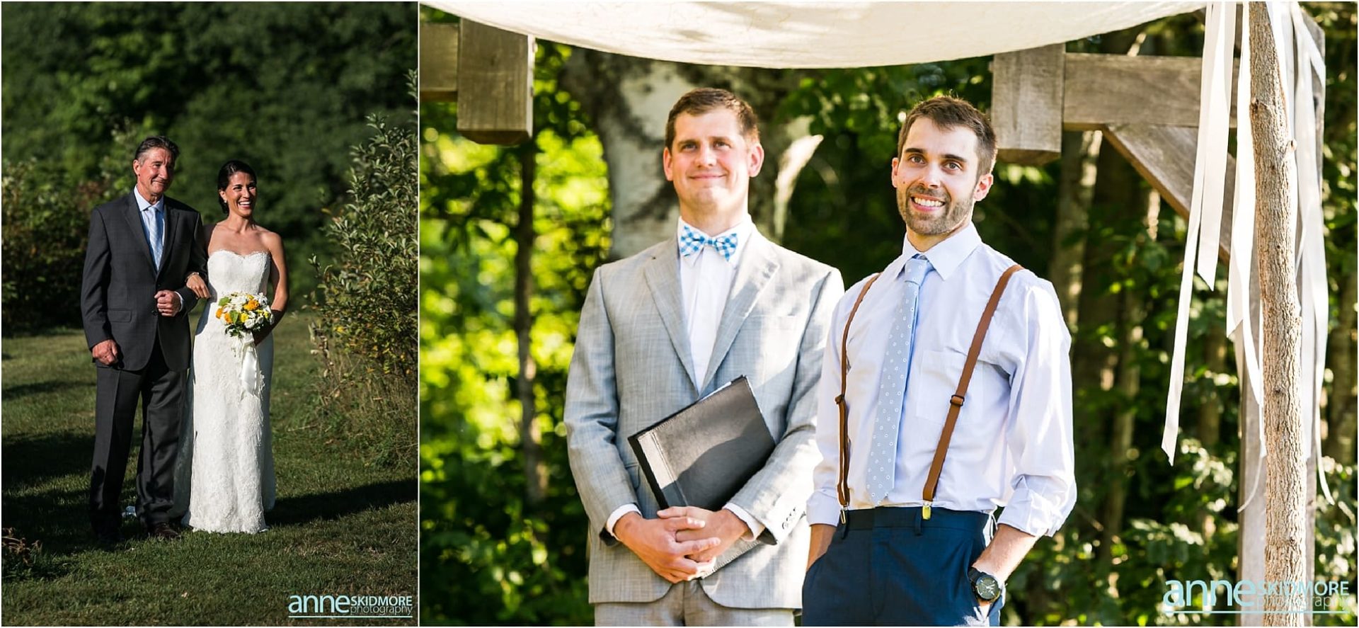 Let me start off this story by saying that I received the most fun text messages after my first meeting with Rachel and Kevin. After a quick coffee in January, these two athletes headed out to Bear Notch Ski Touring for a cross country ski. They sent me selfies of themselves goofing off in the cold and I knew I was in for a treat photographing their wedding day. The Alerin Barn is the perfect venue for these two. Located in St. Johnsbury, VT and laid back and quirky, this venue is full of character and uniqueness that people just love. The owners pour themselves into keeping this place special year after year. I always return with a smile on my face! The weather turned out to be just perfect- a warm summer day with big white puffy clouds rolling through. Rachel and Kevin got ready across the way from each other and opted for a first look. A shaded apple tree happened to be the best spot for the first look to take place and little to my knowledge, an apple orchard is where Kevin proposed. I love when things just fall into place! We were able to utilize the beautiful grounds for lots of portraits and we got our fitness in for the day walking all over! Family and bridal party joined in on the fun before the ceremony started up the hill. A unique ceremony with Jewish tradition took place overlooking the rolling hills and nearby mountains with lots of laughs (thanks to the grandparents jokes!). A beautiful cocktail hour at the prime time of the day was held down under the pavilion with some unique appetizers and drinks. Toasts took place outside causally at the end of cocktail hour and I ended up loving this idea! A local band from Boston (Young Love and the Thrills) kept people psyched all night! The dance floor was packed and I even found myself staying a bit longer because the music was so good! Congratulations again to Kevin and Rachel. May you look back on this day and always remember how much fun people had and how wonderful you two are. I hope married life has been amazing!
