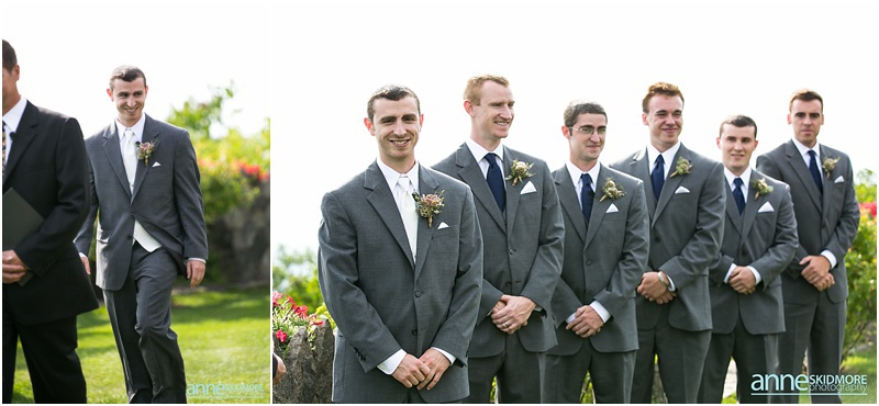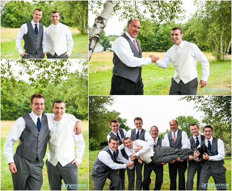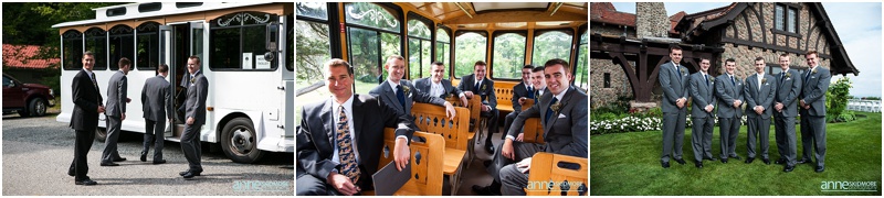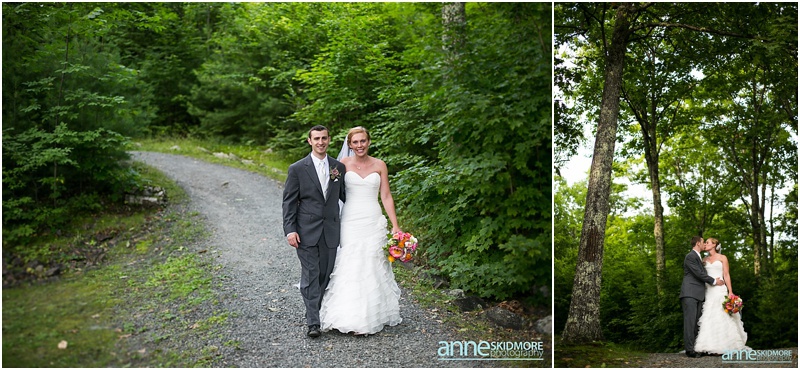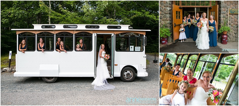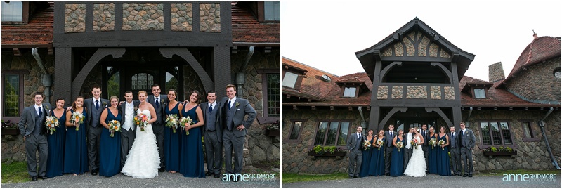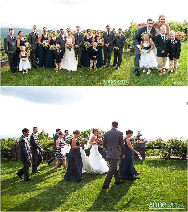 Whoa! So many beautiful images from such a stellar wedding! What a day Josh and Jill had on August 2nd, 2014. Their wedding day started off in Wolfeboro, New Hampshire. Jill chose to get ready at the Wolfeboro Inn while Josh was at The Inn On Main with his guys getting suited up! They both drove separately to Castle In The Clouds where their wedding day was being hosted. The old roads, paths, stone carriage house, castle style house and of course the views were all breathtaking! Josh and the guys quickly headed up in the trolley to the ceremony site and Jill and her ladies stayed at the lower carriage house to help Jill into her dress and to take portraits. And we have to mention how Jills bouquet from Lotus Floral Designs was stunning, simply stunning! Soon it was time for Jill and her ladies to take the trolley up and for Jill to get married! I mean this wedding ceremony location is epic! It’s just stunning, and they had such an impeccable day! They had a beautiful ceremony filled with laughter, tears of joy, a couple of readings, and sealed it with a proper smooch! Afterwards it was portrait time with family, the wedding party, and then, with just the two newlyweds. We did portraits up at the castle, and then walked our way back down to the reception. So many beautiful spots to stop and take photos! Next it was time to celebrate in the upstairs of the carriage house. DJ Nate Downs hosted the evening and added beautiful up lighting to add a wonderful ambiance to the reception room. His beats kept everyone dancing, and he even helped us make it possible to sneak in some incredible sunset shots back at the main castle! Thank you Nate, it was so worth it! Take a peek below, and you’ll see how awesome this wedding day was! Thank you Jill and Josh! Lea & I had a blast capturing your wedding day!