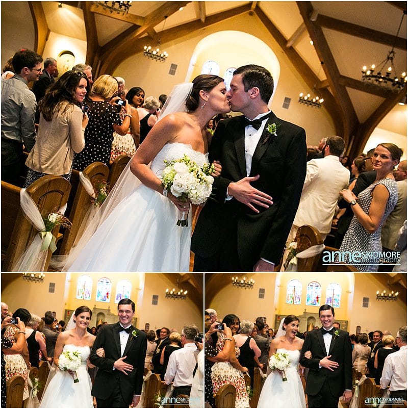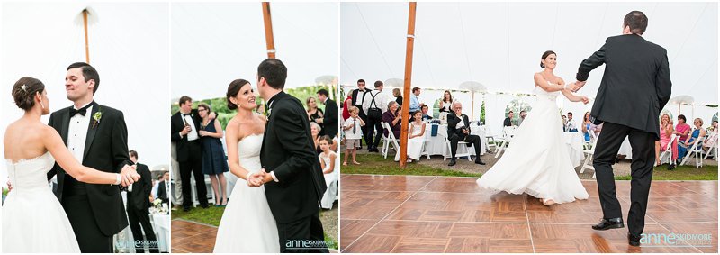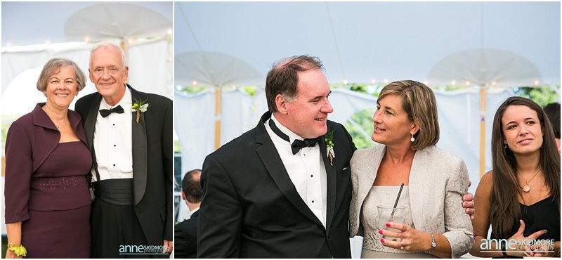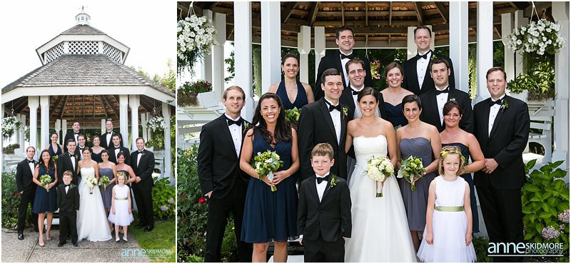 How charming is the Wolfeboro area? Yes, so cute and so much character! I was very excited to capture Kevin and Melissa’s wedding day at the Wolfeboro Inn on August 10th, 2013. I arrived as Melissa stepped out on her porch and greeted me with a big wave! They both got dolled up at the inn, each with their bridesmaids and groomsmen. At Melissa’s request, we did a quick photo with her and Kevin on seperate porches, and made sure Kevin didn’t peek at Melissa. The groomsmen rode Molly The Trolley to St. Katharine Drexel Church with friends and family shortly arriving after them. They had a lovely traditional church wedding and eagerly hopped back on the Wolfeboro Trolley and headed to the Wolfeboro Inn. Melissa and Kevin started their portrait session at the inn but then opted for some unique spots in Wolfeboro to mix it up. It is great to take some classic shots where your wedding is being held, but it is also inspiring to mix it up and shoot a few off site! Kevin and Melissa were such a fabulous, fun, and gorgeous couple to work with but, what stood them apart, is their great sense of humor! This was apparent with the beer koozies they had for their guests and the character in which they danced into the tent when they were formally announced. Then their first dance was a fast tempo-ed fun one, 500 Miles! I love that song, and they had so much fun during their first dance as husband and wife! Wonderful toasts were given by Melissa’s father, maid of honor, best man, and a blessing by Kevin’s father. We snuck out for some dusk photos with the “Winnipisaukee Belle” in the background. Oh la la! The evening was filled with high energy dancing under beautiful clear evening skies. Congrats you two! What a day!